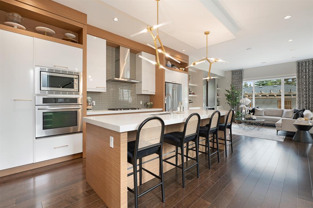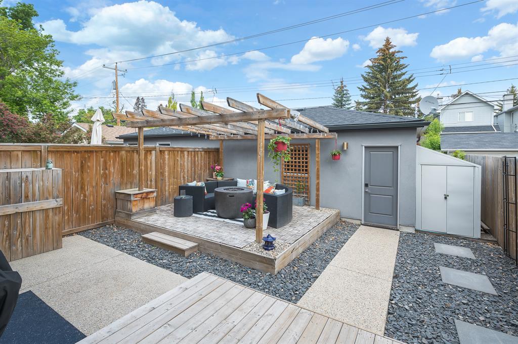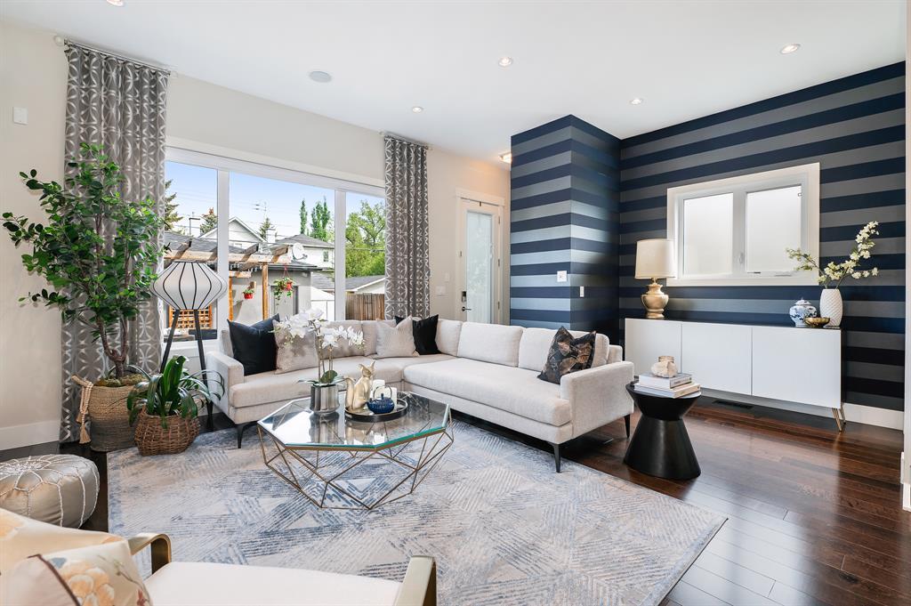 This 3+1 bedroom home in South Calgary offers a spacious & stylish living space, making it an ideal choice for families or those looking for ample room to relax & entertain. With over 2,600 sq ft of living space, this home provides plenty of room for everyone to spread out & enjoy. The hardwood floors & open plan on the main level create a warm & inviting atmosphere, while the high ceilings & stylish light fixtures add a touch of elegance to the space. A spacious formal dining room with gorgeous feature wall is located just off the foyer. The living room is a standout feature, with a beautiful fireplace & built-ins that create a focal point & provide both functionality & visual appeal. The kitchen is equally impressive, boasting quartz countertops, an island with eating bar, abundant storage space & high-end stainless-steel appliance package. Whether you're preparing meals for the family or hosting a dinner party, this kitchen has everything you need. A 2-piece powder room completes the main level. A sleek glass & open riser staircase leads to the second level hosting 3 bedrooms, a 4-piece bathroom & laundry room, providing comfort & convenience for the whole family. The primary bedroom is particularly noteworthy, with its access to a private balcony, a walk-in closet, & a luxurious 5-piece ensuite with marble tiles, dual sinks, relaxing jetted tub & separate shower. This retreat-like space offers a peaceful sanctuary where you can unwind & relax after a long day. The fully developed basement with in-floor heat is an added bonus, providing even more living space with a family room & wet bar, perfect for hosting gatherings or enjoying movie or game nights with friends. The fourth bedroom & 3-piece bathroom in the basement offer additional accommodation options for guests or older children. Additional features include central air conditioning, built-in speakers throughout & custom window treatments. Outside, enjoy the low maintenance landscaping & back yard with patio , deck with gazebo & access to the double detached garage. The central location can’t be beat – close to River Park, South Calgary Community Association, vibrant Marda Loop, excellent schools, shopping, public transit & easy access to the downtown core via 14th Street. (id:22211)