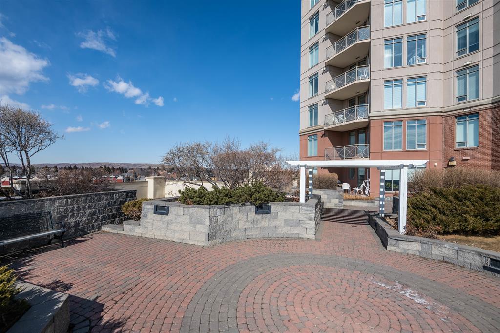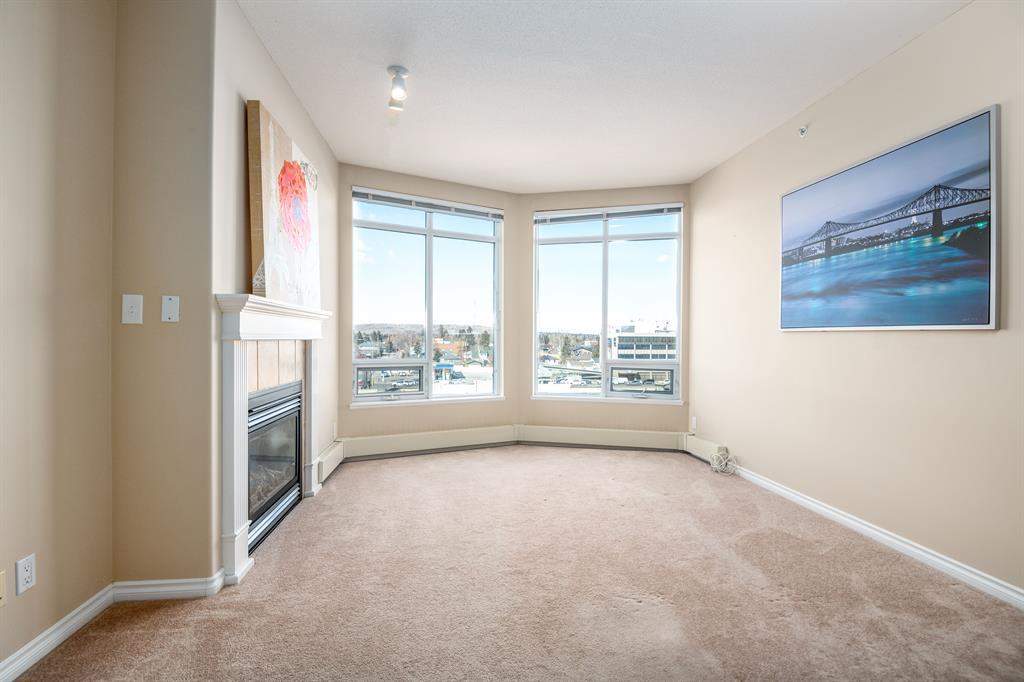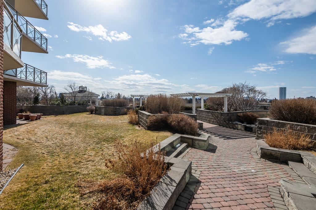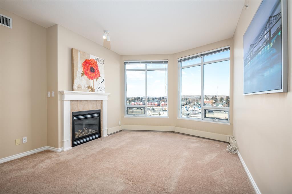 Exceptional 2 bedroom apartment with easy access to downtown with views of Nose Hill park and one titled parking stall! Unit 105 is not on the ground floor! It is professional cleaned thoroughly. Your new apartment features newer carpet and ample natural light. The kitchen boasts heights to ceiling cabinetry and raised breakfast bar. The kitchen flows into your open living room/dining area with a cozy fireplace. The master bedroom features a 5pc ensuite with deep soaker tub and large stand up shower. The second bedroom is across the hall from a 4pc bath. A den with laundry cupboard complete this lovely unit. This unit also includes a heated indoor titled parking stall and storage space. This adults only building has even more to offer a central air conditioning, guest suites, theatre room, hobby room, library & reading space, gym, party room,crafts & games room, meeting rooms, car wash & bike storage, 24-hour concierge service. A beautifully landscaped rooftop terrace on the same level of the unit - complete with gardens & gazebos, sitting areas & panoramic views South to the city downtown skyline, and North to Nose Hill Park. This incredible location is across the street from LRT. Enjoy walking indoors to the Safeway, Banks, Dentist, Doctor, lab services, restaurants and conveniences of North Hill Mall, minutes to SAIT & Jubilee Auditorium, walking distance to parks & quick easy commute to Kensington, Downtown, Foothills Hospital and University of Calgary. The perfect home for downsizing! (id:22211)