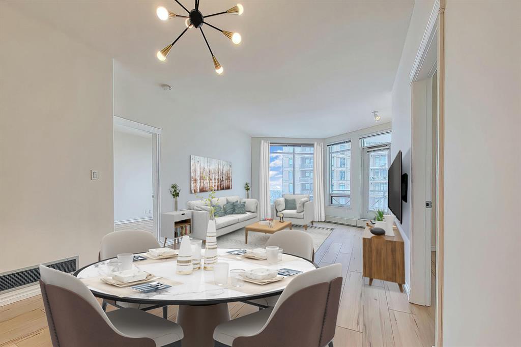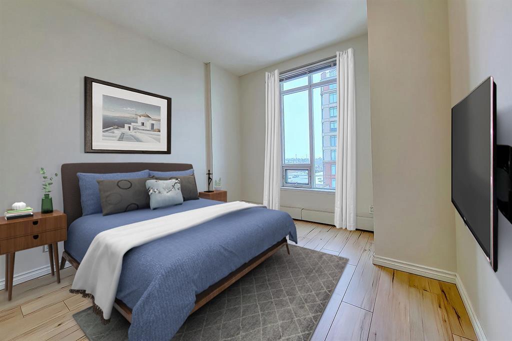 BREATHTAKING CITY VIEWS ! NEWLY RENOVATED ! LUXURIOUS 2 bedroom, 2 bathroom + den in the Coveted West Tower of the upscale edifice, “The Renaissance” at North Hill. Built by Apex Lifestyle Communities, the building features a roof top garden terrace, extensive library, theatre, fitness facility, billiards/shuffleboard games room, craft room, guest suite, social room with full kitchen, 24/7 security/concierge services and even a private car wash! Here is everything you could dream of… easy indoor access to North Hill Mall with unique amenities; food court, restaurants, grocery store, retail shops and more. Walk to SAIT in just 10 minutes, hop on the LRT (Lions Park Train Station) directly across the street to get to the University of Calgary in 5 minutes or 10 minutes to City Centre! This upgraded, FRESHLY PAINTED, brilliant condo has a large living / dining area with fabulous fireplace, beautiful kitchen with eating bar, BRAND NEW gorgeous wide plank water resistant flooring and stainless steel refrigerator, dishwasher and washer/dryer. Check out the huge master bedroom with two closets (one walk-in) and full dual-sink ensuite bathroom with tub and shower. The second bedroom is spacious and discretely located away from the primary bedroom and has its own ensuite shower and closet. Entertain family and friends at your East/South East balcony (gas hookup) overlooking a gorgeous downtown skyline. Air conditioning, heat and water included, not electricity. Convenient underground parking in the indoor heated parkade and also secure parkade storage. Please note that this is a quiet adult (18+) living complex. Each unit may be permitted no more than 2 cats and/or 2 birds with board approval. Vacant and ready for immediate possession. Call to book your private viewing today! (id:22211)