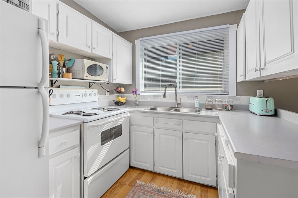 Welcome Home! This bright bi-level condo offers 979 sqft of living space and is located close to Marda Loop and all the amenities of 17th Avenue. The main floor features an open floorplan with a well appointed kitchen, a large living room and dining area with access to your private balcony plus the 2 piece bath with laundry. The fully finished basement has large windows throughout, the primary bedroom with double closets, a 2nd good sized bedroom - perfect for a roommate or home office, the main bath and storage. This front facing unit has newer windows throughout and you have an assigned parking stall plus plenty of parking on the street for your guests. With being just minutes away from transit, parks, downtown, Mount Royal University, and don't forget about the farmer's market held in the community every Sunday during the summer months, this home is not to be missed! Perfect for your first time buyer or an investor. Windows and carpets replaced 2019, furnace 2007, hot water heater 2014. (id:22211)