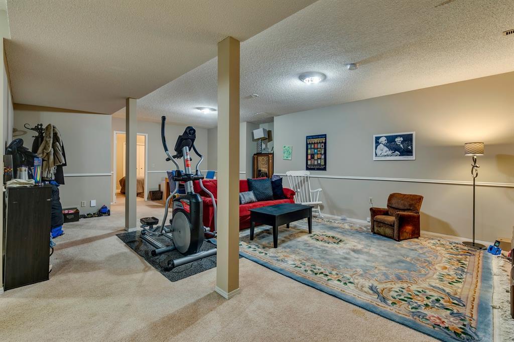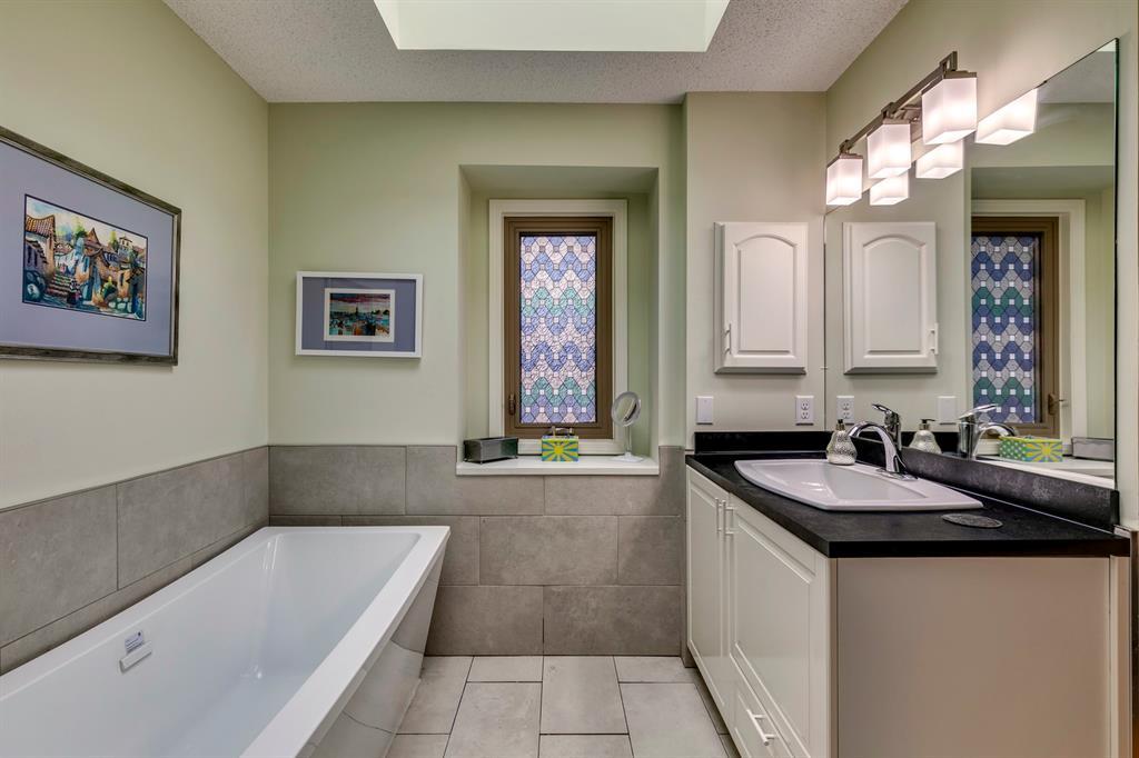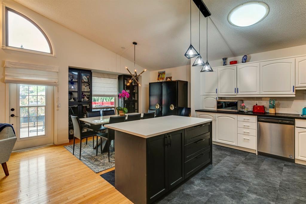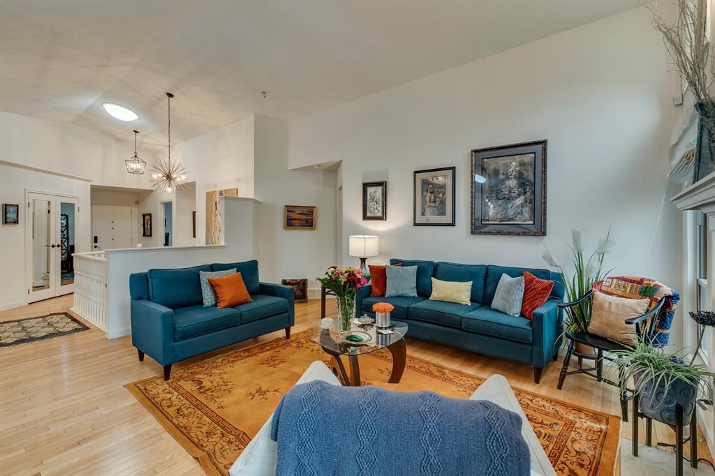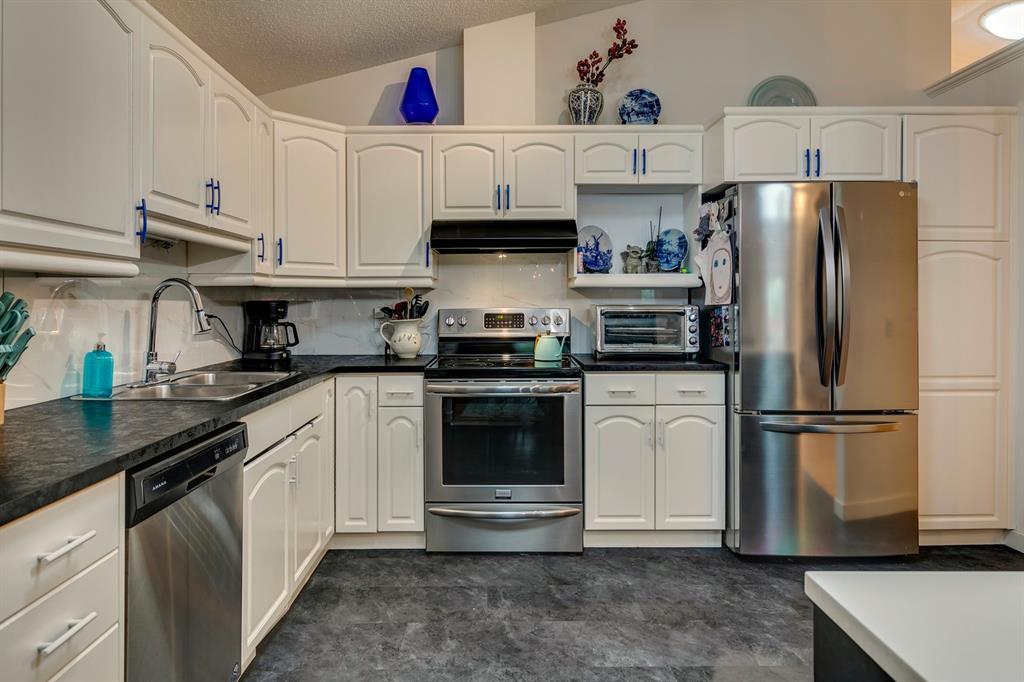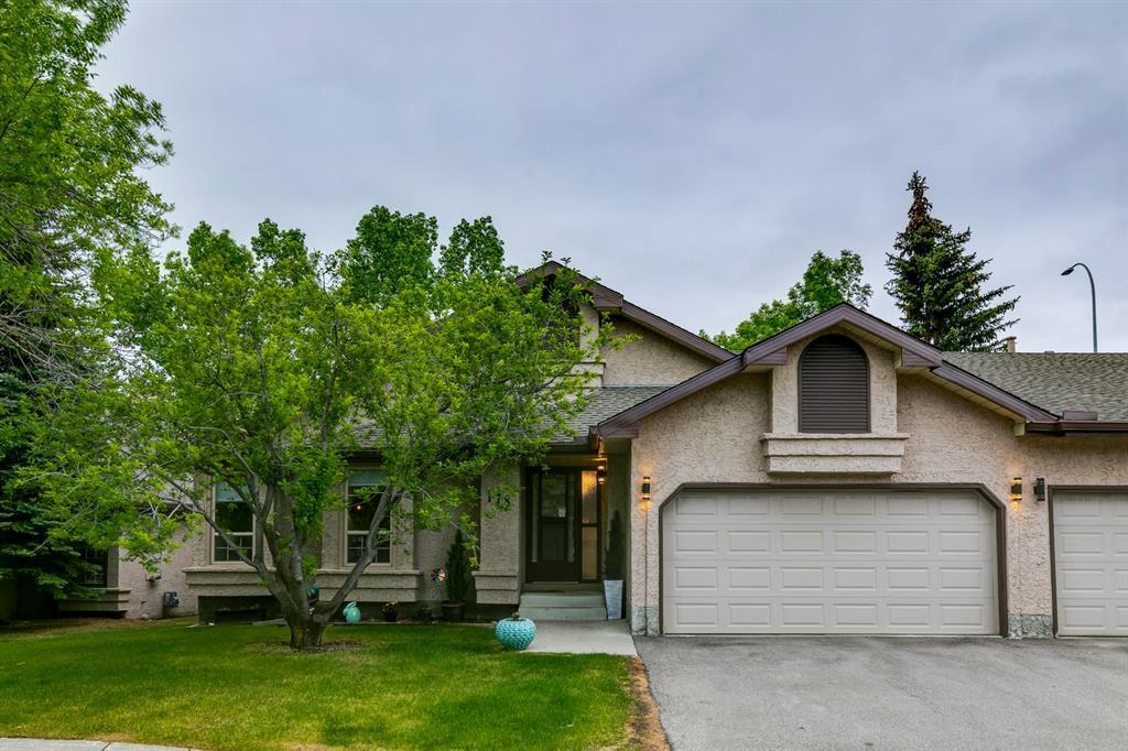 Bright, open, spacious. Welcome to Briaroak Estates, one of SW Calgary's most desirable adult living (21+) villa complexes. This South backing unit is bathed in sunshine and with soaring vaulted ceilings and solar tubes is bright and cheerful all day. The main floor features 1466 sqft of living space and has been lovingly maintained and updated. The kitchen has been opened up to the main family room and dining area and has a super convenient island with additional storage and eat-at counter. The primary bedroom can easily accommodate a king size suite with room to spare and the 4 piece ensuite bath comes with stand alone soaker tub and walk in shower (no barriers so could be wheel in). A second bedroom and full 4 piece is ideal for guests and the front of house den is the perfect home office space. No more taking laundry downstairs as this home comes with main floor laundry room complete with sink. The basement level was professionally developed and is host to a spacious recreation area, lots of room for TV, cards table, pool table, exercise equipment or however you like to relax. A third bedroom and 3 piece bathroom are located in the lower level and is perfect for overnight visits from the grandkids. The rest of the basement level is left for storage and utility room. The plumbing has been updated from the Poly-B, vinyl windows in great shape, new insulation in the attic, air-conditioning, updated lighting and paint help make this the perfect home to just move in and start enjoying life. Condo fees include landscaping and snow removal. (id:22211)