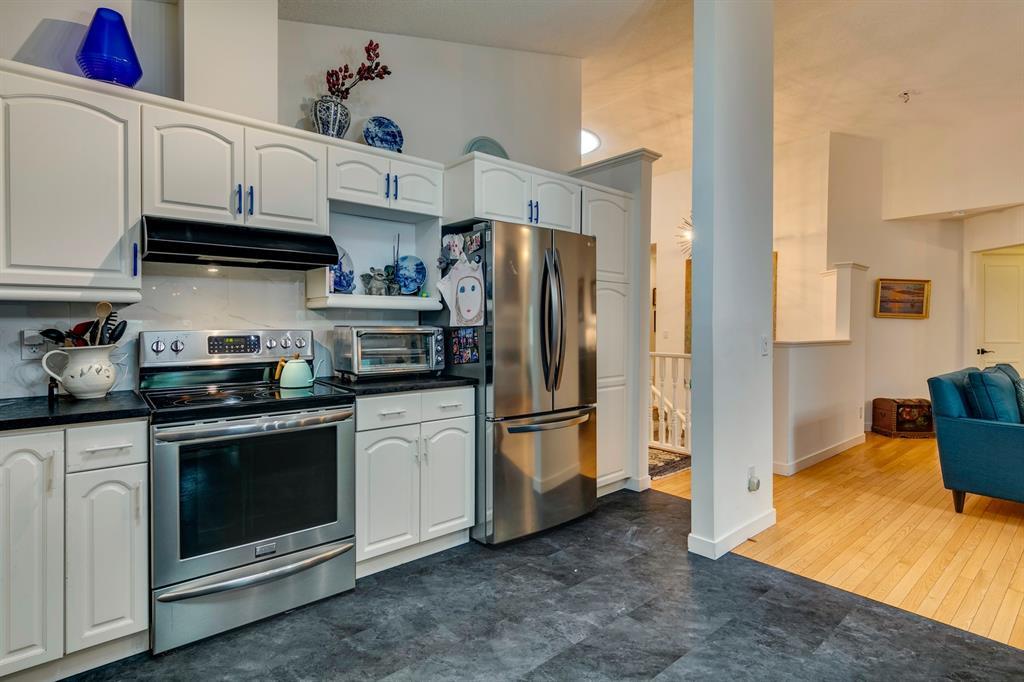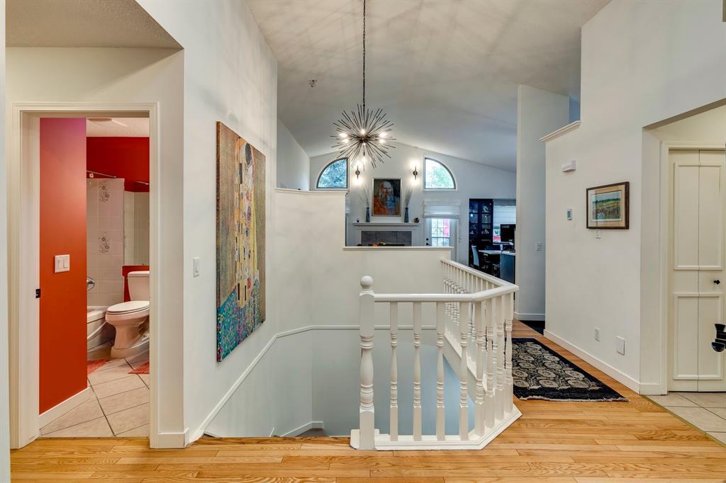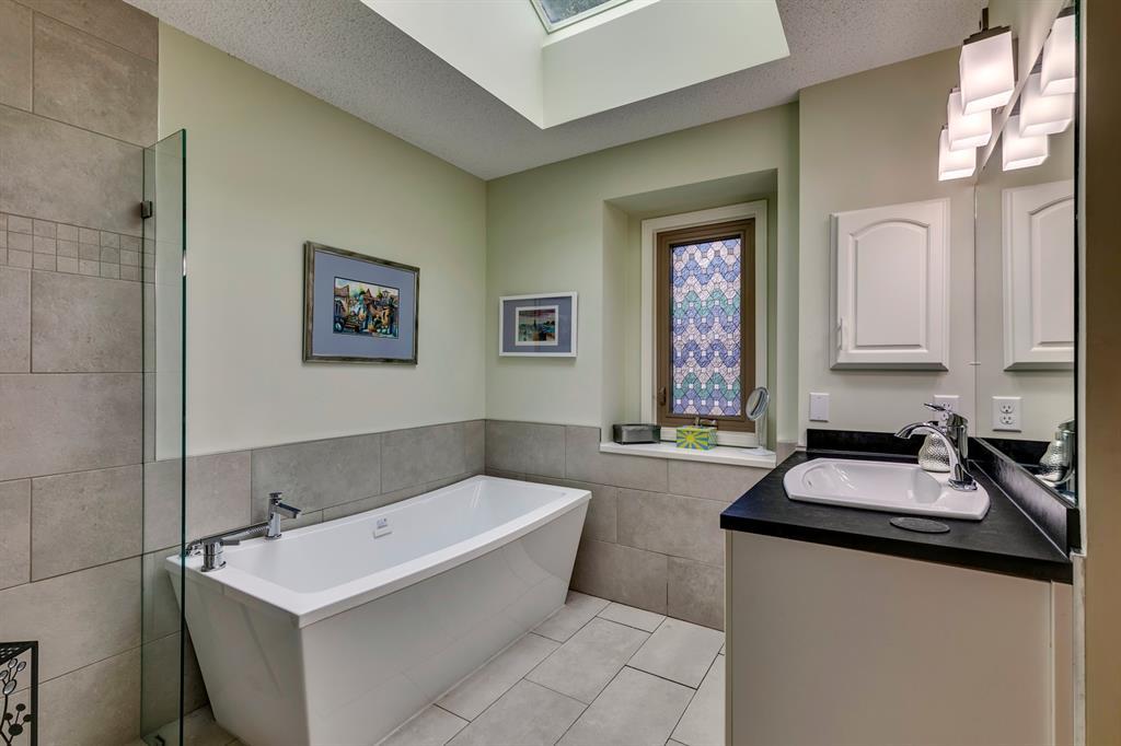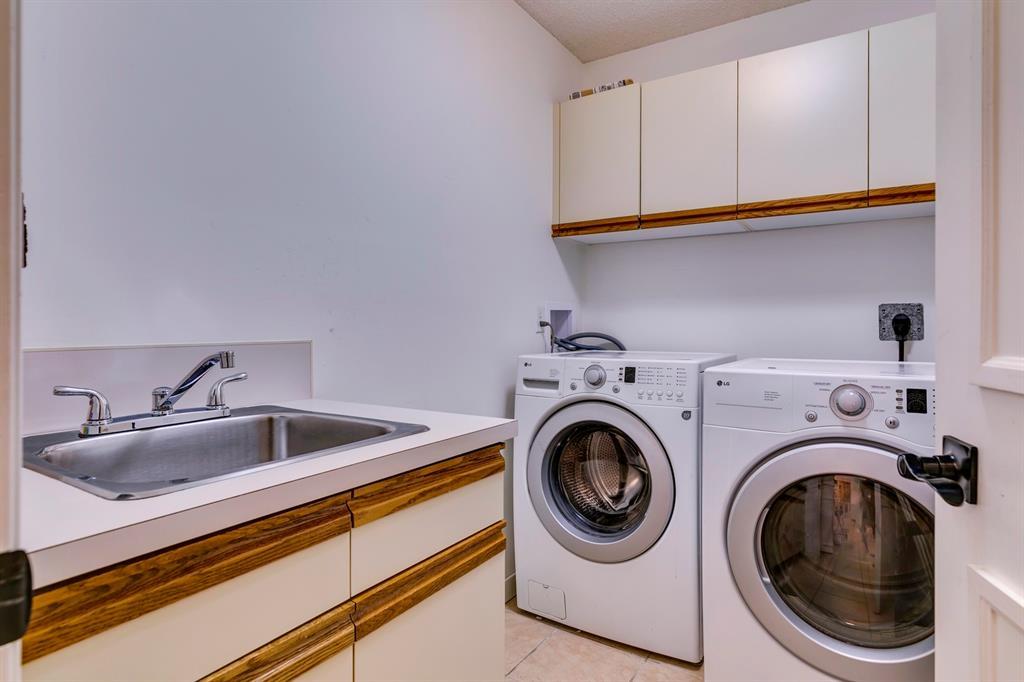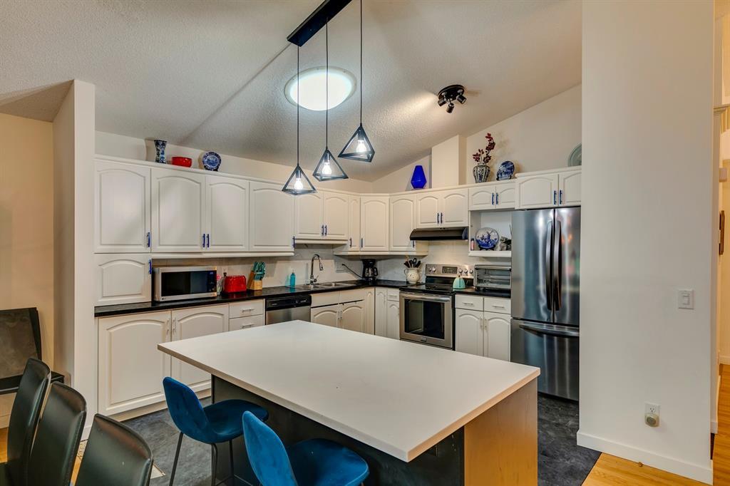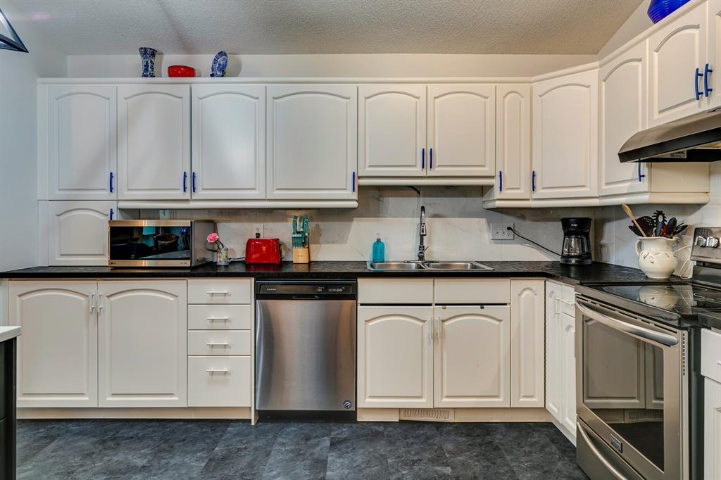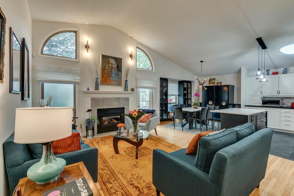 Bright, open, spacious. Welcome to Briaroak Estates, one of SW Calgary's most desirable adult living (21+) villa complexes. This South backing unit is bathed in sunshine and with soaring vaulted ceilings and solar tubes is bright and cheerful all day. The main floor features 1466 sqft of living space and has been lovingly maintained and updated. The kitchen has been opened up to the main family room and dining area and has a super convenient island with additional storage and eat-at counter. The primary bedroom can easily accommodate a king size suite with room to spare and the 4 piece ensuite bath comes with stand alone soaker tub and walk in shower (no barriers so could be wheel in). A second bedroom and full 4 piece is ideal for guests and the front of house den is the perfect home office space. No more taking laundry downstairs as this home comes with main floor laundry room complete with sink. The basement level was professionally developed and is host to a spacious recreation area, lots of room for TV, cards table, pool table, exercise equipment or however you like to relax. A third bedroom and 3 piece bathroom are located in the lower level and is perfect for overnight visits from the grandkids. The rest of the basement level is left for storage and utility room. The plumbing has been updated from the Poly-B, vinyl windows in great shape, new insulation in the attic, air-conditioning, updated lighting and paint help make this the perfect home to just move in and start enjoying life. Condo fees include landscaping and snow removal. (id:22211)