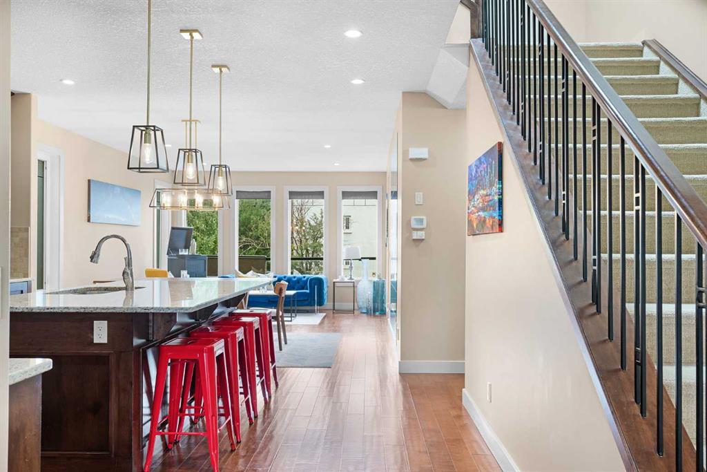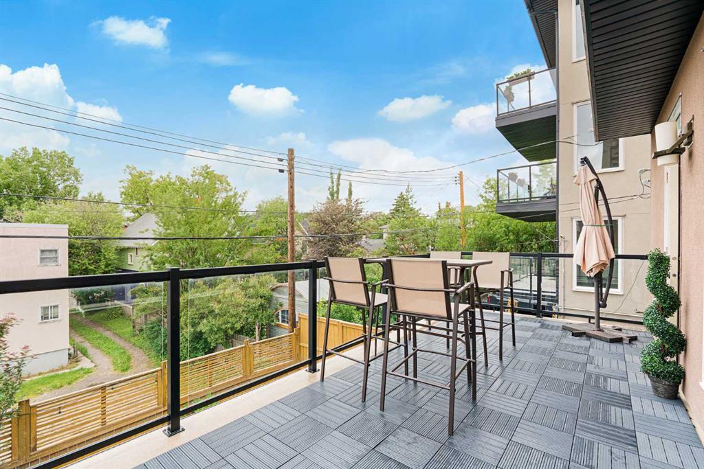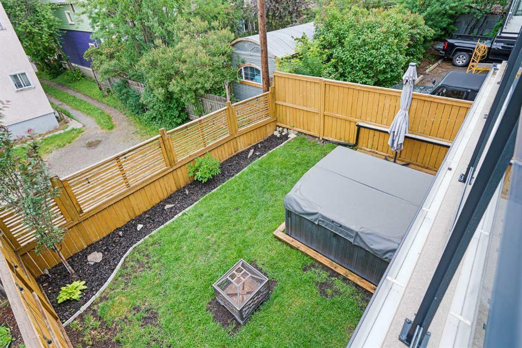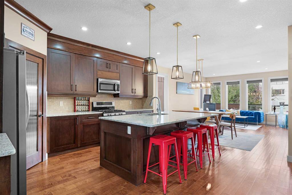 Introducing a fantastic urban haven with breathtaking city views on every level. This amazing 3-storey home spanning over 2,600 sq ft of total developed space, presents an unparalleled inner city living experience, surrounded by lively 17th Ave with everything at your fingertips, and just a few minutes to vibrant downtown by bike or public transit. Enjoy the open concept main floor, where an expansive living room awaits, boasting a gas fireplace surrounded by built-in shelving, and magnificent oversized windows illuminating the space with abundant natural sunlight. Elegant hand-scraped luxury hardwood flooring flows through the entire floor, and the spacious living and dining area, adjacent to the kitchen, creates a perfect setting for hosting memorable gatherings. The well appointed kitchen features a pantry, granite countertops, stainless steel appliances, a gas stove, and an ample island that provides an abundance of space for gathering with friends and preparing meals. Notice the skylight on your way upstairs, where you'll discover the convenient laundry room, a 3-piece bath, and three bedrooms, including the lavishly appointed primary bedroom, showcasing dazzling city views, a custom walk-in closet, and an opulent 5-piece ensuite resembling a luxurious spa retreat including tile flooring, a soaker tub, oversized glass shower, and a dual vanity. Both generously sized secondary bedrooms offer direct access to the upper balcony, providing a scenic sanctuary to relish your morning coffee or unwind with a book in hand. The walkout lower level presents a versatile space, ideal for family recreation, with a wet bar, a full bath, and direct access to the enclosed private backyard oasis, complete with a patio and a relaxing hot tub, perfect for embracing the summer season. Whether you're a family looking for a perfect nest or busy professionals seeking an extraordinary pad, this place has it all. It's casual, comfortable, and oh-so-stylish. Get ready to live your best l ife in this urban paradise. (Updates include new 2-stage furnace Dec 2021, Polyurea coated garage floors March 2022, some new windows in 2019, Telus Smart Home security system hardware) (id:22211)