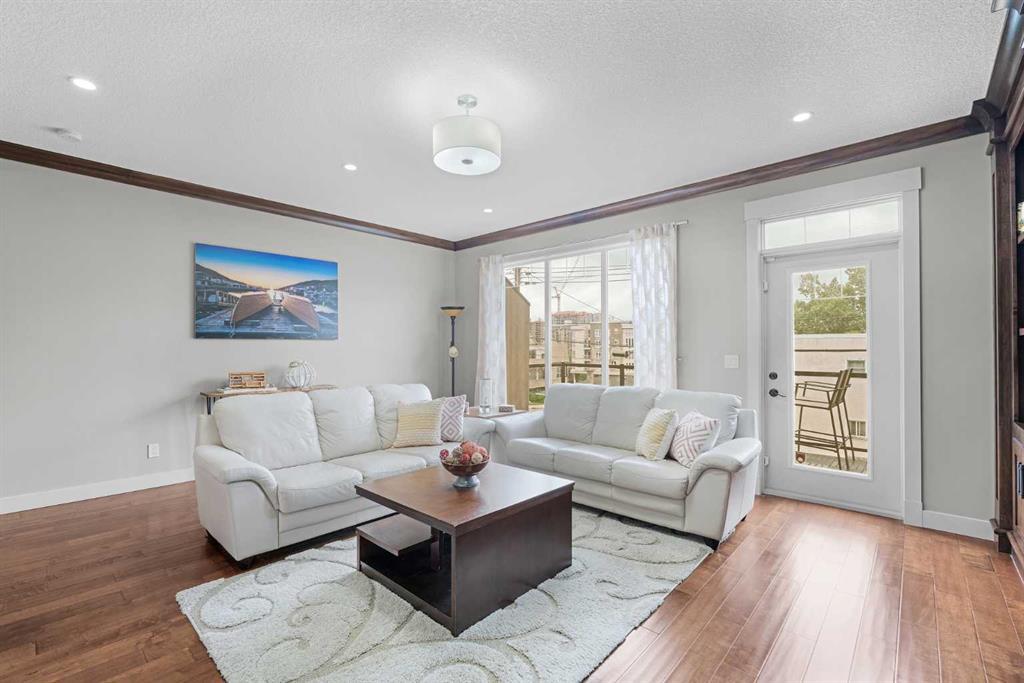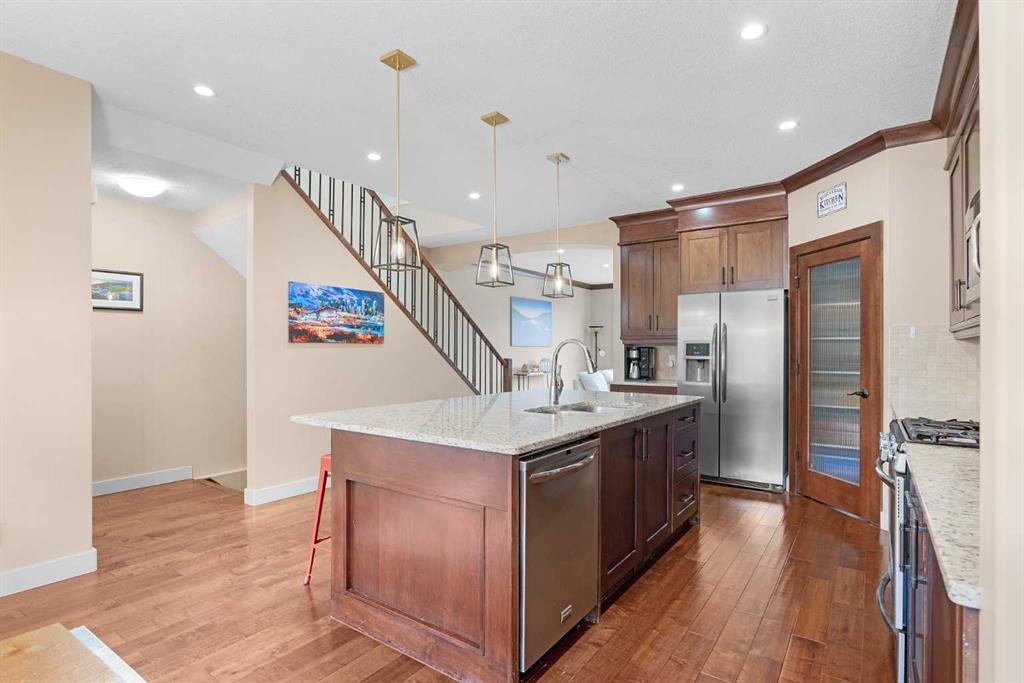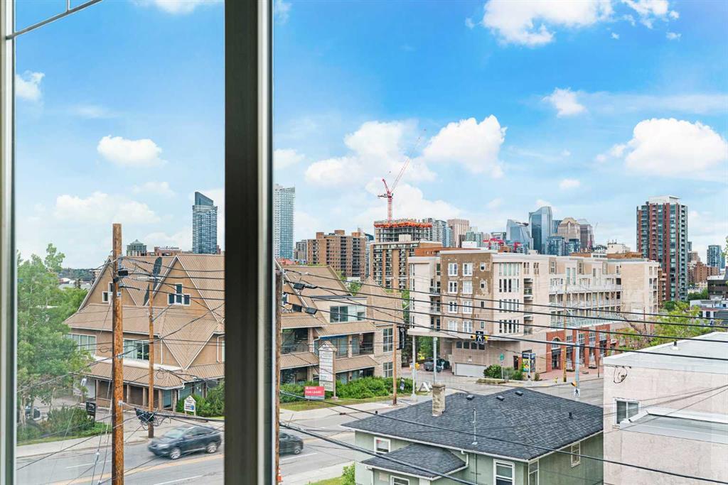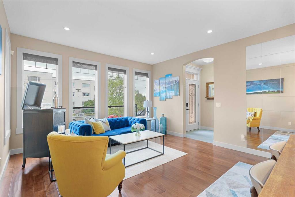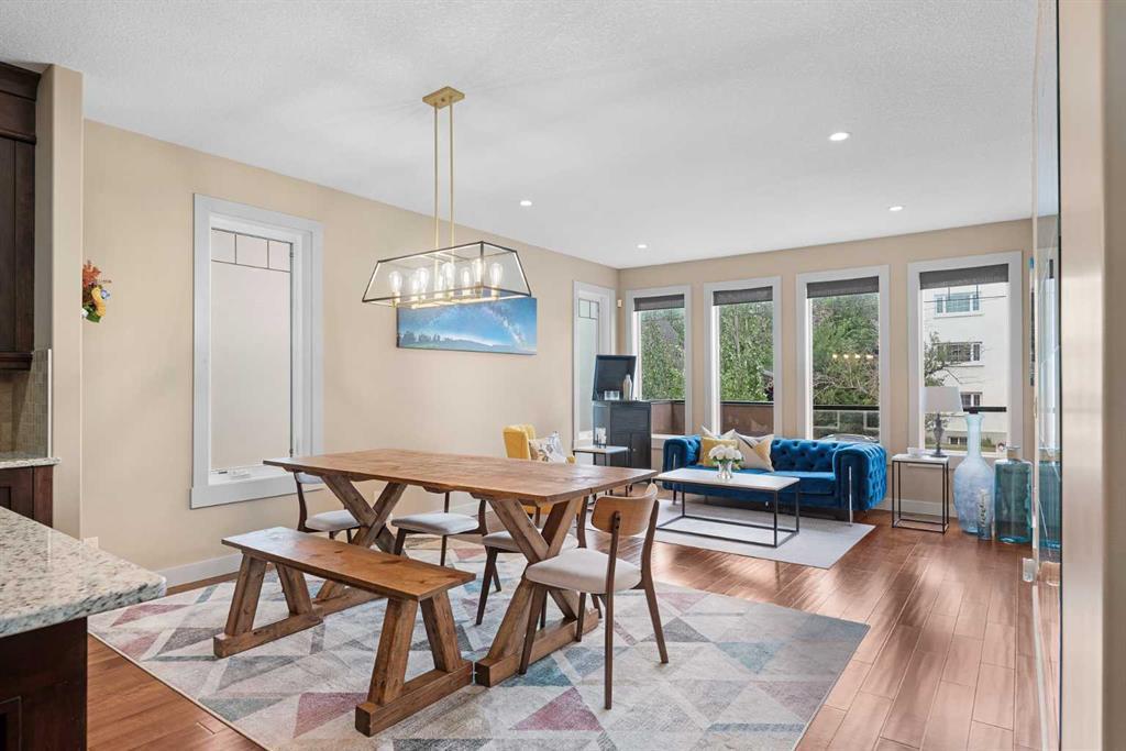 Introducing a fantastic urban haven with breathtaking city views on every level. This amazing 3-storey home spanning over 2,600 sq ft of total developed space, presents an unparalleled inner city living experience, surrounded by lively 17th Ave with everything at your fingertips, and just a few minutes to vibrant downtown by bike or public transit. Enjoy the open concept main floor, where an expansive living room awaits, boasting a gas fireplace surrounded by built-in shelving, and magnificent oversized windows illuminating the space with abundant natural sunlight. Elegant hand-scraped luxury hardwood flooring flows through the entire floor, and the spacious living and dining area, adjacent to the kitchen, creates a perfect setting for hosting memorable gatherings. The well appointed kitchen features a pantry, granite countertops, stainless steel appliances, a gas stove, and an ample island that provides an abundance of space for gathering with friends and preparing meals. Notice the skylight on your way upstairs, where you'll discover the convenient laundry room, a 3-piece bath, and three bedrooms, including the lavishly appointed primary bedroom, showcasing dazzling city views, a custom walk-in closet, and an opulent 5-piece ensuite resembling a luxurious spa retreat including tile flooring, a soaker tub, oversized glass shower, and a dual vanity. Both generously sized secondary bedrooms offer direct access to the upper balcony, providing a scenic sanctuary to relish your morning coffee or unwind with a book in hand. The walkout lower level presents a versatile space, ideal for family recreation, with a wet bar, a full bath, and direct access to the enclosed private backyard oasis, complete with a patio and a relaxing hot tub, perfect for embracing the summer season. Whether you're a family looking for a perfect nest or busy professionals seeking an extraordinary pad, this place has it all. It's casual, comfortable, and oh-so-stylish. Get ready to live your best l ife in this urban paradise. (Updates include new 2-stage furnace Dec 2021, Polyurea coated garage floors March 2022, some new windows in 2019, Telus Smart Home security system hardware) (id:22211)