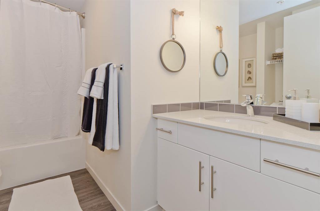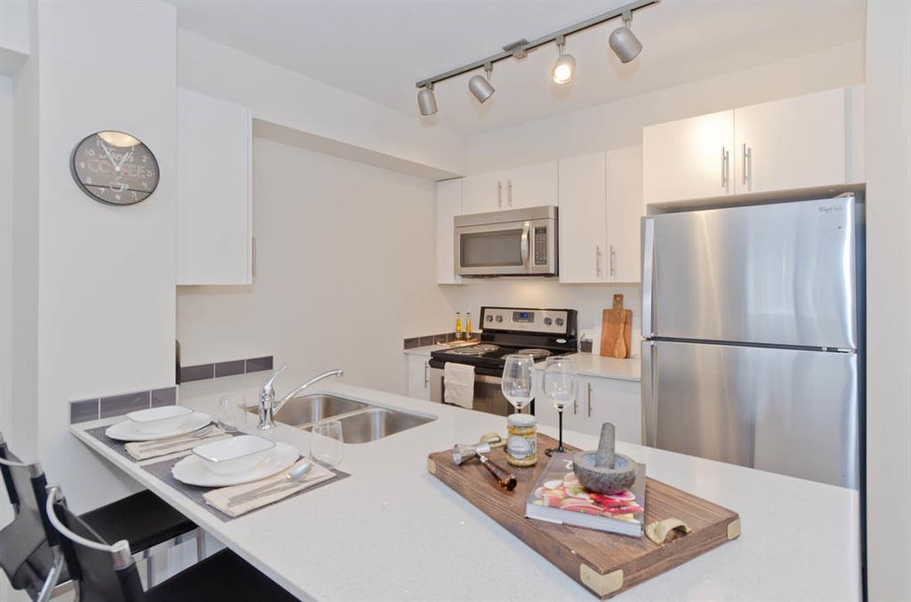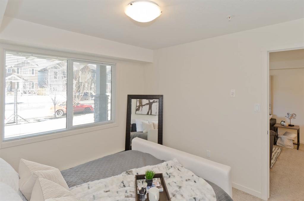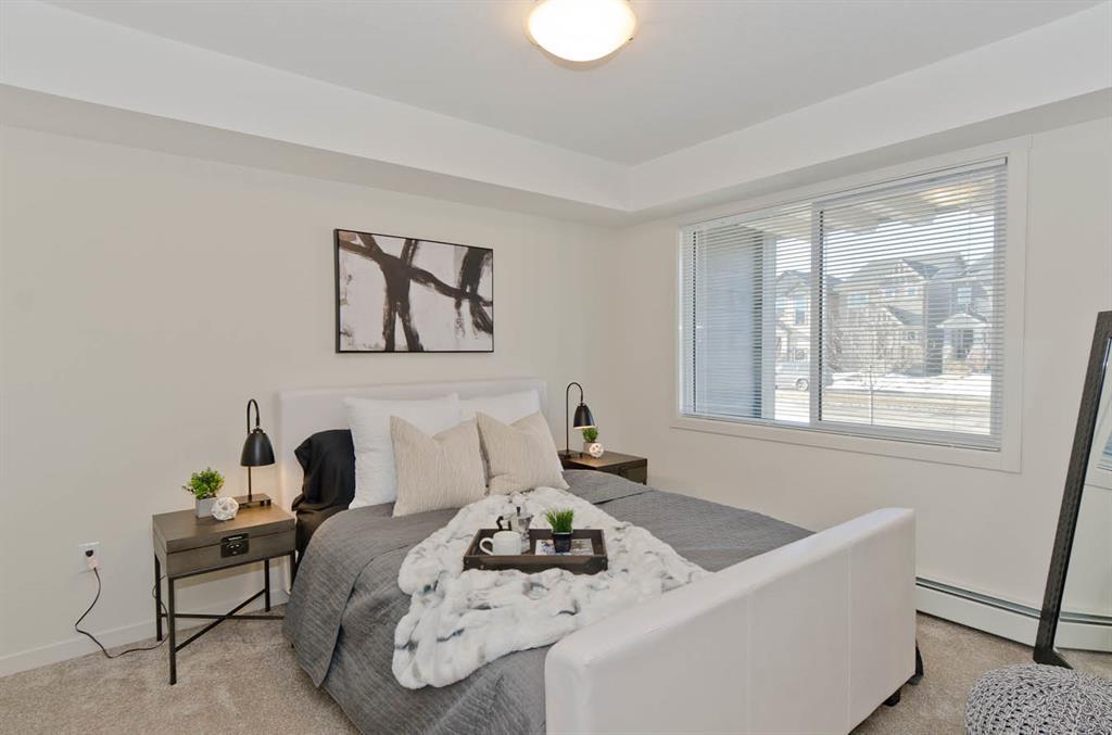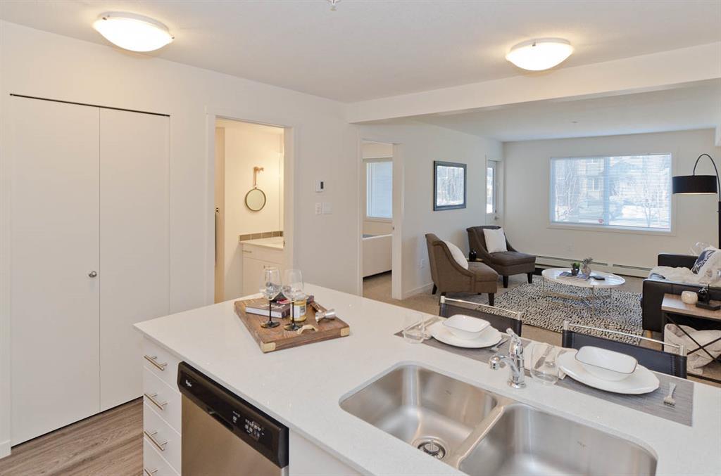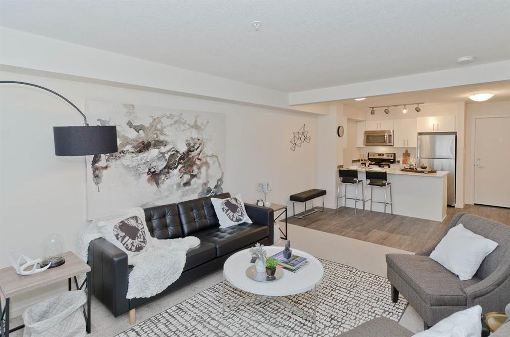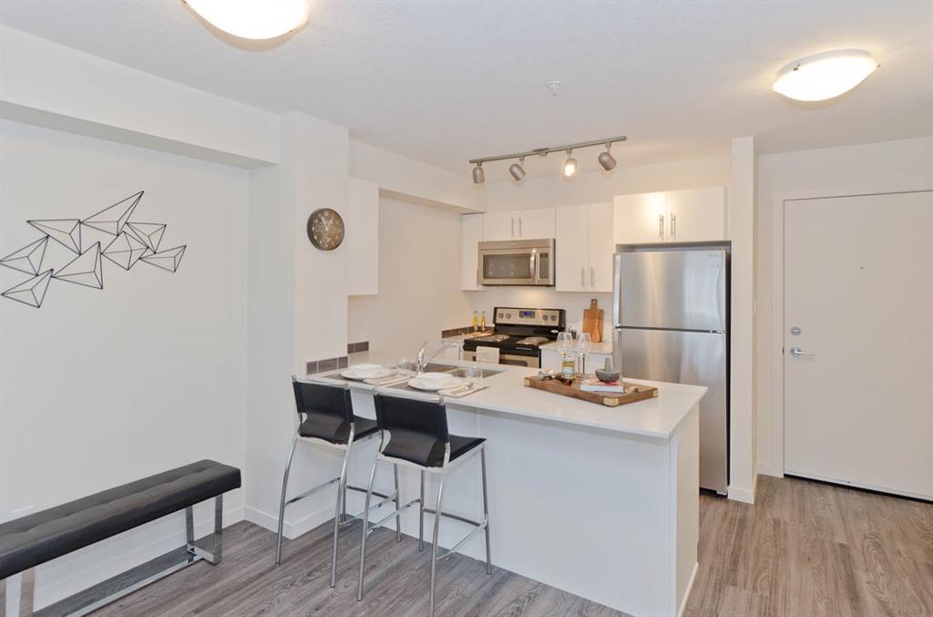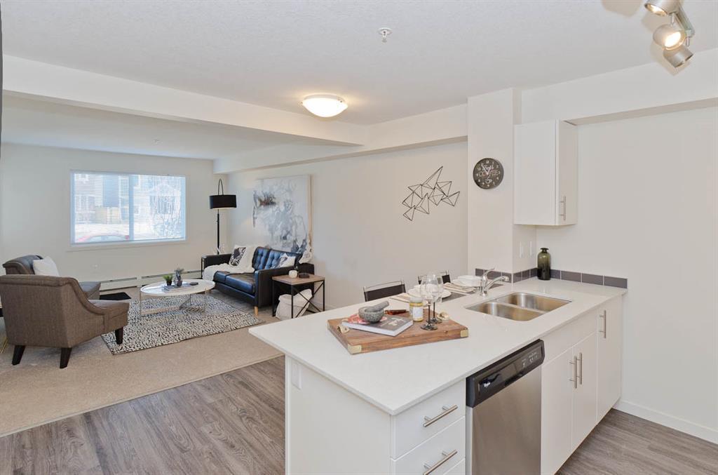 Welcome to McCall Landing! This beautiful 1 bedroom, third floor condo is well appointed featuring quartz countertops, stainless steel appliances and vinyl plank flooring. The thoughtful layout is bright, modern and open. Plenty of natural light and a sunny patio. In-suite laundry and storage area sure to please! This condo comes with an underground titled parking stall.. McCall Landing is an energy efficient building, which also features a fitness centre and recreation room. Enjoy close access to shopping, amenities and transit. Make Skyview Ranch home today! Photos are of a different but similar unit. (id:22211)