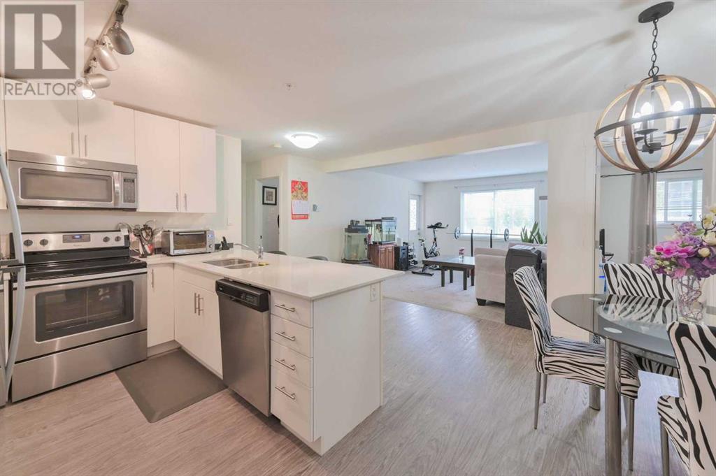 | NEW PRICE | 2 PARKING SPOTS | HEAT & WATER INCLUDED | 854 SQUARE FEET | LOW CONDO FEES | 2 BEDROOOMS | CORNER UNIT | Welcome to this meticulously maintained 850 sq ft second-floor condo in the vibrant community of Skyview Ranch. This spacious unit with high ceilings features 2 bedrooms and 1 bath, along with a stylish white kitchen boasting quartz countertops, stainless steel appliances, and ample cupboard space. Large windows fill the space with natural light, enhancing the bright and airy atmosphere. For convenience, the condo includes one titled parking stall, underground and heated, as well as a large in-suite laundry room with extra storage, and a generously sized balcony for outdoor entertaining.Residents enjoy additional amenities such as a gym and party room, 2 parking stalls (1 underground heated and 1 surface), a Community Garden Plot for growing vegetables or flowers, a designated Dog Park Area, and secured bike storage at no extra cost. The location is minutes away from schools, transit, playgrounds, parks, biking/walking paths, and a variety of shops and eateries. Enjoy quick access to Stoney Trail, Deerfoot Trail, and Metis Trail. CrossIron Mills Mall and big box retail chains on Country Hills Drive are less than a 10-minute drive away, perfect for satisfying your shopping needs.With its great location, modern features, secure parking, and affordability, this condo is a perfect choice for first-time buyers, small families, couples, or investors. Experience comfort and accessibility in this prime unit. (id:22211)