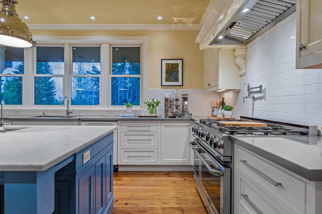 CHECK THE VIDEO TOUR. Welcome to a one of a kind offering in prestigious Foothills Estates. There are COMPELLING reasons why you want to consider this to be your next home. (1.) The incredible lot. 11000+ SF & pie shaped, which puts most of the space where you want it, in the sunny south facing yard that offers mountain & D/T views. The property is also adorned with one of the most beautiful gardens you will find. | (2.) The floor plan. Offering 3192 square feet above grade & a total of over 5600 square feet of living space, this is a size that is seldom found for a newer built, estate bungalow. You can count on one hand how many homes like this come to market in Calgary in any year. | (3.) The design. Renowned Dejong Design Associates designed this WALKOUT BUNGALOW + loft to present a gorgeous yet impressively modest appeal from the curb, which flows into a grand, executive home, constructed with an uncompromising level of finishing. | (4.) The design, features & home quality. Spectacular foyer with a gorgeous view into the dining room. The formal living room has a wood burning, Carrera marble fireplace. Truly a chef’s kitchen that will take your breath away. Carrera marble + stainless steel counters. Sub Zero fridge, Miele dishwasher, & a Capital commercial grade 6-burner gas stove + double ovens. The primary bedroom is privately tucked away & features an ensuite with steam shower, luxurious tub, heated floor & adjoining closet. The family room walks out to your raised, 4" concrete deck (with heaters) with scenic south views. The home also has a 920 SF loft which offers flexible uses for this space. Use as an exercise room, bedroom, office or studio. The walkout basement features 4 bedrooms, mahogany wine room, ample laundry space (with laundry chute), 2 full baths, bar area & rec room. Walkout to your gorgeous patio space & gardens. 29’x25’, oversized garage with custom cabinets, 220v for an EV & an epoxy heated floor+drain. The mudroom off of the garage is al so plumbed for a stacked washer/dryer. Imported, wide plank Heart Pine flooring & one of kind, imported chandeliers throughout, windows with retractable screens, high efficiency boiler system, large H20 tank, AC, Control4 sound system management, reverse osmosis H20 system, Cat5 wiring, u/g irrigation & more. | (5.) The location. AMAZING! The home faces Cayuga park with views of Nose Hill, & close to the Calgary Winter Club. Foothills Estates is a special pocket in Collingwood where you will find newer, estate quality executive homes. | (6.) Consider what it would cost to recreate a property like this today. This lot alone is 7 figures, plus a 5600 square foot home with a high premium build quality. You can’t come close to duplicating this property at this price. EVERYONE who views this home & property says, "it needs to be seen in person to be truly appreciated". Call us or your Realtor to view this spectacular property! (id:22211)
