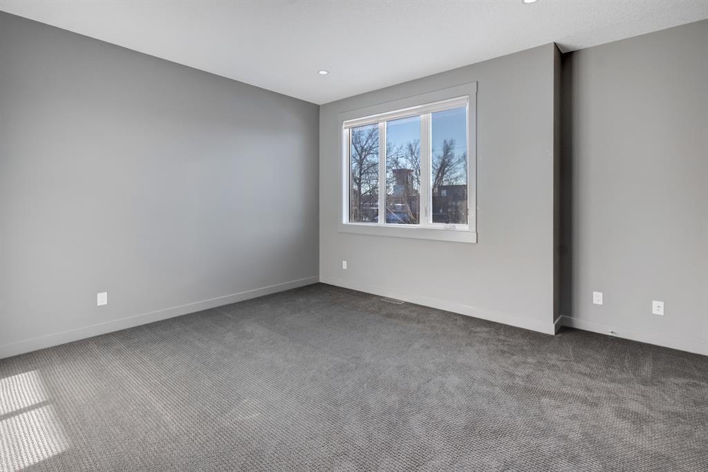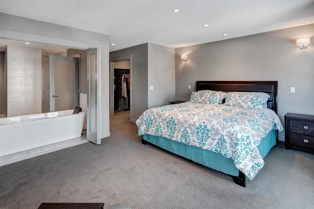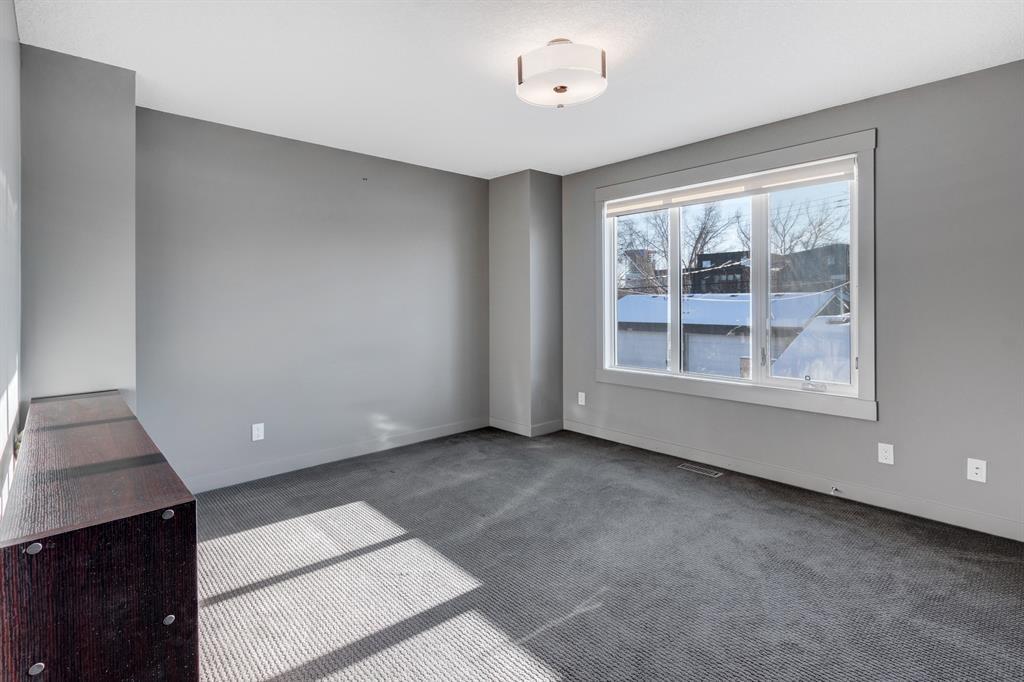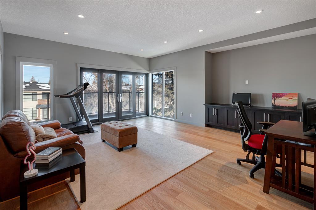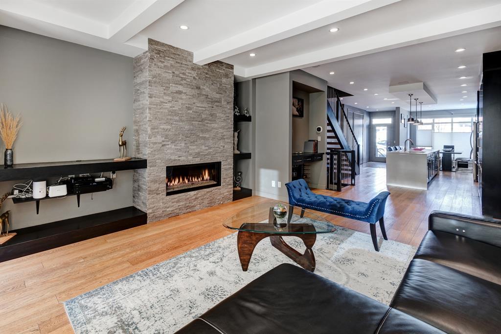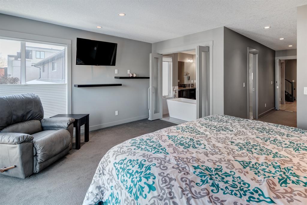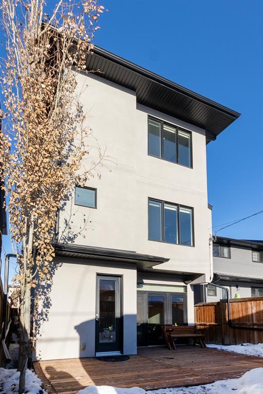 Welcome to this stunning detached Luxury Home in Hillhurst, where modern design meets meticulous craftsmanship. This impressive property boasts over 3,500 sq ft of developed living space, offering an exceptional lifestyle to the discerning buyer.Upon entering the home, you are greeted with an open concept main floor featuring 9' ceilings, BUILT-IN SPEAKERS, and wide plank hardwood floors. The formal dining room is perfect for entertaining guests, while the gourmet kitchen is a chef's dream with ample espresso maple cabinets, quartz countertops, and deluxe SS appliances such as a gas cooktop, oven, and built-in microwave.The bright and spacious living room is enhanced by a cozy fireplace, making it an ideal place to relax after a long day. A convenient 2pc bathroom completes the main floor.As you ascend the elegant hardwood staircase to the upper level, you will discover two generous bedrooms, each with their own ensuite, and a laundry room with extra storage. The Master Bedroom is a true sanctuary, offering large windows, a walk-in closet, and a luxurious 5pc ensuite with dual sinks, a free-standing soaker tub, and a separate shower with in-floor heat. The Romeo & Juliet doors open up to the outside, creating a serene and peaceful retreat.The third floor is a true showstopper, featuring a 3rd bedroom that is perfect for guests, a huge family room with a view of downtown from the outside balcony, and a wet bar with a fridge and dishwasher. A 3 piece full bathroom completes this level, making it the perfect space for entertaining friends and family.The fully finished basement is licensed for use as a bed and breakfast and offers an excellent opportunity for extra income as a B&B, Airbnb, home office, or cozy family space. This level includes a bedroom, a 3pc full bathroom with a tiled steam shower, a family/living room with a small kitchenette. The separate exterior entrance and soundproof ceiling make it an ideal space for privacy and comfort.This property is e quipped with solar panels, a central vacuum, and a garburator in the kitchen sink, offering convenience and efficiency. The double detached garage with a paved back alley has a built-in work table with shelves, providing ample storage and workspace.Conveniently located just minutes away from downtown, the river walk and bike path, trendy Kensington area, hospitals, schools, and parks, this property offers a truly exceptional lifestyle. (id:22211)