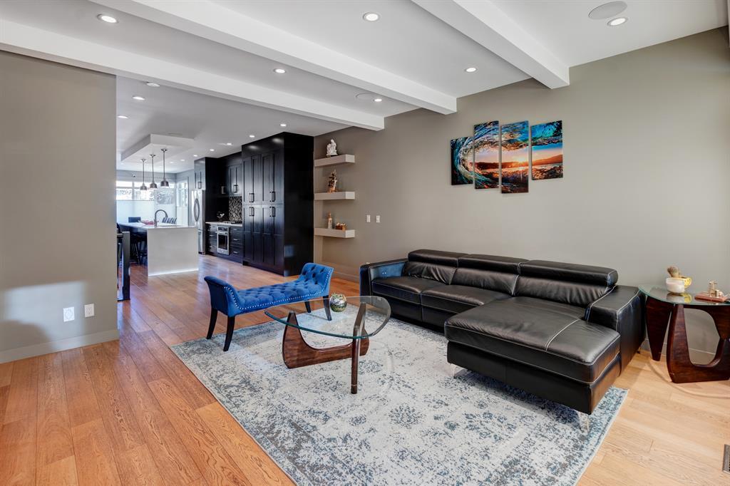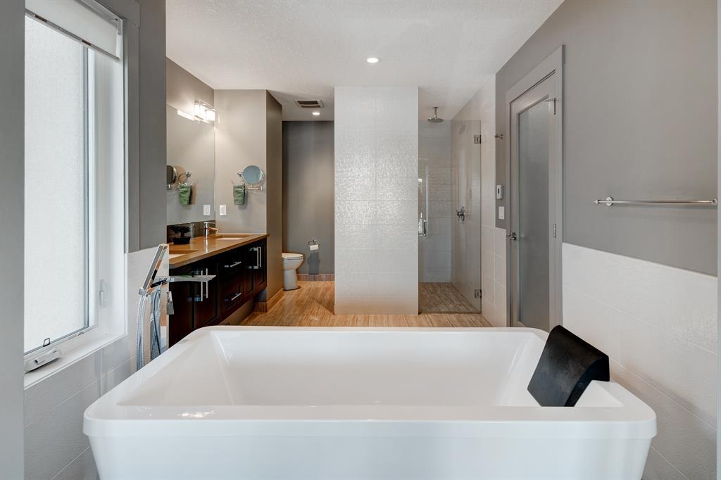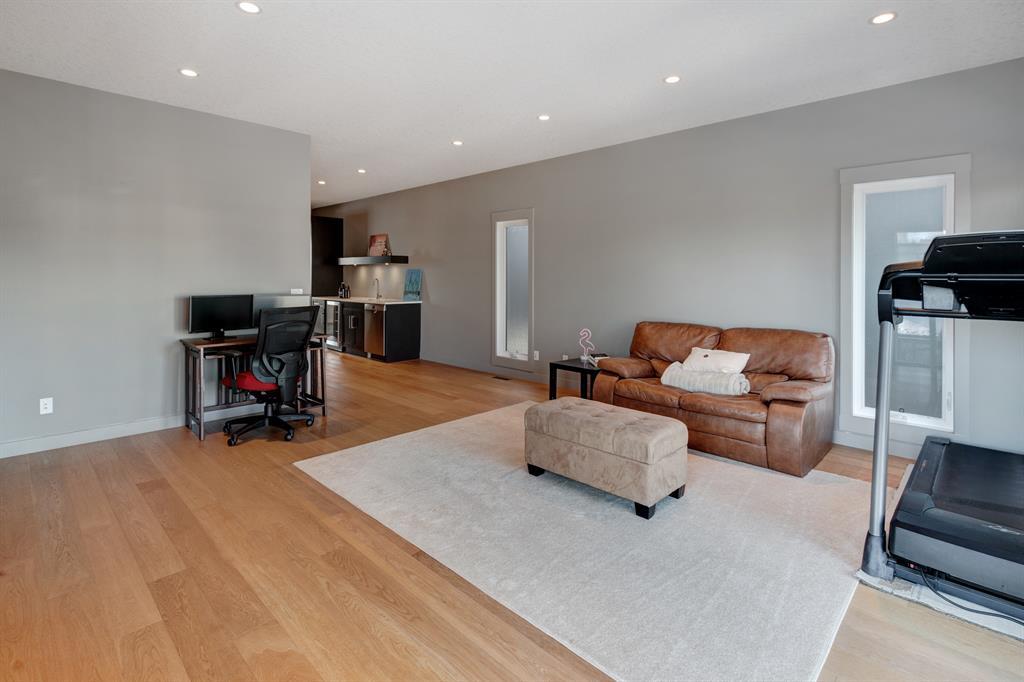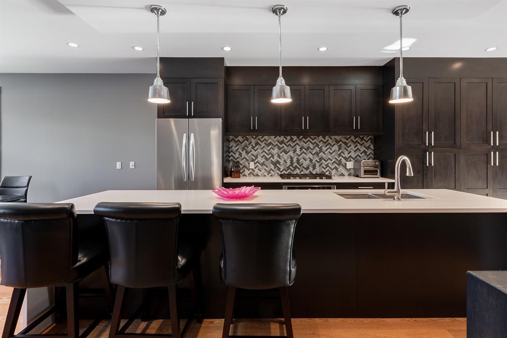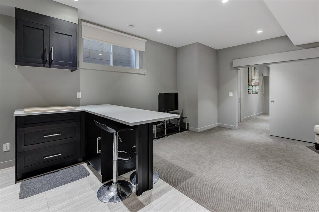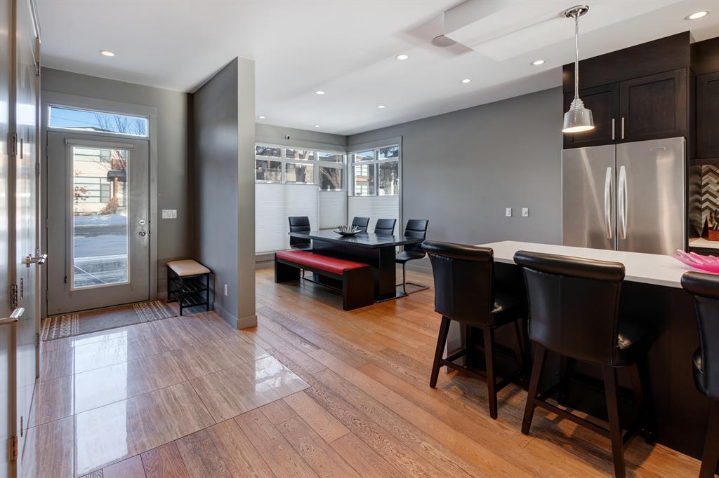 Welcome to this stunning detached Luxury Home in Hillhurst, where modern design meets meticulous craftsmanship. This impressive property boasts over 3,500 sq ft of developed living space, offering an exceptional lifestyle to the discerning buyer.Upon entering the home, you are greeted with an open concept main floor featuring 9' ceilings, BUILT-IN SPEAKERS, and wide plank hardwood floors. The formal dining room is perfect for entertaining guests, while the gourmet kitchen is a chef's dream with ample espresso maple cabinets, quartz countertops, and deluxe SS appliances such as a gas cooktop, oven, and built-in microwave.The bright and spacious living room is enhanced by a cozy fireplace, making it an ideal place to relax after a long day. A convenient 2pc bathroom completes the main floor.As you ascend the elegant hardwood staircase to the upper level, you will discover two generous bedrooms, each with their own ensuite, and a laundry room with extra storage. The Master Bedroom is a true sanctuary, offering large windows, a walk-in closet, and a luxurious 5pc ensuite with dual sinks, a free-standing soaker tub, and a separate shower with in-floor heat. The Romeo & Juliet doors open up to the outside, creating a serene and peaceful retreat.The third floor is a true showstopper, featuring a 3rd bedroom that is perfect for guests, a huge family room with a view of downtown from the outside balcony, and a wet bar with a fridge and dishwasher. A 3 piece full bathroom completes this level, making it the perfect space for entertaining friends and family.The fully finished basement is licensed for use as a bed and breakfast and offers an excellent opportunity for extra income as a B&B, Airbnb, home office, or cozy family space. This level includes a bedroom, a 3pc full bathroom with a tiled steam shower, a family/living room with a small kitchenette. The separate exterior entrance and soundproof ceiling make it an ideal space for privacy and comfort.This property is e quipped with solar panels, a central vacuum, and a garburator in the kitchen sink, offering convenience and efficiency. The double detached garage with a paved back alley has a built-in work table with shelves, providing ample storage and workspace.Conveniently located just minutes away from downtown, the river walk and bike path, trendy Kensington area, hospitals, schools, and parks, this property offers a truly exceptional lifestyle. (id:22211)