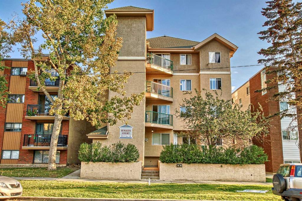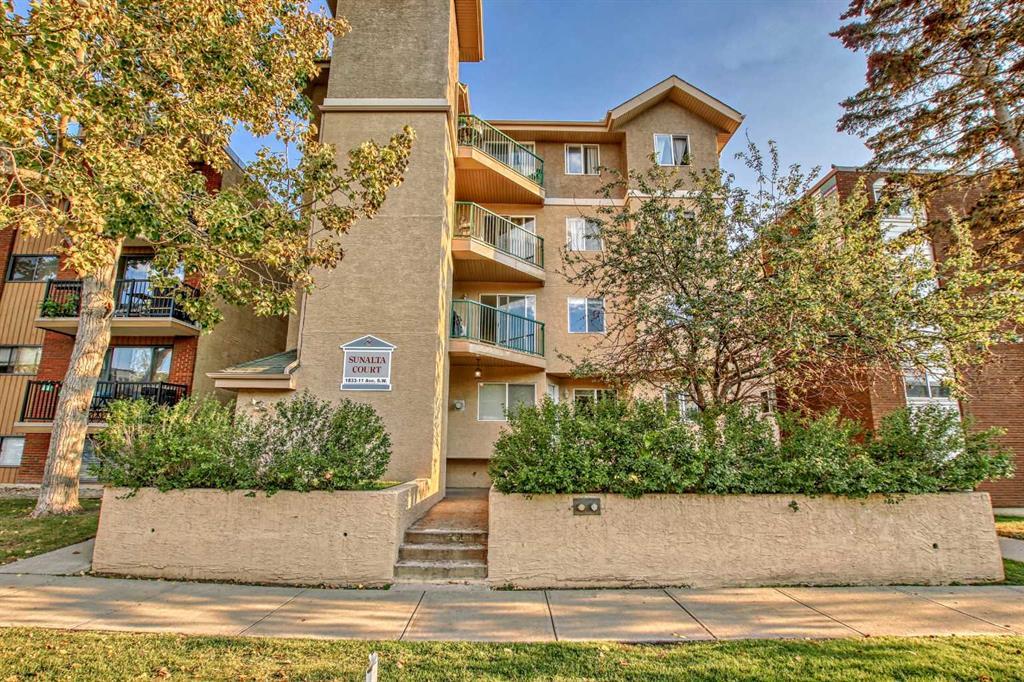 Immaculate condominium in Sunalta Court, close to the Sunalta C-train station and Downtown. This lovely condo is located on the 3rd floor in the quiet community of Sunalta. The condo is a custom designed low rise apartment, that is bright, clean, fresh and ready to move in. The unit has modern styled maple cabinetry, laminate in living and dining area with a corner gas fireplace, brand new carpet in spacious bedroom with dual closets and a large soaker tub in the bathroom. The building comes with an in-house elevator and owner secured, heated underground parking with intercom entry access. The apartment includes an in-suite washer/dryer. Condo fees include heat, electricity, water and secured heated underground parking. No separate utility or parking bills to pay! The balcony offers space for that outdoor summer BBQ complete with gas line and stylish wood bench unit with storage and flower box. Enjoy the close proximity to walking paths along the Bow River, Sunalta School, the West Village are and Downtown West End. Commuting is made easy with quick access to Crowchild Trail, 14th street, 17th Avenue and the Sunalta LRT station just a short walk, only 400 metre away. Great value! (id:22211)