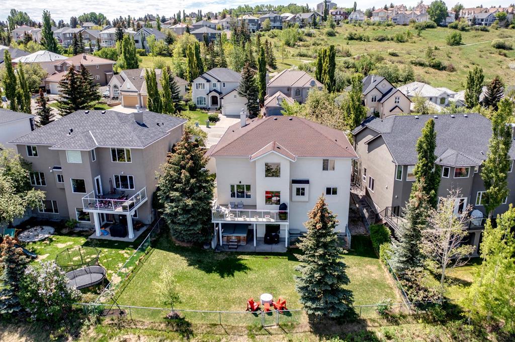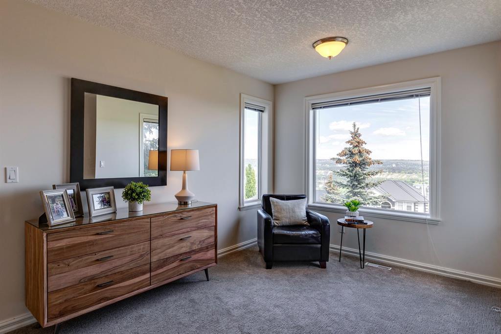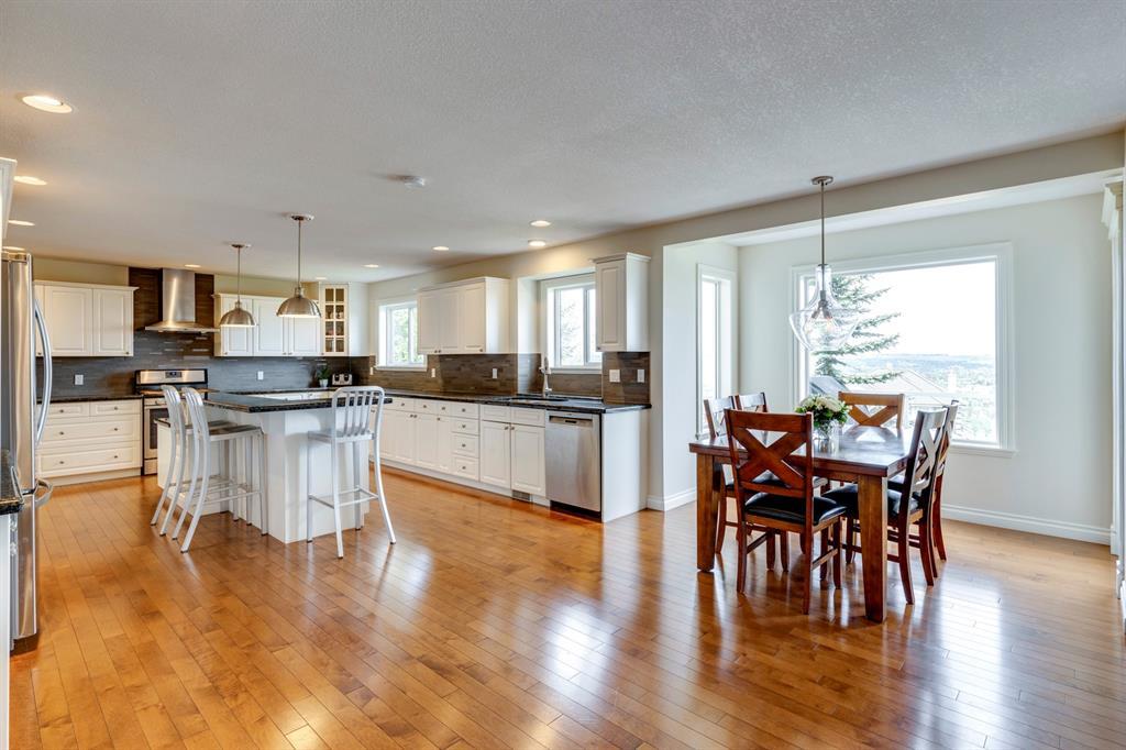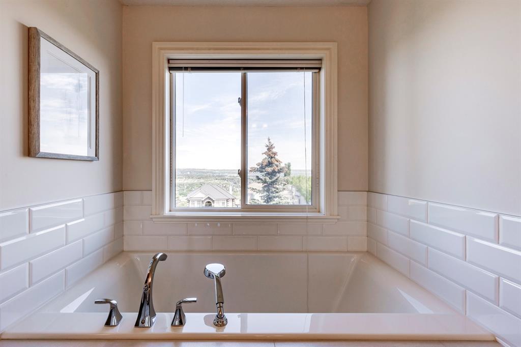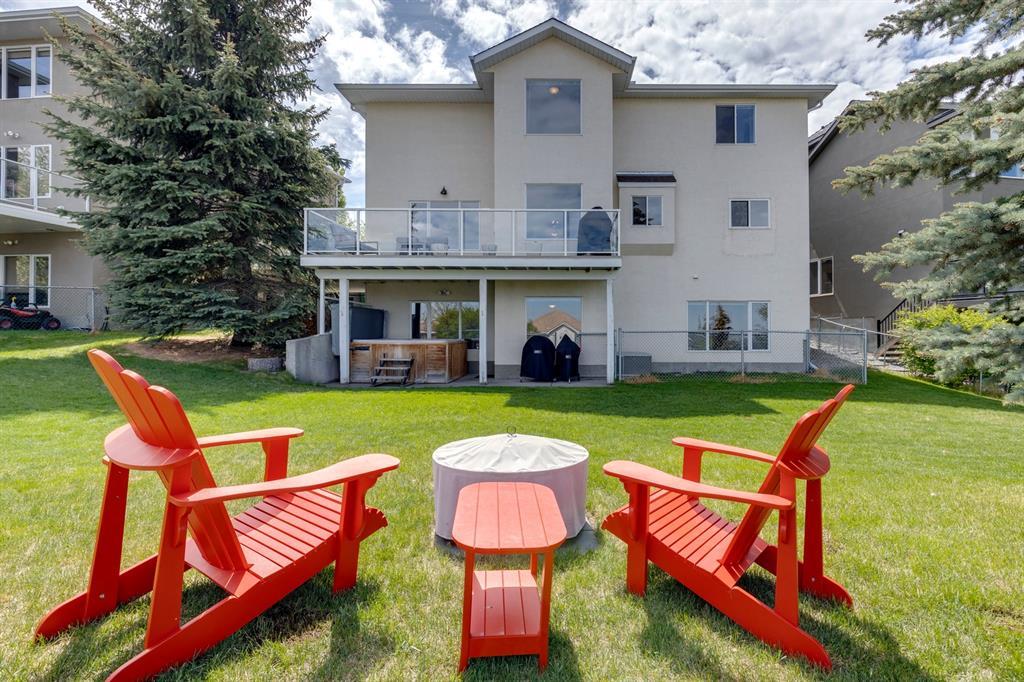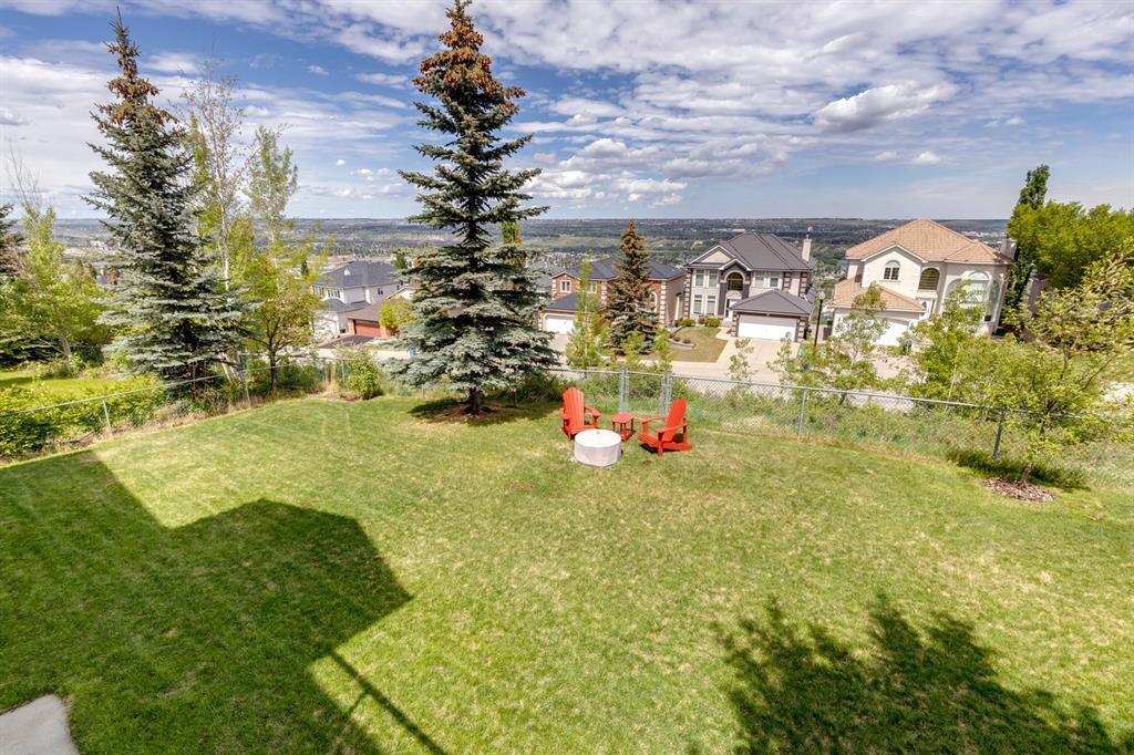Spectacular views, a large yard backing a natural green space, recent updates and a fantastic floor plan make this home an excellent choice for a growing family. A formal sitting area greets you from the impressive double height foyer. To the left is a quiet office, ideal for studying or working from home. The classic black and white kitchen offers lots of storage, stainless appliances, glass display cabinets, a wine rack, a baking counter and a breakfast bar for casual meals on the go. Serve family dinners in the sunny dining area overlooking the beautiful Bow River valley. The cozy family room is complemented by a fireplace framed by shelving making this a comfortable space to unwind. An elegant, curved staircase leads you up to the primary suite, where the views from the sitting area are even more breathtaking and the tastefully renovated ensuite beckons you at the end of the day. Three additional bedrooms and a bathroom are perfectly sized for the kids. Downstairs, the fully developed basement has a large recreation room with a wet bar, a second fireplace and access out to a covered patio. Imagine hosting friends and family in this area designed with entertaining and fun in mind. The basement bedroom could easily be used for guests or as a gym. One of the highlights of this property is all the outdoor living spaces, including a large wrap around deck with multiple seating areas, the yard with its mature trees, the nearby walking paths and green space that is accessible from the back gate. This home is an amazing option for a family that needs room for everyone to have space to call their own. (id:22211)