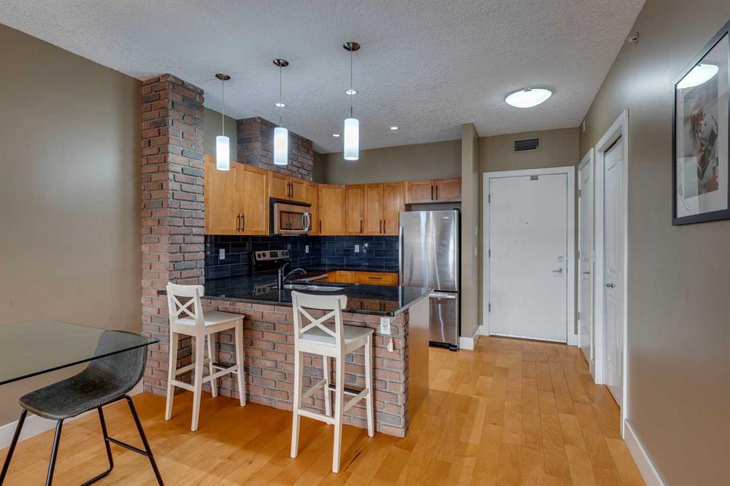 Welcome to Montgomery Place, which is one of the anchor buildings for Montgomery’s quickly transitioning urban core. We love this building for a bunch of reasons…first, the units are extremely well laid out, have generous spaces and square footage ranges, you are in one of Calgary’s fastest growing communities, you can walk to the river in less than 5 minutes, there are piles of amenities in walking distance, and you are just a short car ride from downtown, or the west edge of the city. Also, the building has gone through major upgrades in the past 6 years. Couple that with a commercial sector at the base of the building with the renowned Notable restaurant as the feature tenant, and you have an absolute gem of location. Unit 411 features one bedroom with a den (which is large enough to be a bedroom, and even has a closet, but it doesn’t have an outside window, so we can’t call it a bedroom). The ceilings are 9 feet high, and couples with the floor to ceiling patio doors, the space is super bright. Being the top floor, the view is great, with the river valley and downtown all visible from your patio, which is an extremely private space with no other neighbours visible. Did we mention how close you are to the Children’s Hospital, the U of C, as well as the Foothills Hospital? All are just a short commute away. For more details, and to see our 360 virtual tour, click the links below. (id:22211)