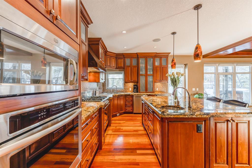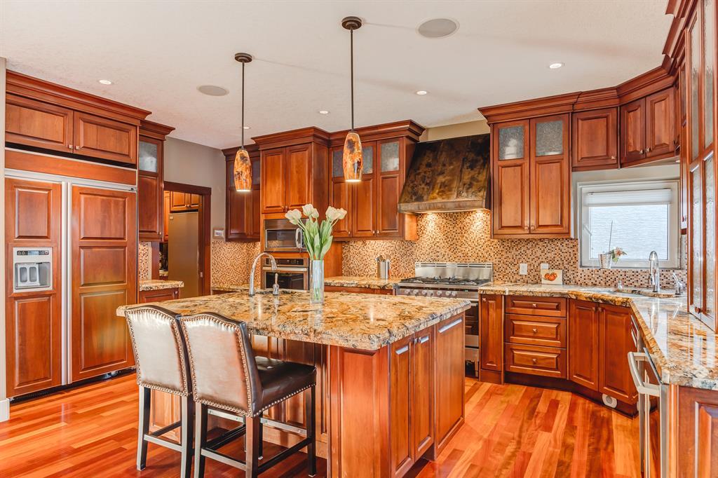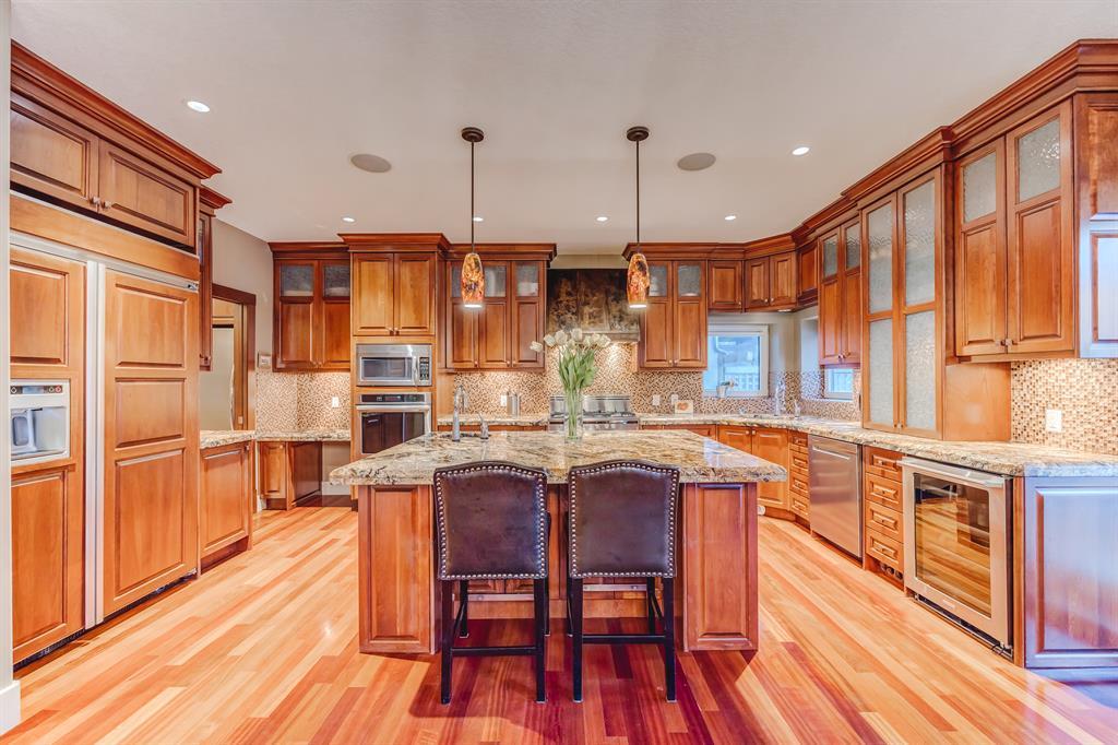 OPEN HOUSE Saturday 2-4pm MAY 20TH Rare opportunity to purchase an estate home backing West onto the Calgary Golf & Country Club. Only 5 large homes on this street had the chance to build on this exclusive golf course. Located on an extremely quiet crescent with lots of mature trees lining the street. This impressive 2 storey boasts over 4300 square feet of developed space and has 4 bedrooms, 5 bathrooms and a fully developed basement. There are more features in this home than is possible to write up in this space. Ask for our extensive spec sheet. This classic home was built in 2006 by well known builder Urban Homes Ltd. This masterpiece was planned and constructed by Urban Homes for himself and his family. Now you can enjoy walking next door to Sunterra grocery store, Starbucks and all the cute shops in Britannia Square. Go for walks with the family or dog(s) to Sunset Beach and down to the river. You will never find another house like this one in the area. Outside you'll notice elegant high peaks capped with concrete tile, beautiful stonework accented with acrylic stucco. The large driveway is finished with exposed aggregate and is roughed-in for slab heating. Entering the home you marvel at the solid “high style” cherry doors, stone accent wall and intricate millwork. The heated travertine tiles in the foyer display the elegance that you are about to experience. The main floor is finished with Brazilian cherry hardwood which carries up the staircase and is illuminated by strips of onyx built into each stair. The main floor consists of the den, family room, kitchen (with butler’s pantry) and focal point being the central dining room with a coffered ceiling accented with copper. The kitchen is a cook’s dream with high end appliances, abundant cabinets and a vegetable sink built into the huge island. The island displays a vibrant, granite design that pulls together all the custom colors and tiles surrounding it. The butler’s pantry makes for easy prep for parties and large gatherings. Upstairs are three bedrooms each with their own ensuite. The primary bedroom has it’s own private balcony for enjoying a morning cup of coffee or late night drink. The ensuite is an oasis to escape to with a large jetted tub and oversized steam shower. The basement is a hidden gem with your own wine room, 4th bedroom, movie studio and large recreation room for playing cards and socializing. The garage is insulated, drywalled and has in slab heating. Other extras include 34 feet of storage cabinets and the ability to have a hoist put in for your favourite sportscar. This home is available immediately so phone your favourite realtor and book an appointment. (id:22211)