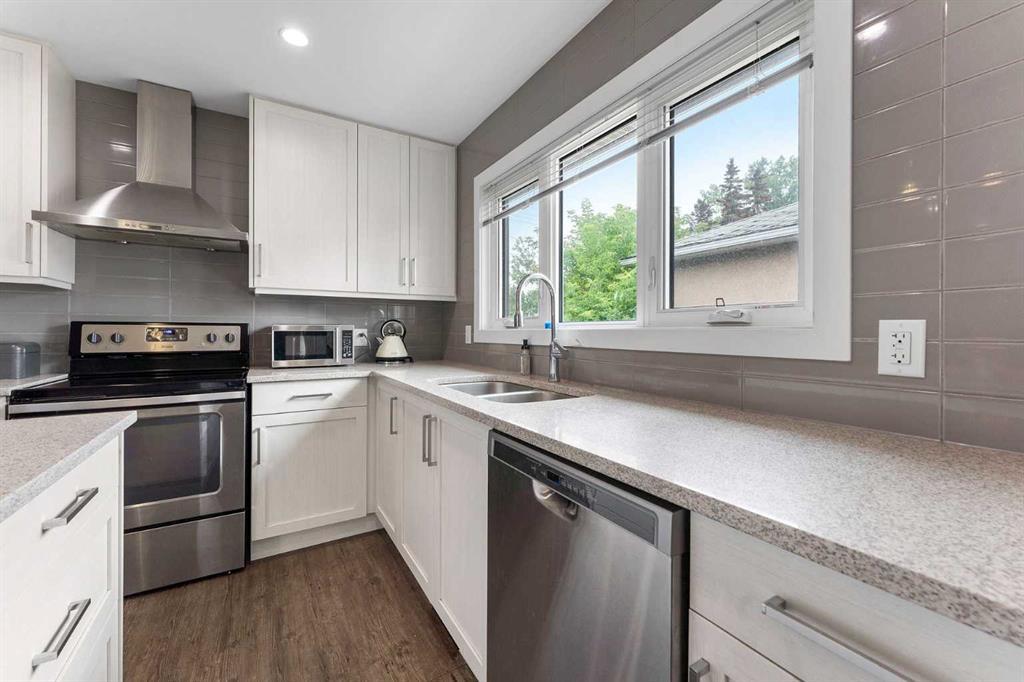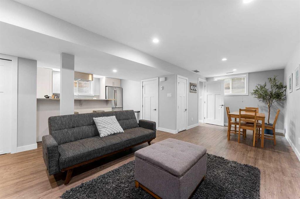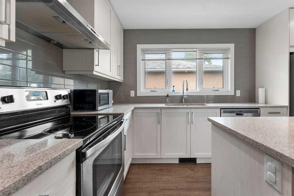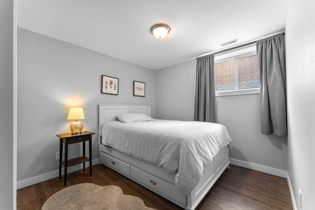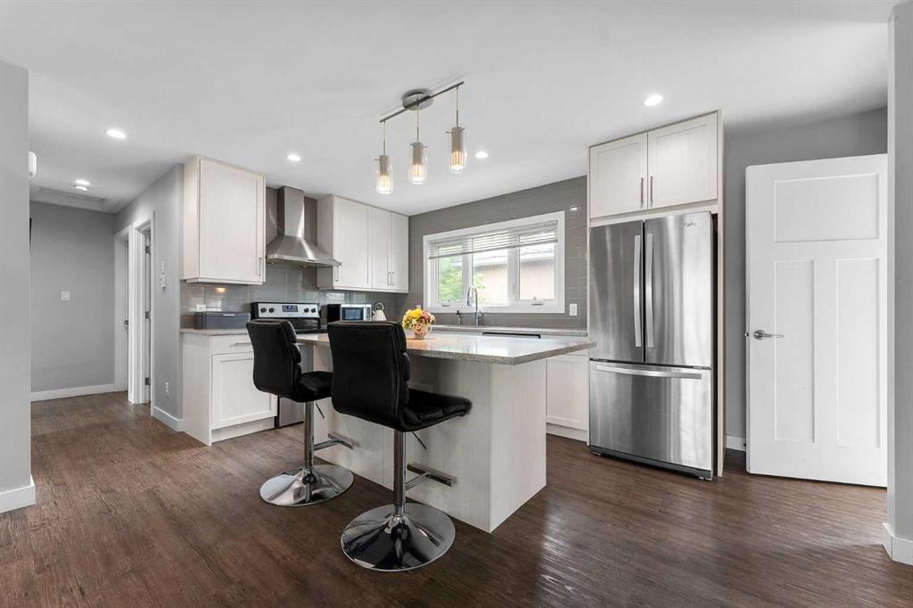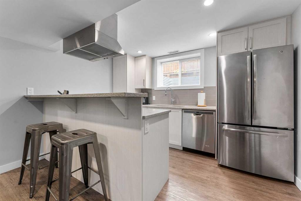 Beautifully redesigned bungalow situated on a corner lot in Glamorgan's desirable established community. Close to Mount Royal University steps to two highly regarded elementary schools, including the Glamorgan TLC. This home boasts 5 bedrooms and 2 bathrooms with over 1,600+ sqft of living space. Upon entering the main floor, you're greeted by gleaming vinyl plank flooring and a spacious living room featuring a bay window. The home boasts a generous kitchen with an adjacent eating nook, designed with a large island, stainless appliances, granite countertops, and lots of storage in the cabinets. Upstairs, you'll find three bedrooms, including a primary bedroom spacious enough to accommodate a king-sized bed. The lower level offers two additional bedrooms, a family room, and a second kitchen area - providing the option of generating additional revenue through a secondary suite - subject to approval and permitting by the city/municipality**. There are 2 laundry rooms, both conveniently located on the main floor off the kitchen and near the main living area downstairs. Double detached garage with street access and a fully fenced yard. Close to shopping, public transportation to downtown and easy access to the new ring road. With abundant potential and situated in the desirable neighbourhood of Glamorgan, this home offers a great investment opportunity and a comfortable living space. (id:22211)