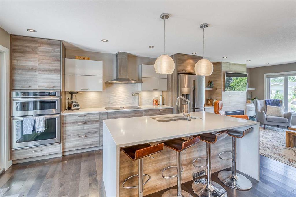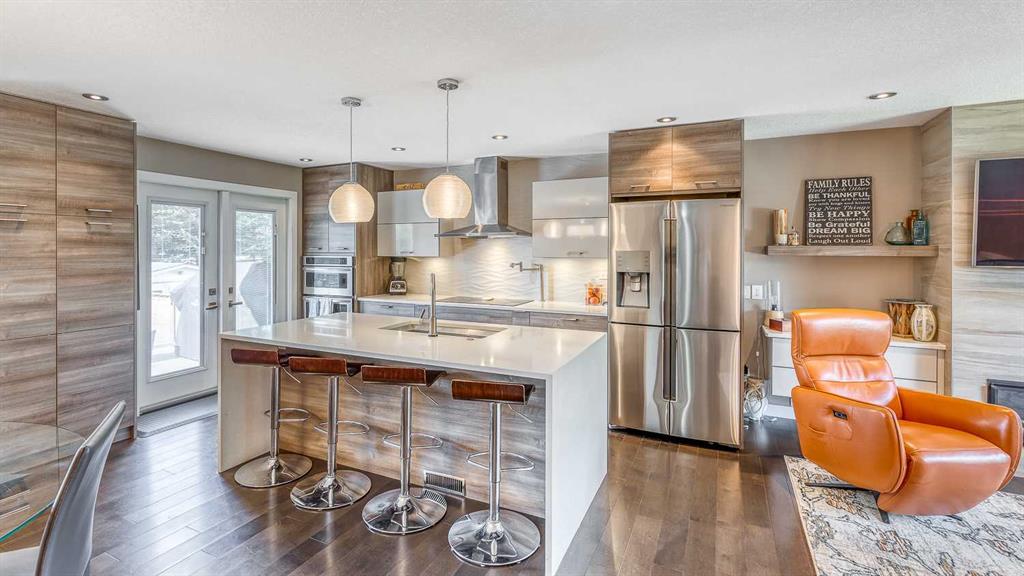 Welcome to this stunning 4-bedroom, 3-bathroom home, a true entertainer's delight! With over 2000 sq ft of living space spread over two levels, this property has been meticulously updated inside and out. As you step inside, you'll immediately notice the modern design and thoughtful layout.The heart of the home is the renovated kitchen, which is a culinary enthusiast's dream. Equipped for seamless entertaining, the kitchen boasts a large central island, perfect for gathering around. High-end appliances include a Miele dishwasher, Dacor induction cooktop, and a full-depth Samsung refrigerator. For coffee aficionados, there's a designated coffee counter complete with a bar fridge.The living room is a cozy haven, featuring a Valour gas fireplace with a remote control for added convenience. Automated Hunter Douglas blinds allow you to effortlessly adjust the natural light. The spacious family room and a convenient laundry room are located in the basement, providing ample space for relaxation and chores.The outdoor space is truly exceptional, making every day feel like a vacation. The backyard is an entertainer's paradise, with a two-tiered deck featuring a Duradeck upper level and a composite lower deck. Whether you're grilling on the upper deck's natural gas BBQ or enjoying a family fire pit on the lower concrete patio, you'll find outdoor living at its finest. With the foundation already in place for a pergola, you have the opportunity to further enhance the outdoor space. Ample room is available for garage construction, adding another layer of convenience to this already amazing property.The front yard is beautifully landscaped, boasting an exposed aggregate patio and a tranquil rock fountain. Conveniently located near transit, and just a 5-minute drive from Costco the Southwest Ring Road, this home offers both luxury and practicality. Don't miss your chance to own this remarkable property where every detail has been carefully considered for a truly exceptional l iving experience. Contact us today to schedule a viewing! (id:22211)