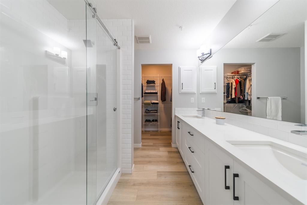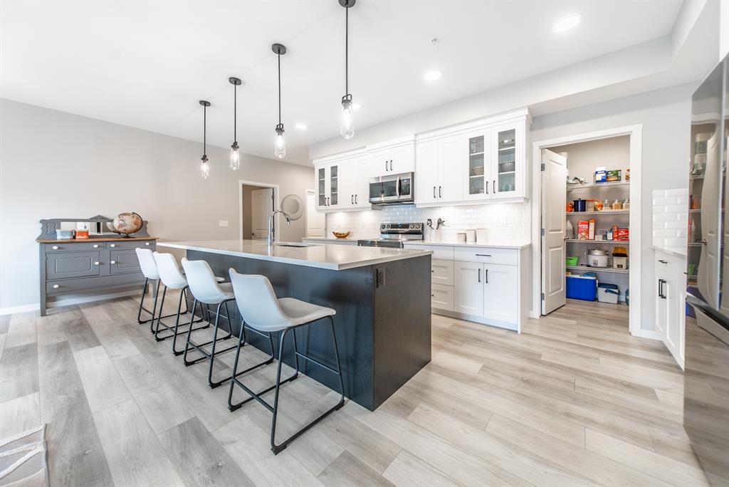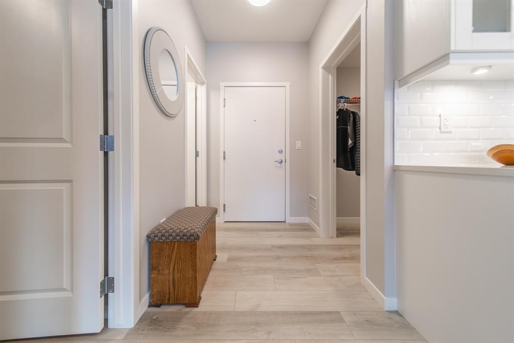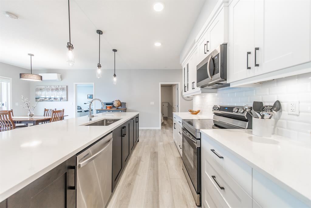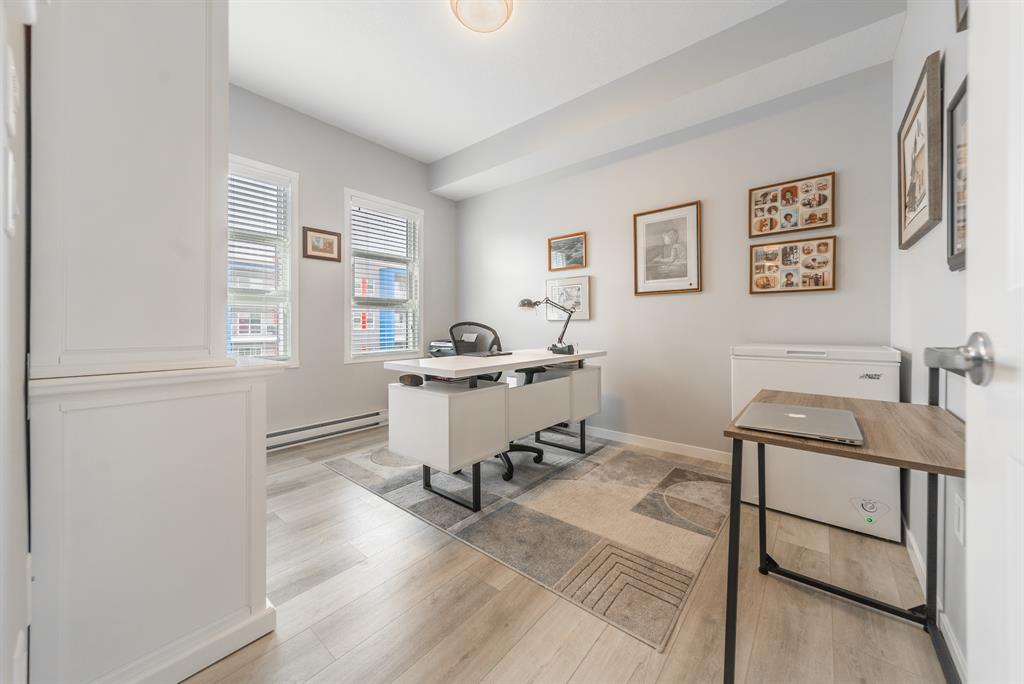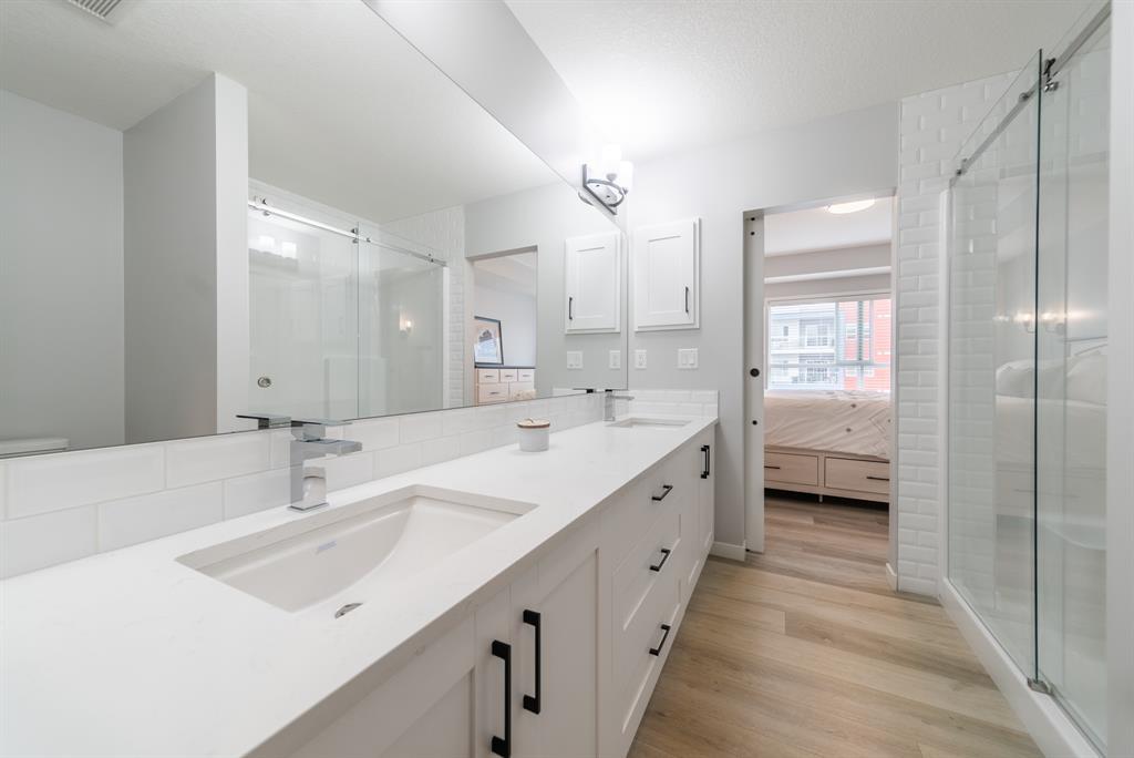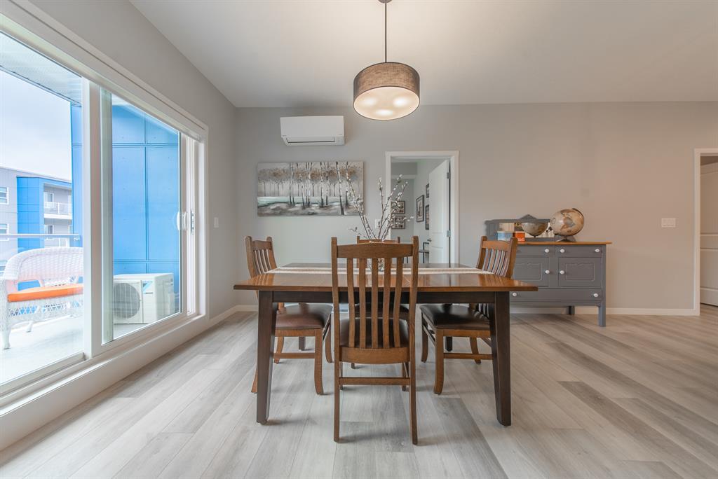 Welcome to the ultimate standard of modern urban living in Seton. This luxurious two-bedroom, two-bath home plus den (3rd bedroom) exudes quality and sophistication. The gorgeous colour palette creates timeless décor. Drenched in natural light this turn-key unit boasts a fantastic open concept floor plan designed for family gatherings and entertaining. The living space is clearly defined and flows effortlessly from kitchen, to dining to living room. The kitchen is the focal point of the main living space with endless counters and cupboards. Two tone full height cabinetry, classic quartz counter tops, sleek and simple subway backsplash, stainless steel appliances, massive island and a generous pantry. Dining can be expanded to accommodate larger gatherings for dinner. The dining area leads to the huge deck facing the lovely courtyard and community gardens. Very functional living room makes it easy to arrange furniture. The upgraded master bedroom boasts a lavish ensuite with dual sinks, quartz counters, a spacious shower and walk-in closet. The den has lots of flexibility. Office space, home gym or even a little bedroom as it has a nice large window. Convenience is key with a full-size laundry room providing additional storage space. The 4-piece main bath completes this unit. This home also offers the luxury of double underground titled parking, a wall unit air conditioner that doubles as a heater with remote, and stunning luxury vinyl plank flooring throughout. The South Calgary Hospital is a 2-minute walk and the YMCA is within walking distance as well. Enjoy the vibrant location and all the exceptional amenities Seton has to offer including shopping, dining, off-leash dog park (dogs permitted up to 50lbs with board approval), a skate park, future LRT Green Line, Movie Theatre and more! Indulge in a lifestyle of comfort and elegance. Your urban retreat awaits! (id:22211)