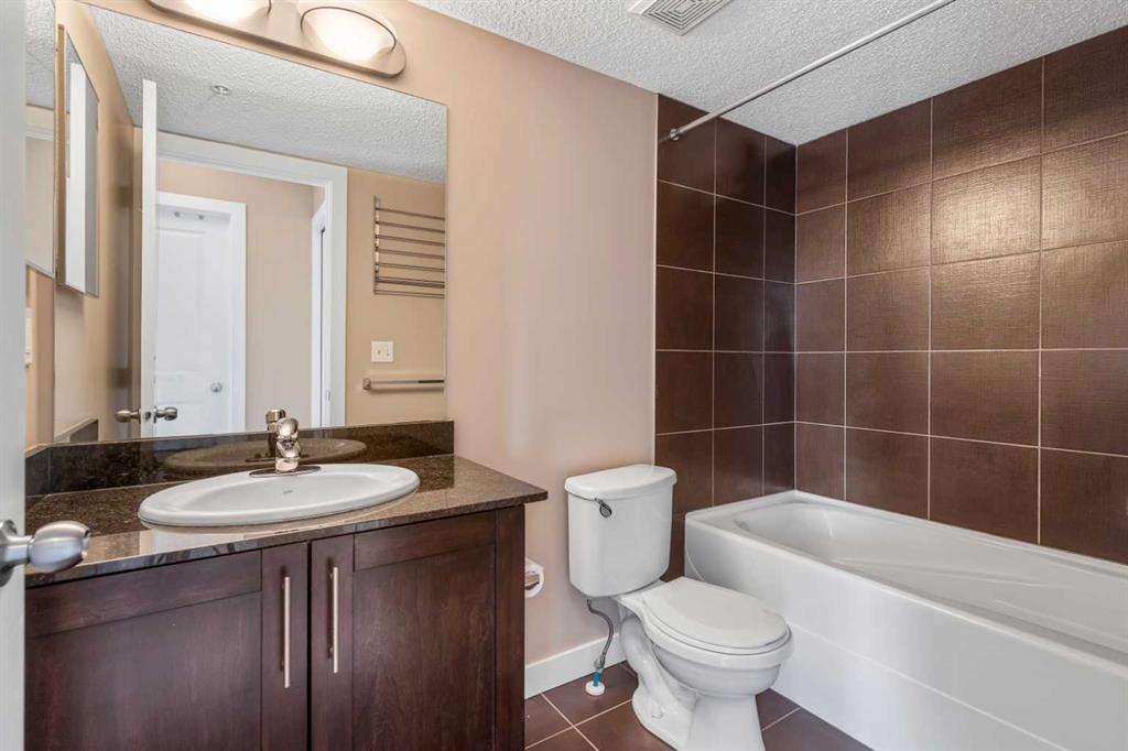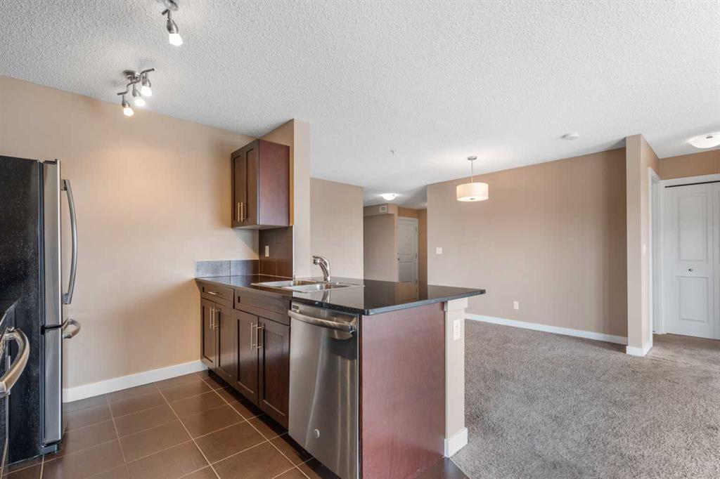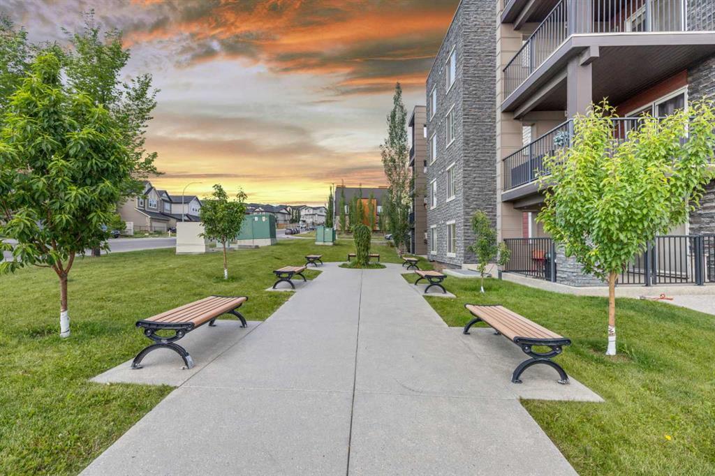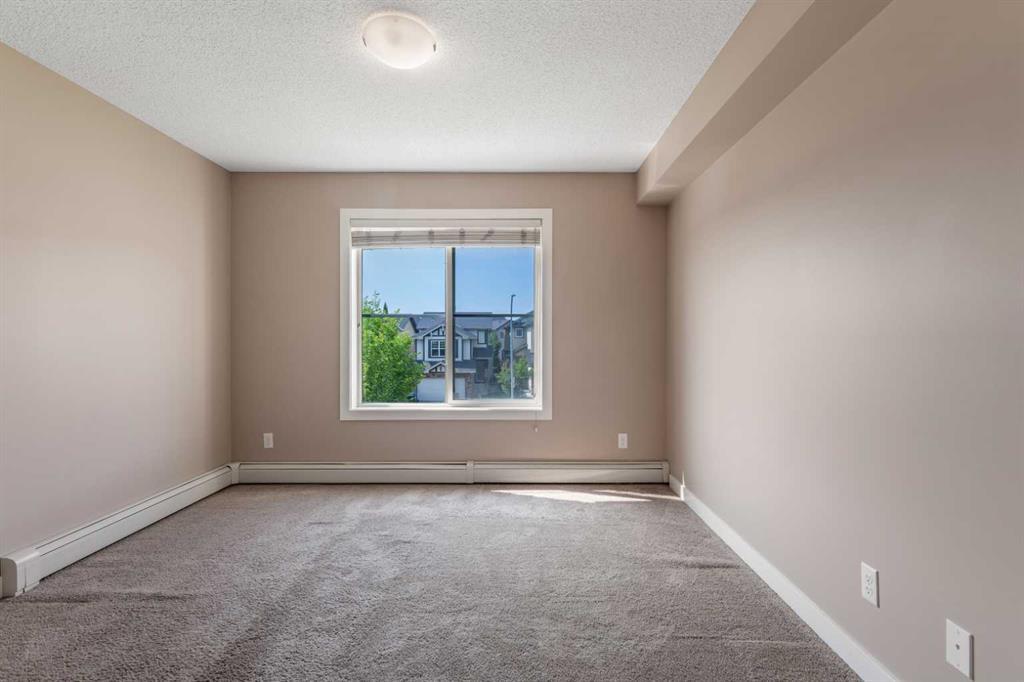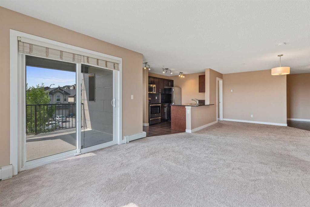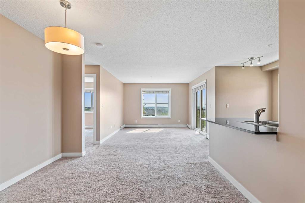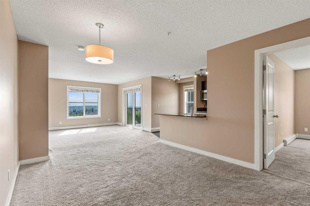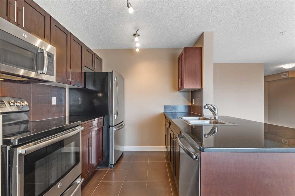 Welcome to this bright and spacious CORNER UNIT with a spectacular view in Kincora. Open concept layout with Living & dining room, kitchen, and office den. Large windows in Living room that brings tones of natural light fill in all corners of the house all year round. Chef’s dream LUXURY kitchen with upgraded GRANITE countertops, stainless steel appliances, Spacious cupboard space with upgraded soft-close cabinetry. Fresh paint throughout with upgraded raised baseboards. Large Master bedroom with walk through closet and a 4 pieces ensuite full bath. There is abundant space with 964 square feet of livable area including 2 bedrooms, 2 full bathrooms, In-suite laundry plus a HUGE covered patio with large sliding glass door direct access from Living room. One assigned under ground heated parking stall with many Visitor parking available. This third-floor corner unit is adjacent to only one other unit providing increased privacy and quietness with a breathtaking view of the hilly vista outside. Short distance walk to pathways, trails, ravines, bus stop and all other amenities; Creekside Shopping Centre, Co-op, Sage Hill Plaza, and Beacon Hill Centre. Easy access to downtown and the mountains via Stoney Trail & Deerfoot Trail. This surely a rare find beautiful & well kept Large Unit in one of the most convenient location in the north west. (id:22211)