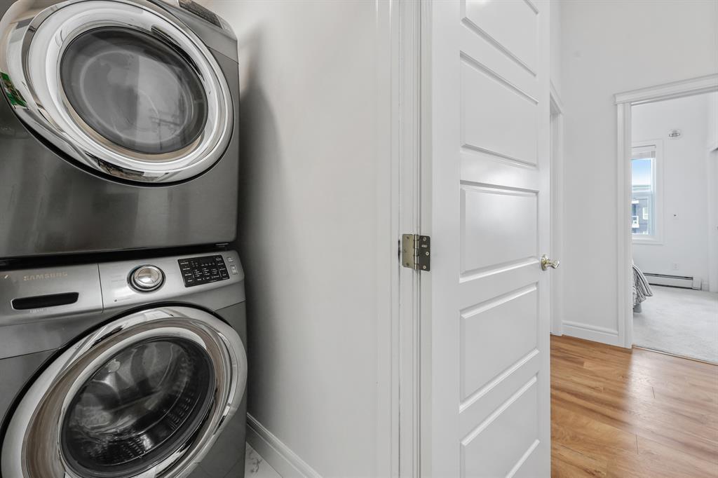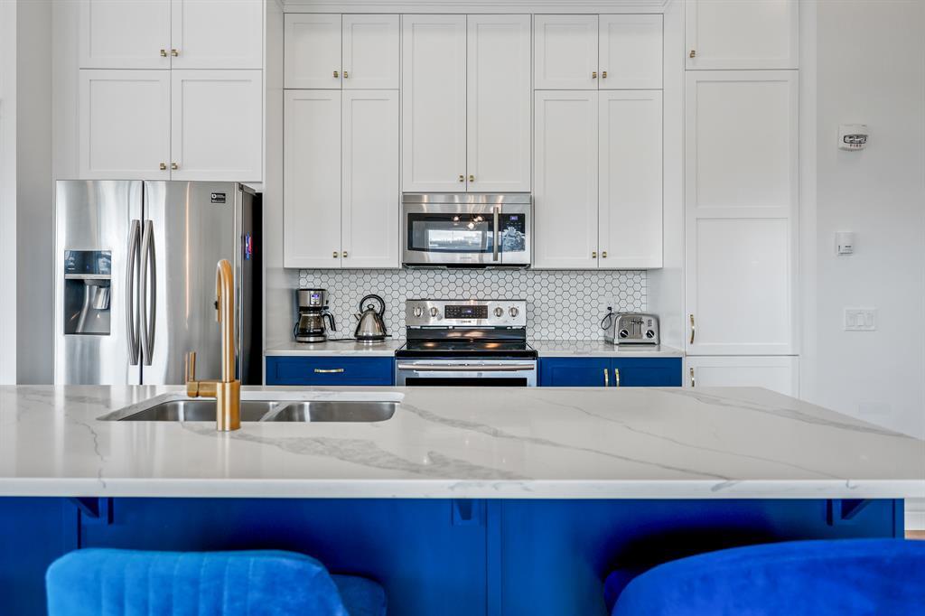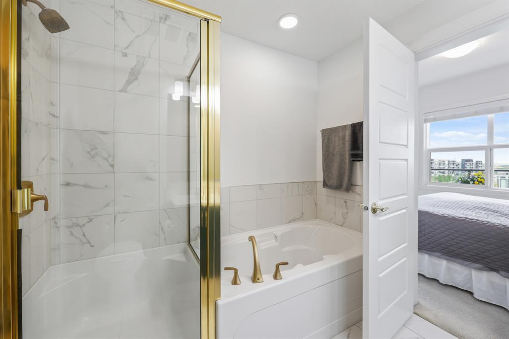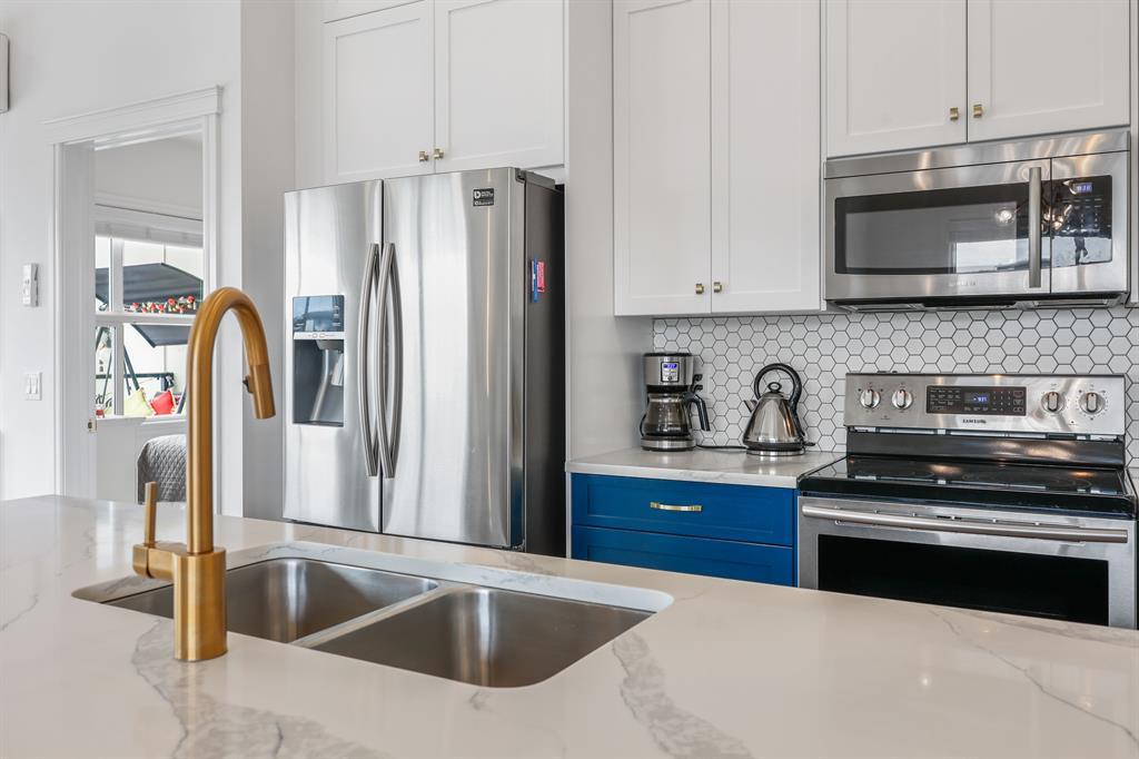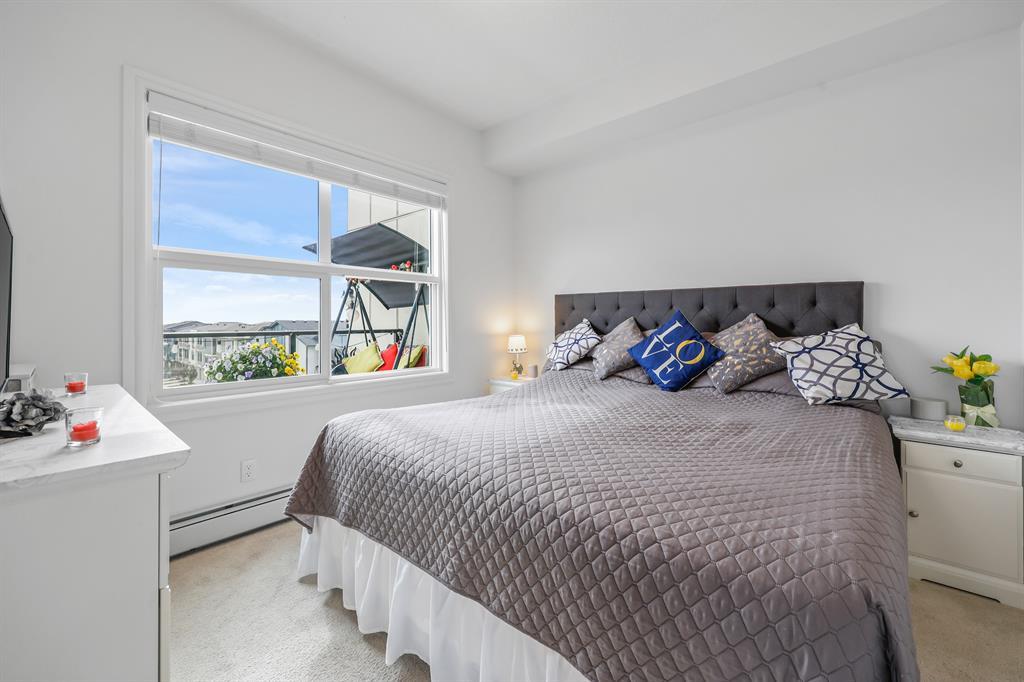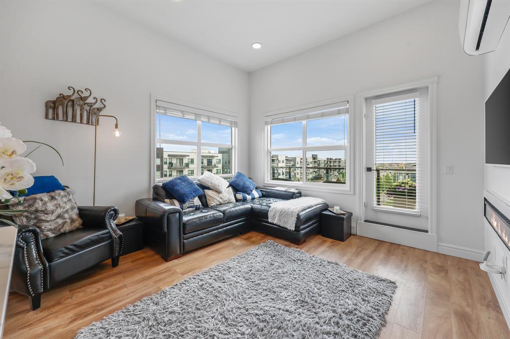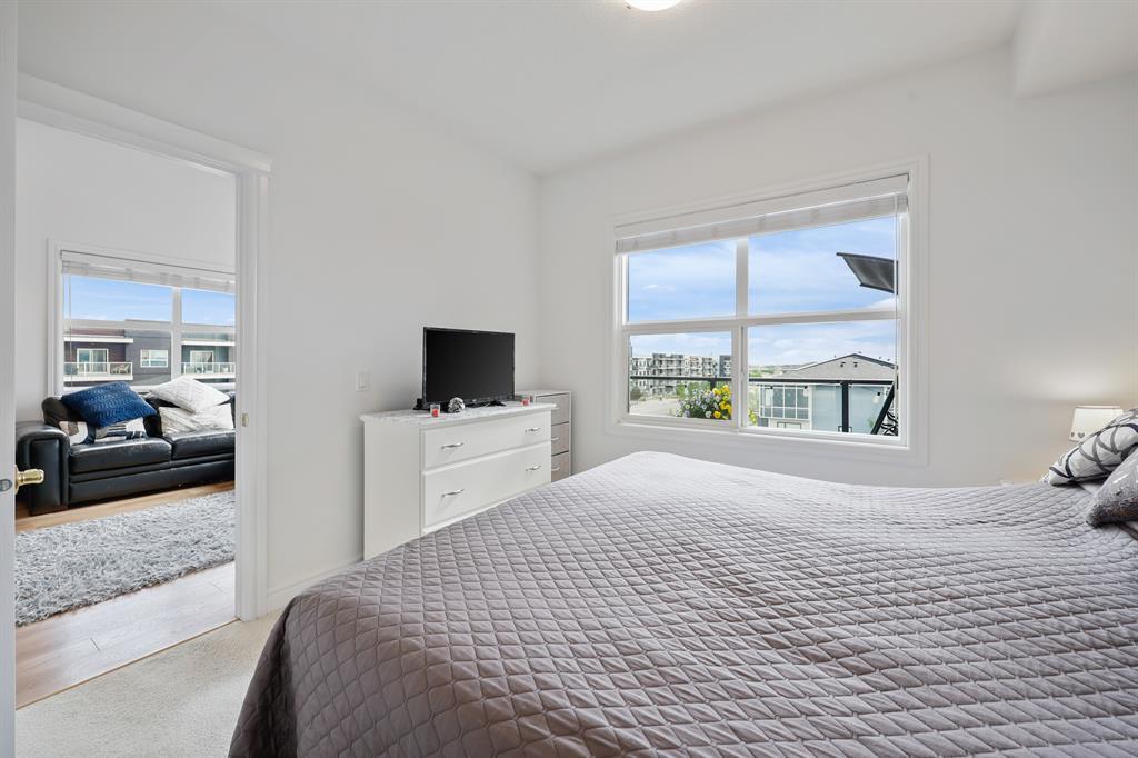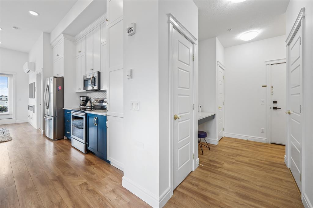 Experience the best of executive penthouse living in the heart of Seton. Prepare to be captivated by this remarkable top floor, corner unit, touched with luxurious finishes from the moment you step inside. 12ft ceilings extend the open living space and oversized windows provide natural light throughout. A sophisticated colour palette with bright whites and striking blue cabinetry, combines with upscale quartz counters throughout to highlight the quality craftsmanship of the original design.The fully equipped chef’s kitchen is provides a visual centre for the open living space. Highlighted by the generous quartz island, you’ll appreciate the custom hexagonal tile backsplash and full height cabinetry, including the built in pantry. Stainless steel appliances complete the high end focus of this space. A full dining area provides convenient entertainment space, fully open to the comfortable living room overlooking the largest patio available in the building.Enjoy the ambiance of the slimline electric wall fireplace on crisp fall evenings, while Central Air Conditioning and custom Hunter Douglas Blinds keep you comfortable during hot summer days. Step out onto the spacious 24'3" x 5'7" deck, complete with a Gas line for a BBQ, and create an additional outdoor living space for your enjoyment.High-end flooring is featured throughout, including beautifully tiled bathrooms and luxury textured laminate that is both aesthetically pleasing and easy to maintain. Both bedrooms feature upgraded carpeting for year round warmth and comfort.With 2 bedrooms and 2 full bathrooms, this executive condo offers the perfect retreat. The Master Suite features a spa-like 5 piece en suite, with a generous soaker tub, walk-in shower with exquisite ceiling-height tile, quartz tile flooring, dual vanities, and walk-in closet. The secondary bedroom offers a private entry to the 4 pc main bathroom, ensuring the utmost privacy for guests.Located minutes from the Seton Urban District, you’ll lov e the walkable convenience of a grocery store, VIP movie theatre, and not to mention a public library and the largest YMCA in the world. You’re also only a short walk to the South Health Campus and satellite medical facilities.Schedule your private tour today and envision your own penthouse lifestyle in the heart of Calgary’s newest urban community. (id:22211)