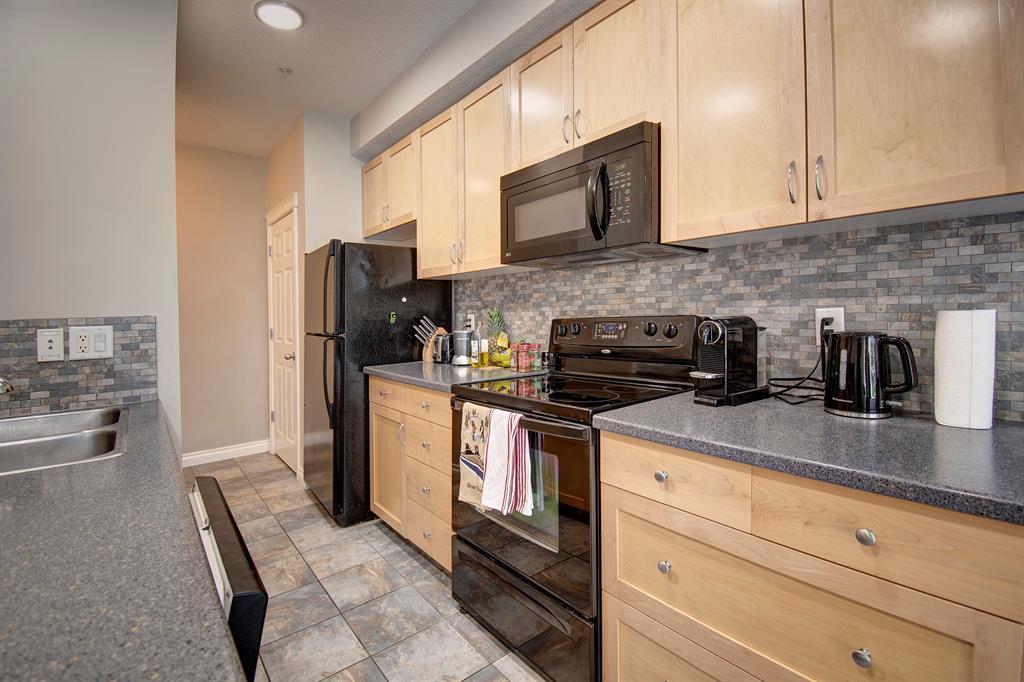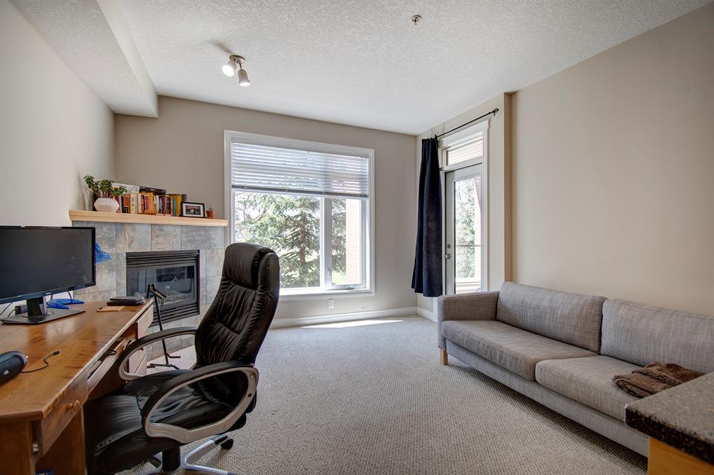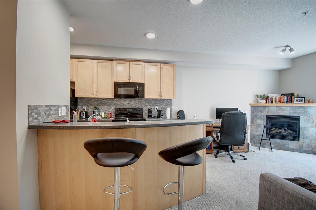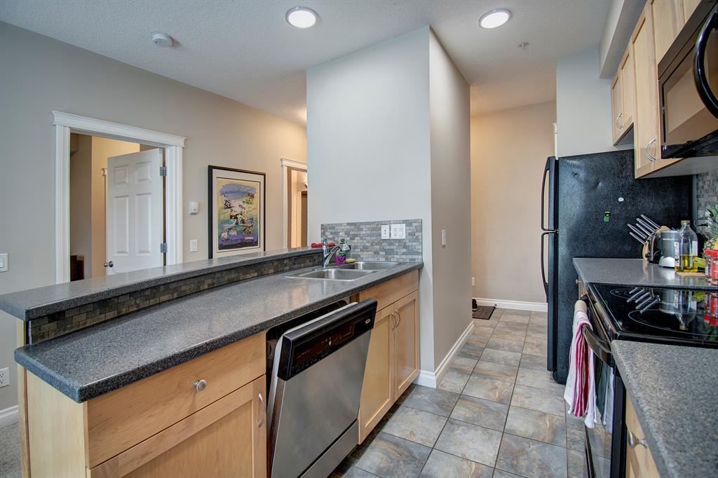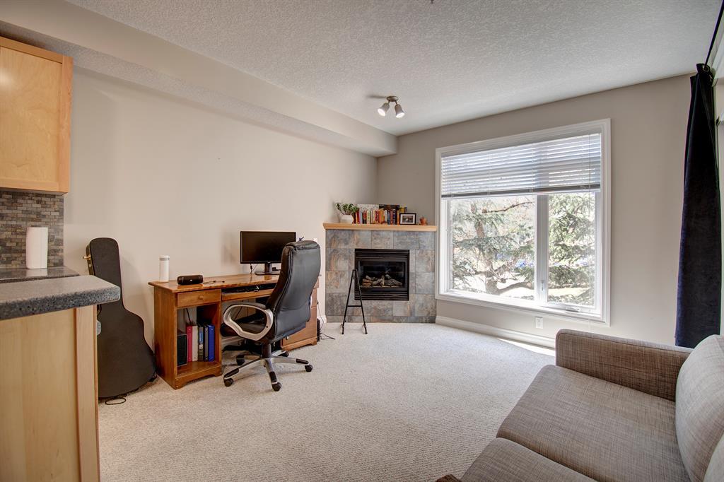 This beautiful, bright 1-bedroom condo is move-in-ready. Kitchen features corian countertops, curved breakfast bar, and brand new lighting. Spacious open-concept living room area with gas fireplace. Large walk-in closets in the bedroom, make it perfect for an individual or a couple. Situated in superb location of Spruce Cliff, offers direct access to Bow River Pathway system fast bike ride to Downtown. Just steps away from Shaganappi Golf Course, with cross country skiing in the winter and golfing in the summer is ideal for the active lifestyle. Walking distance to Westbrook LRT and shopping. Countless amenities are associated with this property: well-equipped fitness centre (accessible 24/7), party room and heated underground parking with titled parking stall, car wash, your own assigned storage locker, bike storage and a craft room. This property has so many advantages, it is a must see. (id:22211)