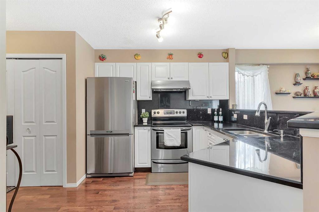 Welcome to your new home! This thoughtfully renovated END UNIT townhome embodies modern living with its DOUBLE ATTACHED GARAGE and FULLY FINISHED BASEMENT. Upon entry, the 17 ft airy ceilings at the main entrance create an inviting atmosphere, while ample windows fill the main floor with natural light, beautifully highlighting the hardwood floors that extend throughout both levels. The open concept seamlessly integrates the kitchen, living room, and dining room, crafting a comfortable space for relaxation and entertainment. The kitchen boasts STAINLESS STEEL APPLIANCES and granite countertops, a design element that continues throughout all the bathrooms. Upstairs, three well-sized bedrooms offer comfort, with the primary bedroom enjoying its own ensuite, while the other two bedrooms share a tastefully designed full bath.The fully finished basement introduces an additional living area and a practical bar space, offering various options for leisure and recreation. The fourth bedroom in the basement can be used as a bedroom or as a home office. With just over 1,900 square feet of living space, this townhome nestled in the desirable Citadel community offers convenient living, with St. Brigid School just a stroll away and Citadel Park School a short 3-minute drive. Noteworthy updates include a FURNACE REPLACEMENT in 2013 and a WATER HEATER REPLACEMENT in 2018. Revel in the ease of having Costco, Superstore, and a variety of amenities within a 10-minute radius. Your forever home is poised for you to make it uniquely yours! (id:22211)