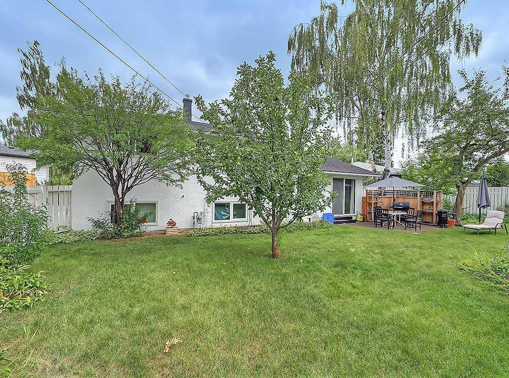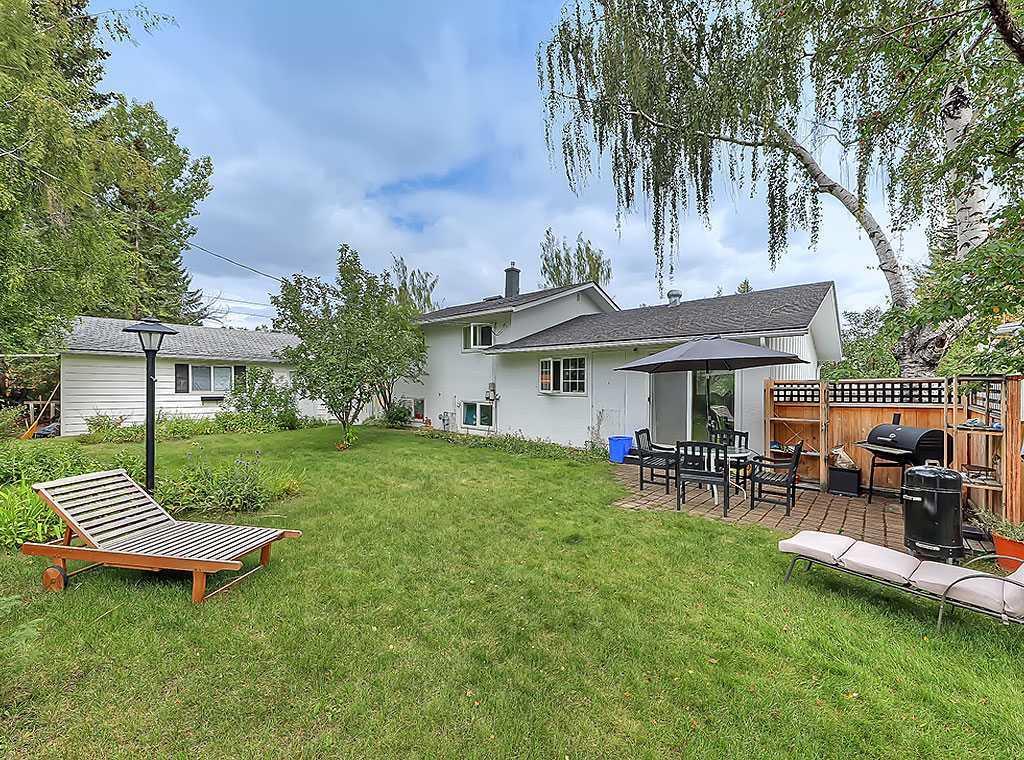 Located at the end of a CUL-DE-SAC, on a huge PIE LOT with fruit trees and WEST facing yard, this 3 bed + den home in Haysboro is close to shopping, schools, parks and public transit. The property has a DOUBLE DETACHED GARAGE and PRIVATE BACKYARD with mature trees and shrubs, and patio area. Inside, there is original hardwood flooring throughout the entry, living room and dining room. The kitchen overlooks the lush green yard and there is access to the patio via sliding glass doors off of the dining room. The upper level has 3 bedrooms and a 4-pc bathroom. Lower level has a bright family room with rolling barn door to access a den (currently being used as a bedroom). There is also a convenient laundry area with sink. Lots of STORAGE SPACE in the crawl space for all of your season items or sporting equipment. Don’t miss this opportunity, book your showing today! (id:22211)