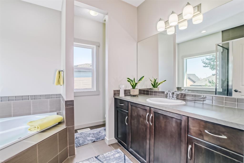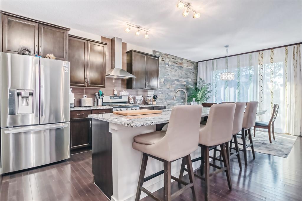 One of the best cul-de-sac location in Walden. You will be impressed with this 2 storey house on a pine-shaped lot and with fully finished walkout basement. This stunning home is loaded with tons of luxury upgrades, the house includes 5 bedrooms (3+2), 3.5 baths & an amazing upgraded kitchen with new Granit counter, sink and faucet. Ample large windows flood the bright main floor with natural sunlight. The large kitchen with nook open to the spacious family room with a fireplace. Main floor office for your "work from home" space. If you like be outside, there is the a huge deck. It is made from cedar and completed with HP Composite Decking Board. You can stay outside even on a bright sunny day as there is an awning for your pleasure. Heading upstairs, find the expansive bright master bedroom offering a 5 pc ensuite with a glass shower and a soaker tub - a wonderful retreat at the end of a long day. 2 additional bedrooms, a laundry, a full bathroom, and a bonus room complete the second floor. Did I mention 9 ft ceiling on the second floor as well? Home by Avi finished walkout basement with same diligence as the rest of the house. 2 additional bedrooms, family room and 4 ps bathroom complete this level. One of the bedrooms is used by owners as storage/second laundry. Family room was upgraded recently with New Vinyl flooring. On the backyard please check $50,000 stone work patio, pathway and steps. Many trees will completely cover your backyard for full privacy. Raspberry bushes will supply you with a lot of summer taste. Garden shed is for all your garden tools. Roof shingles -2022, siding of the house 2022, right side of the house gutters - 2022. Garage door paint- 2022, house tower shingles paint - 2022. (id:22211)