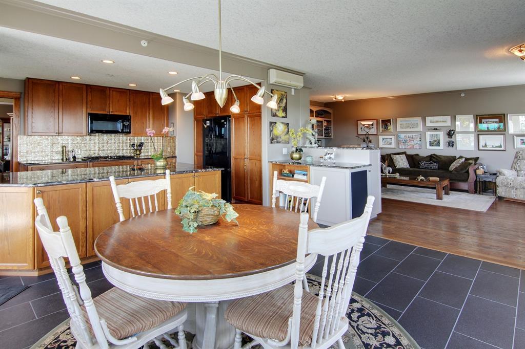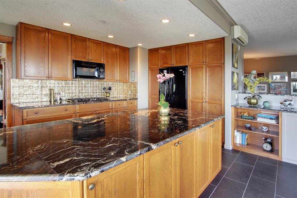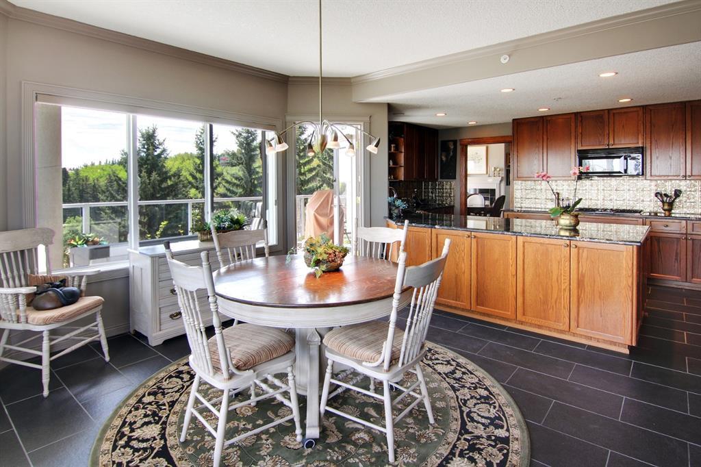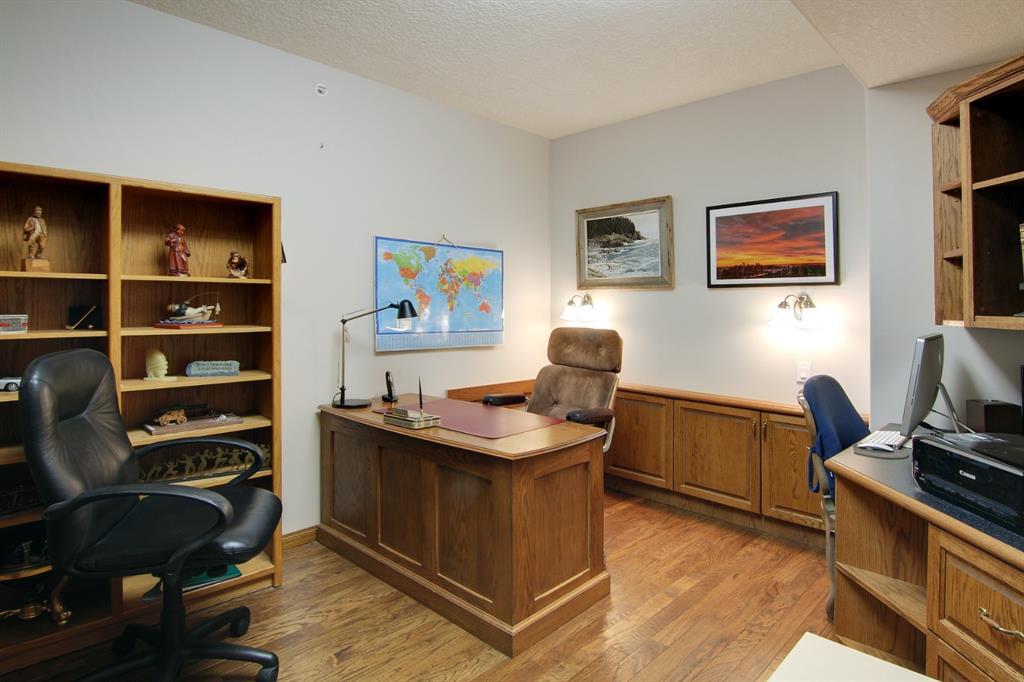 Welcome to this stunning and exceptionally large condo, offering ample space for you, your entertaining needs and dynamite downtown skyline views. We have 2557 sq ft of living areas which exude in natural light from ample windows and two spacious decks. The layout of this unit offers not one, but two living/family rooms - both with tile trimmed gas fireplaces. The kitchen set up is perfect to access either your dining room or your breakfast nook easily and conveniently. The master suite is complete with a very large walk in closet and five piece ensuite. Besides another bedroom and full bathroom, there is a private separate office. Also to complete the package, the laundry room has excellent storage space besides your own storage locker in the underground heated parking area. This unit comes to two parking stalls as well. The complex has a wonderful party room if needed for larger gatherings. This is truly a one of a kind unit with quick and easy access to downtown or shopping. (Heat and water included in the condo fees). (id:22211)