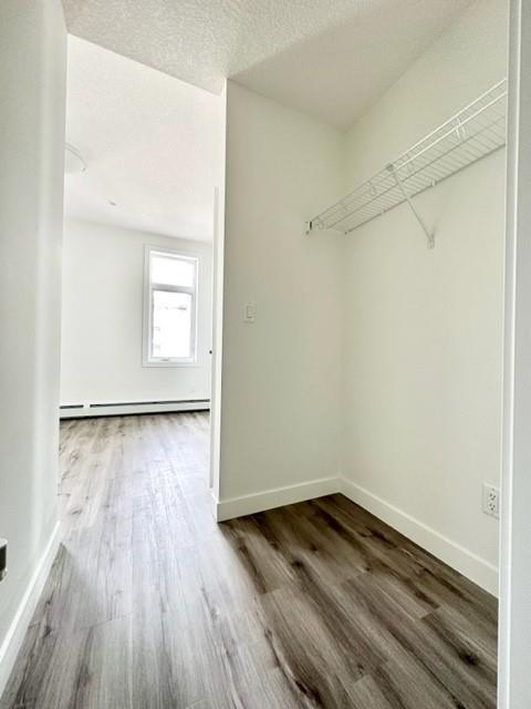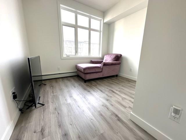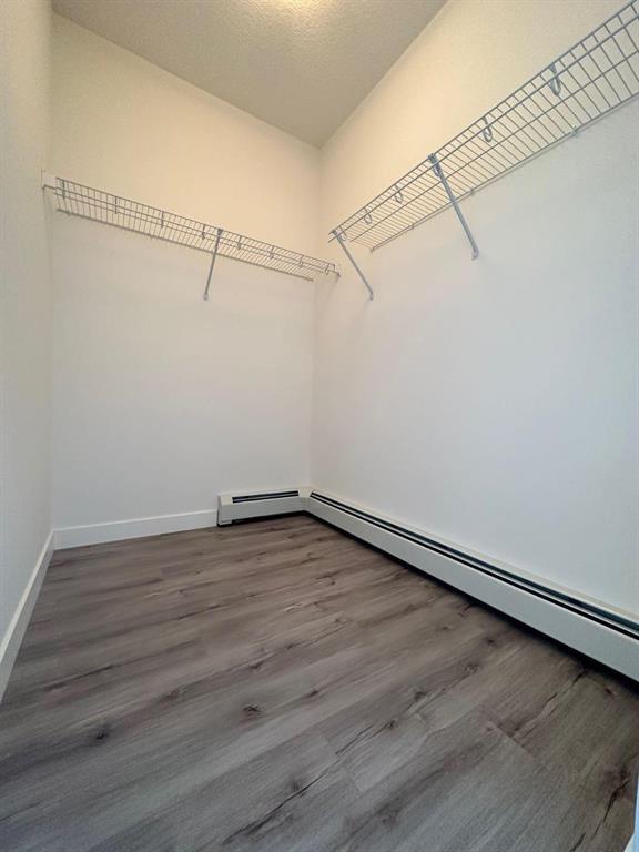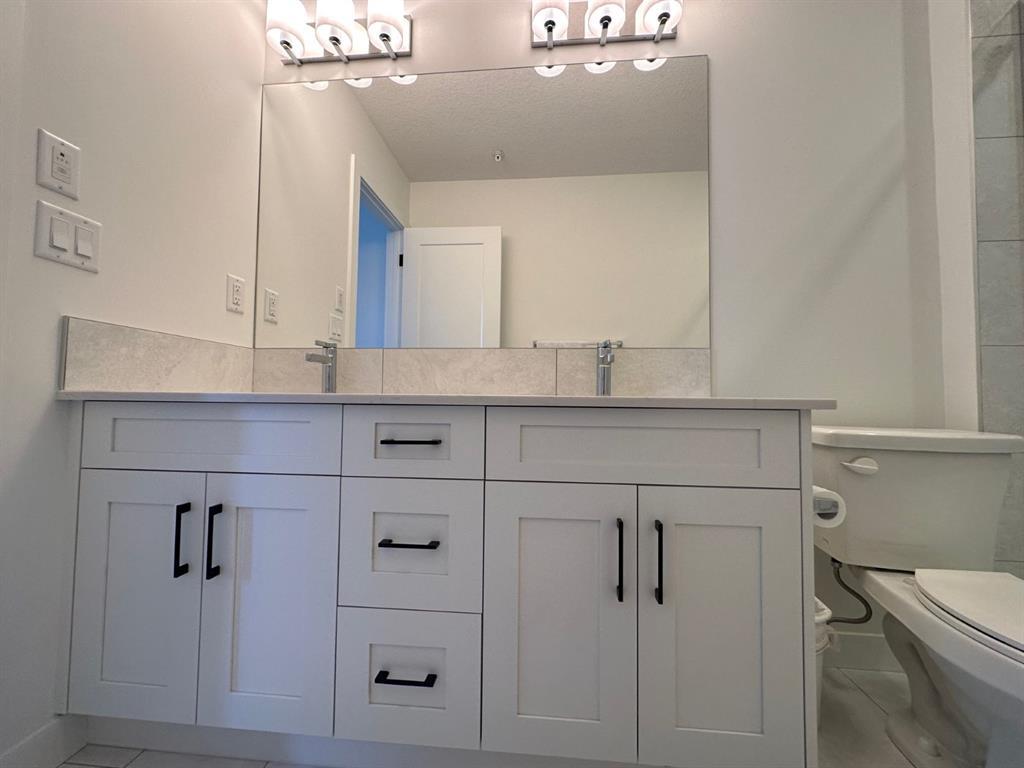 This newly built condo unit has 2 bedrooms, 2 full baths, in-suite laundry room, 9-foot ceilings, luxury vinyl plank flooring, large windows offering natural light throughout, open-concept floor plan, modern white finished kitchen, Quartz countertops, large central island, upgraded modern stainless steel appliances, chimney style range hood, high-end kitchen Shaker cabinetry package with soft-close doors and drawers, large pot drawers, spacious pantry, good-size dining area, East facing balcony with a gas line for the BBQ. The bedrooms are separated by a spacious living room for additional privacy. The primary bedroom is a spacious retreat with a good-size walk-in closet, an ensuite bathroom with full-height tiles in the ensuite shower, tile flooring, ceramic tile backsplash, Quartz countertops, dual sinks, and an additional closet. Other extras include a raised power outlet package for a wall-mounted TV in the living room, upgraded lighting fixtures, and a wall-mounted AIR CONDITIONER to keep you comfortable during hot Summer days. This unit is measured at 885 Sq Ft by the builder. It also comes with a fresh air in-take system, 1 titled underground heated parking stall and 1 assigned storage cage. Both of these are located very close to the elevator and stairs. This condo complex is conveniently located within walking distance to the Real Canadian Superstore, Save-On-Foods, Cinemas, various restaurants and pubs, Tim Hortons, South Health Hospital, the largest YMCA, library, school, playground, dog park, and future LRT Green line. Easy access to Deerfoot Trail and Stoney Trail. The remaining coverage under Alberta New Home Warranty is transferable. Quick possession is negotiable. (id:22211)
