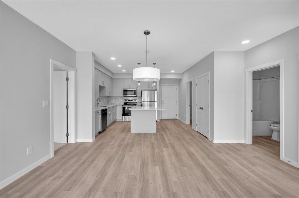 Welcome to BRAND NEW 2023 BUILT having SOUTH BALCONY UNIT (Builder Size: 1050 SqFt) WITH Bright & Modern OPEN CONCEPT FLOOR PLAN + 2 LARGE BEDROOMS Including MASTER BR WITH ENSUITE & WALK IN CLOSET + 2 FULL WASHROOMS + DEN/OFFICE + UNDERGROUND TITLED HEATED PARKING (247) & STORAGE (325) + TONS OF UPGRADES & WINDOWS + PRIME LOCATION + FEW MINUTES FROM TRANSIT & COMMERCIAL + LOW CONDO FEES Includes Water, Gas, Garbage + Most Important INCREDIBLE Price. The unit has PLENTY OF UPGRADES including high end cabinetry, Quartz counter tops, Luxury Vinyl Plank Flooring, Decora Switches, Extended Kitchen, SS appliances, Island, upgraded lighting and plumbing fixtures. Few minutes drive to all AMENITIES including Fish Creek LRT Station, Fish Creek Park, Playgrounds, Schools and many more amenities in the developed community of Shawnee Slopes SW. DON’T MISS 3D TOUR. BUY TODAY FOR LIVING OR GREAT INVESTMENT..!! Call now..!! (id:22211)