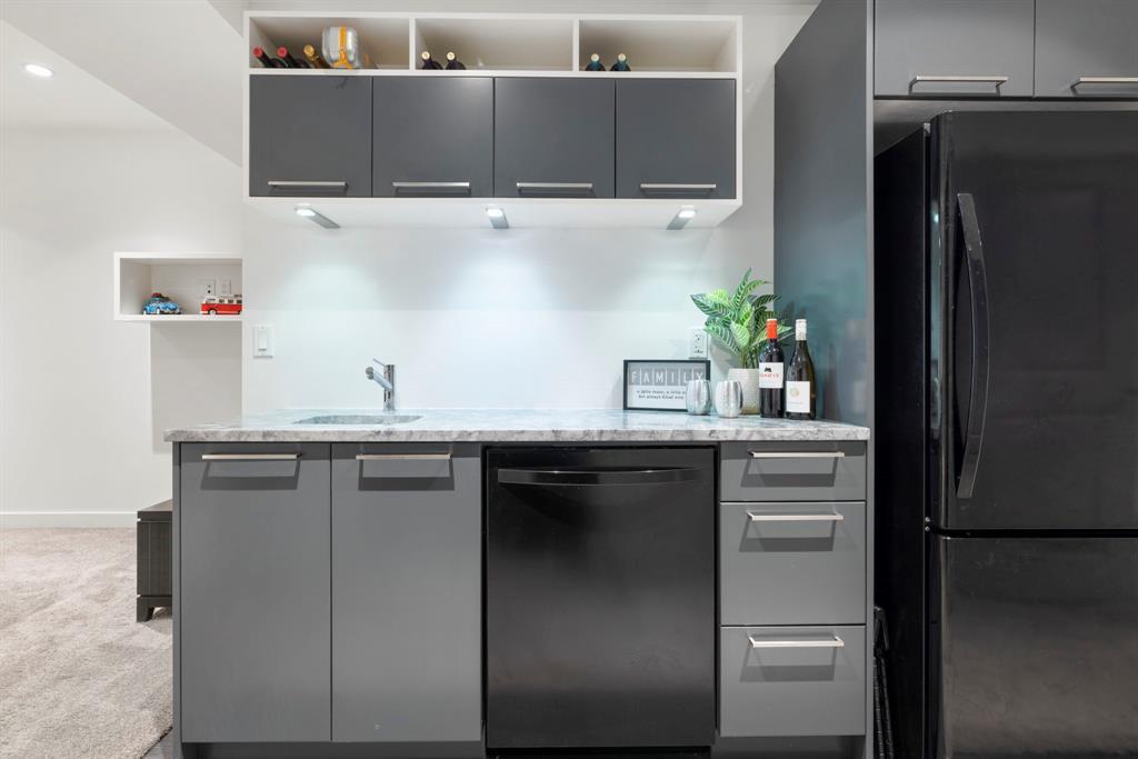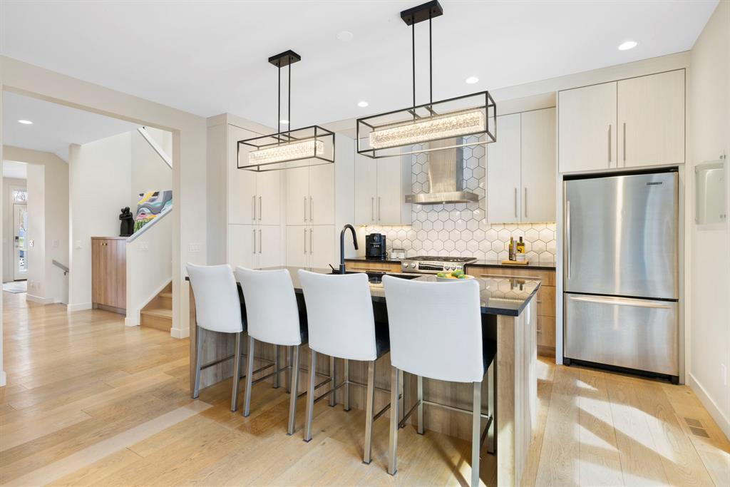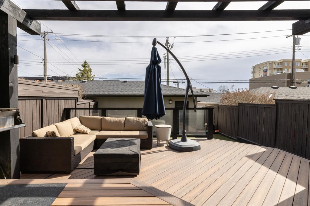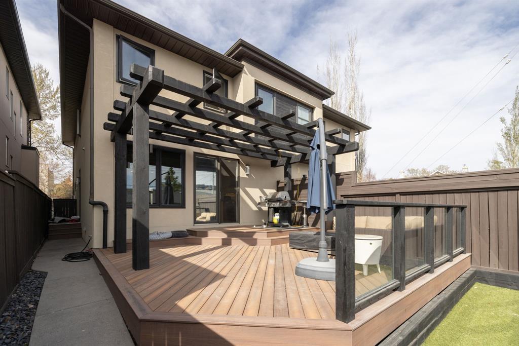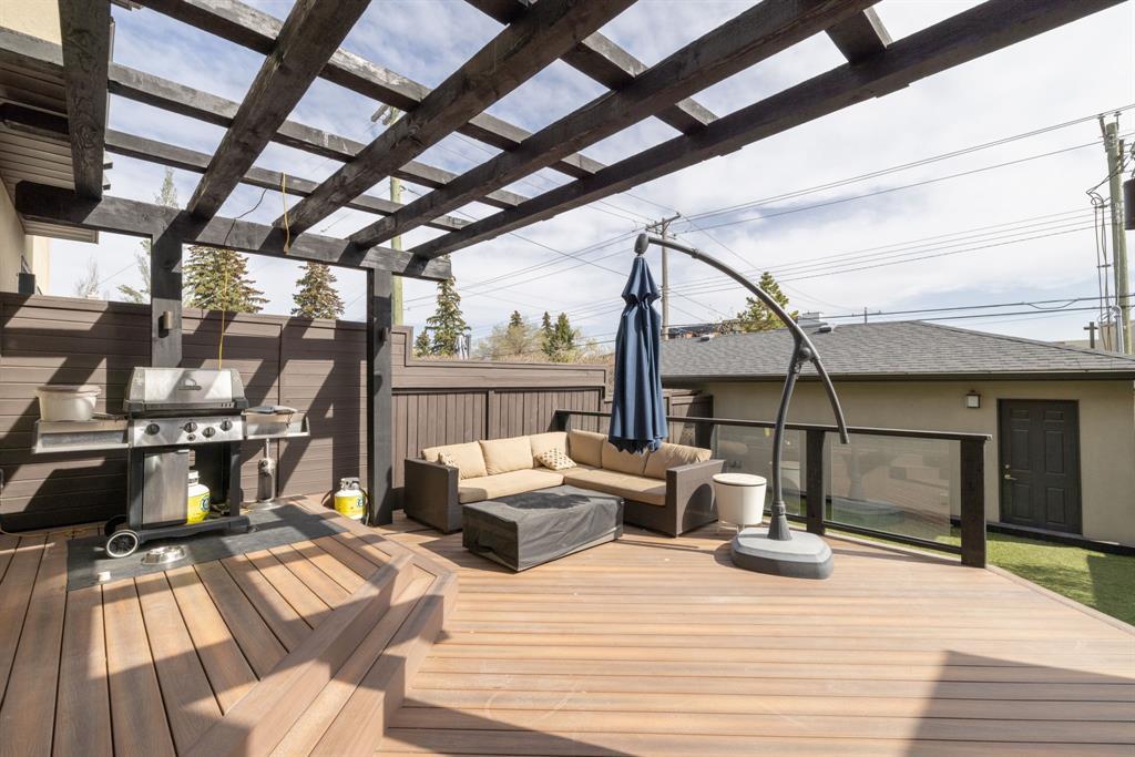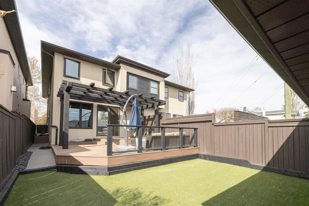 Located on a mature street with the lifestyle Marda Loop offers, within a very short walk, this thoughtfully designed and updated home offers a great floor plan with spacious rooms throughout. Large windows provide an abundance of light from the front through to the rear of the home and help to highlight the features throughout. A large foyer provides a comfortable space to welcome guests and invite them into the stylish living room area with fireplace and built ins. The renovated kitchen and adjacent dining area offer a fantastic space to unite as a family or entertain guests. Take note of the abundant built ins and storage provided. Move in just in time to enjoy late summer and fall through the seamless transition into the south rear yard which is beautifully designed for comfort, privacy and convenience (all season grass means no lawn to cut back here!) A side entrance with huge foyer is awesome for busy families or those with pets. A lovely powder room is tucked away for privacy. The light filled hallway invites you upstairs to 3 well sized bedrooms, including a large principal suite with an abundance of closet space and sparkling updated ensuite with double vanity and separate glass shower. The additional bedrooms and full bath are nicely separated from the principal suite. The laundry room is conveniently located on the upper floor between the bedrooms. The lower level of the home offers great spaces to work from home, relaxing and entertaining. A recreation room and family room with beautiful bathroom are married together with a built in bar. There is potential to add a 4th bedroom on this level. The backyard has been designed for complete relaxation - step out from the kitchen onto a nicely sized deck with pergola. Easy access to the detached garage. An abundance of choice exists within a short walk; fitness studios, boutiques, grocers, and a variety of restaurants are all within walking distance to this incredible home. (id:22211)