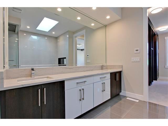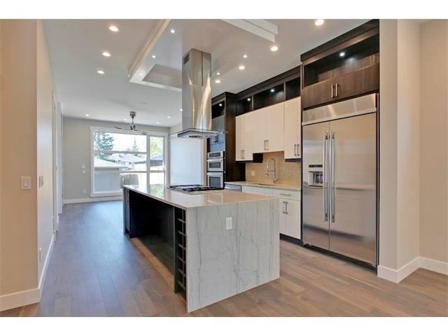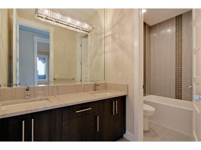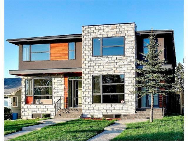 Welcome to one of the most Exclusive High End Neighbourhoods in Calgary. This custom built 2-storey luxury infill sets the bar high with many rare features such as: 139 ft (south facing) deep lot, over 3200+sqft of developed living space, 9ft and 10ft flat ceilings, 4 oversized bedrooms, 3 gas fire places, a Master ensuite bathroom with both a Steam Shower and a Soaker Tub, a Home Entertainment System Pre-wired for sound and a full Wet-bar in the media room, just steps from the park and minuets to downtown. Throughout the home you will find two tone Custom Cabinets, beautiful Quartz counters, Stainless Steel Jenn Air Appliance package, Hardwood flooring and custom closet organizers in the impressive walk-in closets. This home is a must see and the location is unbeatable. (id:22211)
