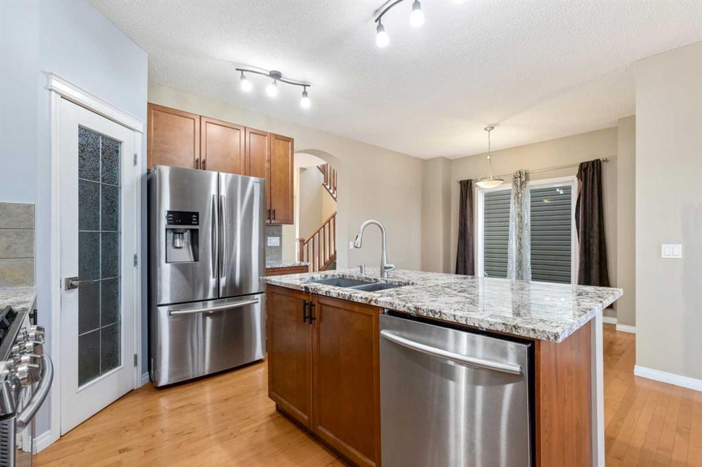 Beautiful 3 Bed, 2.5 Bath, 1662 square feet Detached Home with a large Double Garage and Amazing Features in the Vibrant Community of Evanston! Welcome to your dream home nestled in the highly sought-after community of Evanston. This stunning and spacious detached home boasts an impressive list of features that will surely capture your heart. From the charming front porch to the expansive deck, this property offers everything you need for a comfortable and luxurious living. Step inside and be amazed by the bright and open floor plan, perfectly designed for modern living. The elegant kitchen is a chef's delight, featuring sleek stainless steel appliances that effortlessly blend style and functionality. The stone countertops add a touch of sophistication, while ample cabinet space and pantry ensures all your storage needs are met. The main floor also offers an office/den area, providing the perfect space for remote work or a quiet retreat for reading and studying. The living and dining areas are adorned with large windows, allowing natural light to fill the rooms and creating an inviting ambiance throughout. The upstairs level boasts 3 bright bedrooms and loft, including a master suite with its own ensuite bathroom and a convenient walk-in closet, providing ample storage space for all your needs. The basement is ready for your creative touch, featuring egress windows that offer natural light, and the potential for endless possibilities. Stay comfortable year-round with the included air conditioning unit. Amenities include Shopping, Schools, Parks/playgrounds, access to major roads, Amazing location, and much more. Book a showing! (id:22211)