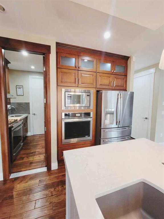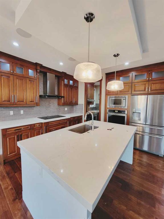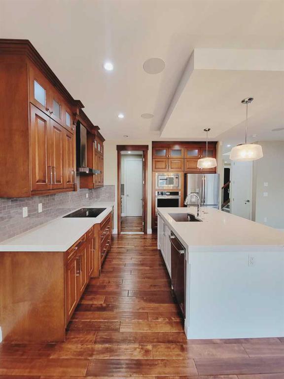 Located in Popular in Nolan Hill! This Home has been Custom Built featuring Pride of Ownership with loads of Upgrades. Including the following – Executive Custom Kitchen Cabinets with Built in Jennair Appliances, A Butler’s Spice Kitchen as well. If you look at the materials and workmanship this home is second to none. Main Floor Features a Kitchen with Island, Extra wide profile Counters, Chimney Hood, Drop Down Lights on Island, Gleaming Hardwood Floors, Family Room with Fireplace with Tile Surround and Custom Built in Shelfing. Gas Stove, Maple and Iron Spindle Railing, Main Floor Office with double Doors. Half Bath and Open Floor Plan. Upper Floor has a Humongous Bonus Room with Vaulted Ceilings and Built in Entertainment Unit. The very Spacious Primary Bedroom has Tray Ceilings Built in Sound speakers, Walkin Closet with Custom Shelves, The Ensuite is also like a dream with a Custom Shower, Double Vanity, A Soaker Tub and water Closet. The additional Two Bedrooms are also very spacious. The Laundry Room with Sink Completes the upper floor. Now let me introduce you to the glamorous walkout basement which is an entertainer’s dream. Featuring a Large Entertainment Room with Built in speakers, recessed lighting, built in entertainment center, wow it also has a custom wet bar for your convenience with a bar fridge and a dishwasher. A gracious sized bedroom, A Full 3 pc Bath with custom shower and a nice cover patio. So many upgrades that I must say come and have a look in person. This is the home for you. Call for your private viewing today. (id:22211)