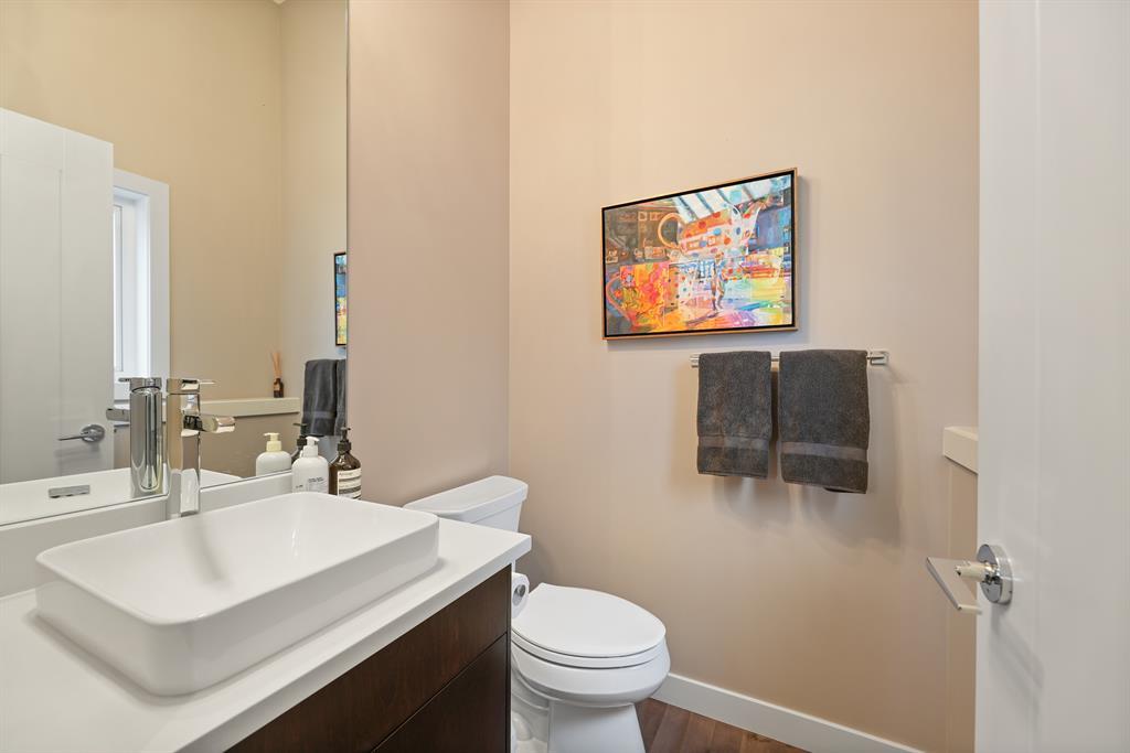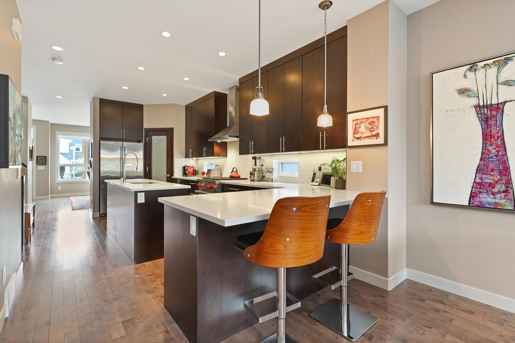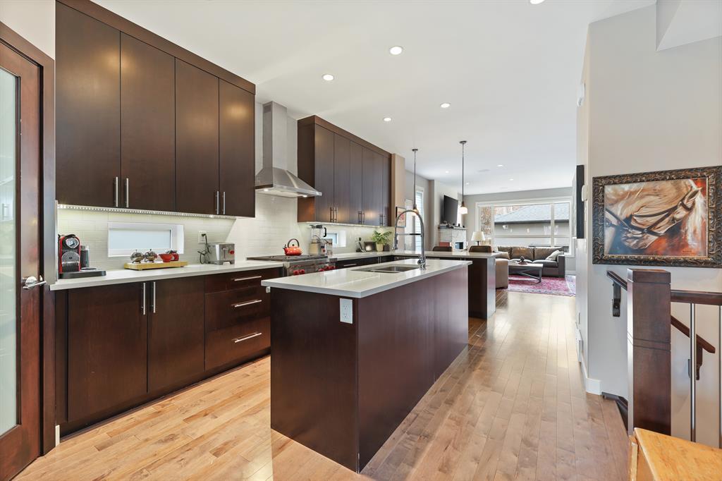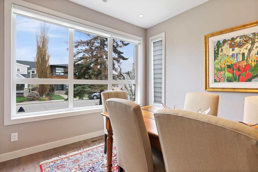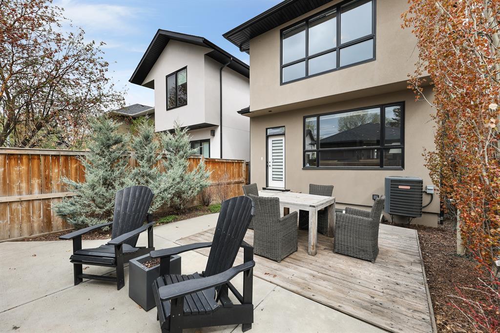 Located in Altadore, within walking distance to the shops and restaurants of Marda Loop, as well as schools, parks, and more, this beautiful home offers over 2,800 sq.ft of total living space. As you step inside, you'll immediately notice the quality construction and attention to detail throughout. The high flat ceilings, rounded drywall corners, triple hinge doors, and large industrial-sealed windows fill the home with bright natural light.The oak hardwood floors flow seamlessly from the formal dining room into the open concept kitchen. The spacious kitchen boasts Quartz countertops, a subway tile backsplash, a large pantry, ample cabinetry, and high-end appliances, including a Wolf gas/induction range, Miele dishwasher, and Dacor double refrigerator. Whether you're entertaining family and friends in the living room around the gas fireplace or taking the party outside to the outdoor patio with its own outdoor gas fireplace, this home is perfect for hosting gatherings.Make your way upstairs, illuminated by skylights, where you'll find three bedrooms and the laundry room. The master bedroom is a tranquil retreat with vaulted ceilings, large south-facing windows, and a double-sided fireplace shared with the luxurious ensuite bath, featuring a deep soaking tub and oversized shower. And let's not forget the walk-in closet, providing ample storage space.The lower level, equipped with in-floor heating and high ceilings, offers a recreation/media room with a built-in audio system and wine bar. Additionally, there is a fourth bedroom, a full bath, and plenty of storage space to accommodate all your needs. Dimmable pot lights throughout the house, central AC, high-end window coverings, including blackout blinds in the bedrooms, and a finished heated garage with metal lockers and shelving are just a few more notable features of this remarkable home. (id:22211)