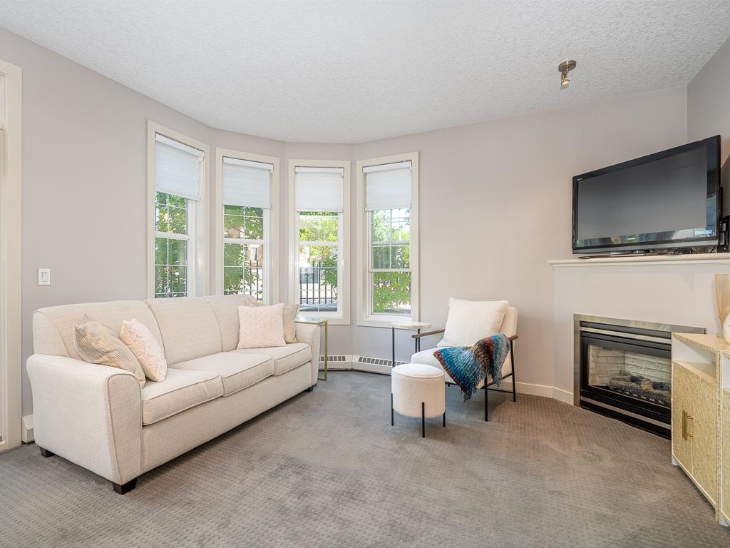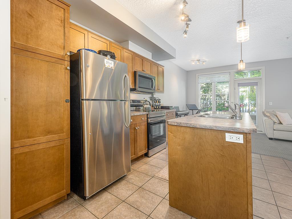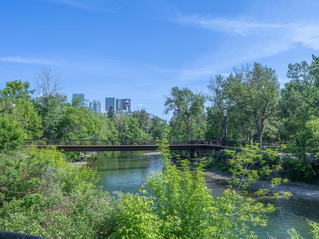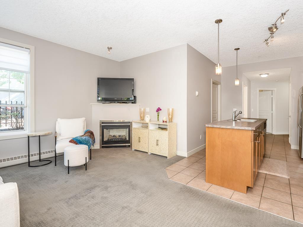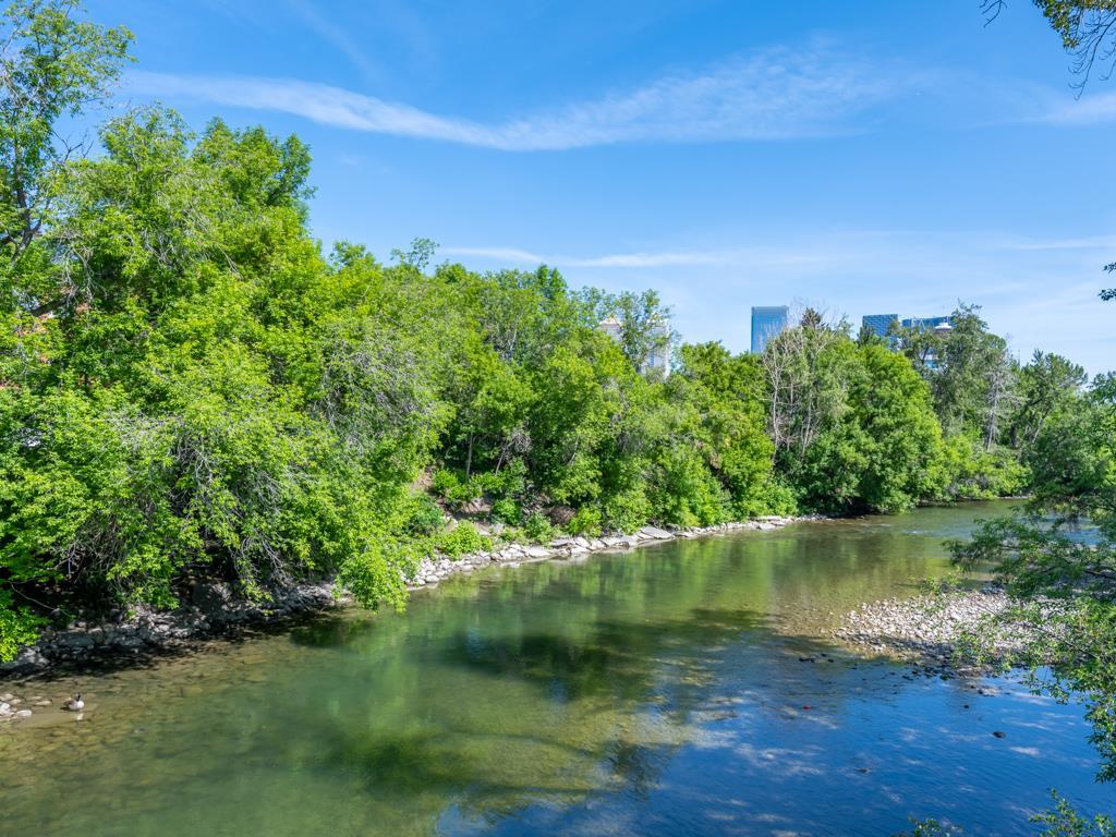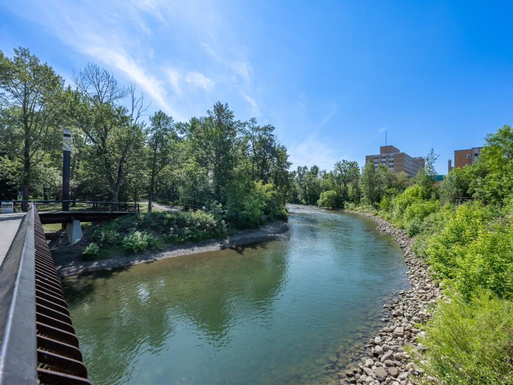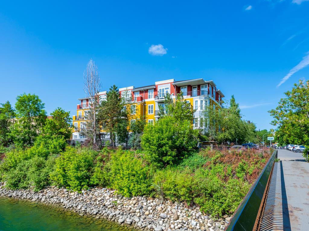 Fantastic ONE BEDROOM AND A DEN (OR SECOND BEDROOM) CORNER UNIT with TWO BATHROOMS and TITLED UNDERGROUND parking stall in the sought-after Elements of Mission building perched on the banks of the Elbow River. This amazing location is only blocks from the downtown core, steps from the trendy restaurants and shops found along both 4 Street and 17 Avenue and only moments from schools and parks. The river and its pathways are at your doorstep and a footbridge affords easy access to Lindsay Park and the MNP Community and Sports Center, truly the ultimate location. The unit offers flexibility with access from within the building or direct access from the street via a spacious west-facing private wrap-around patio which is ideal for entertaining or relaxing. The open-concept floor plan boasts a spacious living room with large windows allowing for loads of natural light and is accented by a corner gas fireplace. The adjacent dining room or flex space leads to the kitchen. The kitchen showcases stainless steel appliances, tiled floor and an island. The primary bedroom has both a walk-in closet and a four-piece ensuite bathroom. The den or second bedroom sits next to the second bathroom. The unit offers 9ft ceilings, in-suite laundry and a large in-suite storage room. One of the largest floorplans in the building and in fantastic condition, a fabulous unit in the ultimate location. (id:22211)