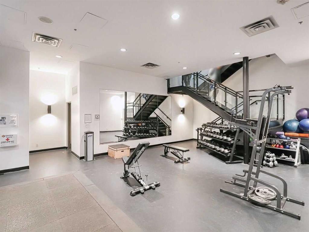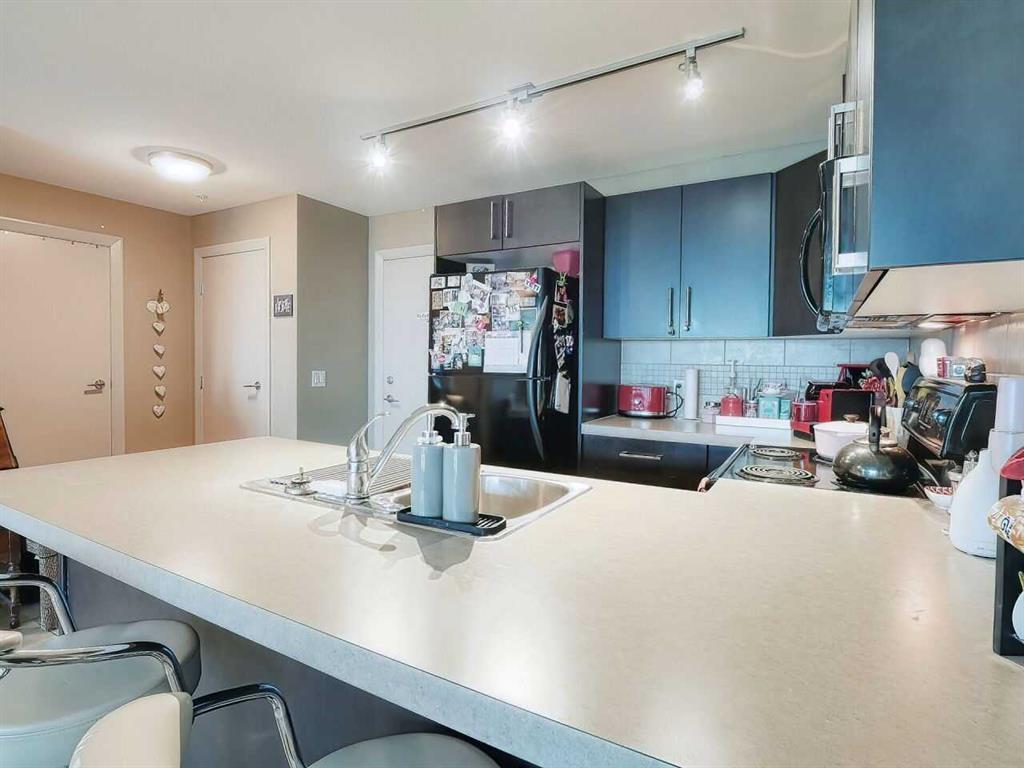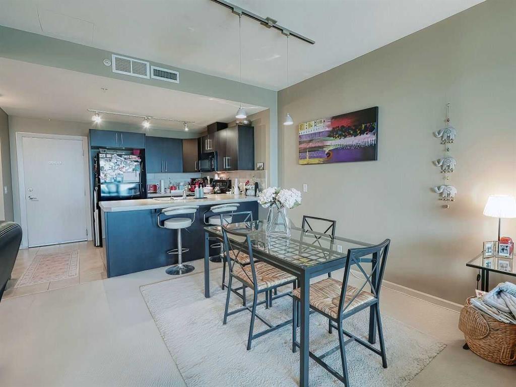 Downtown Condo Life at its best with the Beautiful Vetro located in the very Desirable Beltline! This Condo Complex has a full gym and workout area, plus Hot Tub & Spa. Great Party Room with pool table & not to mention a Theatre Room to watch your favorite flicks or Sporting Event. The East Village has an ongoing great revitalization plan and with the new Arena now approved; it will only get better from here. Live here & you’ll have it All. You will be close to Lindsay Park, which includes the MNP Community & Sport Centre. For Entertainment, there is the Elbow River & Cowboys Casino Restaurants, Theatre Calgary, National Music Centre, The Calgary Tower, coffee shops, parks, & the Bow & Elbow River are all within easy walking distance. You will be able to take advantage of Calgary’s Great Bike Lane & Cycle Paths. Public Transit is only steps away. Let us talk about this fantastic & roomy one bedroom & one bath condo, which is great for the childfree lifestyle. The open floor plan has a great layout where there’s plenty of room for a dining table and nice living room furniture. The spacious U shaped kitchen has plenty of room for those who like to cook. Large Bedroom that can easily accommodate a King Size Bed & there is a Large walk-in Closet. THERE IS CENTRAL A/C! That will help with getting a good night’s sleep on those hot summer nights. Great space for a desk for those who maybe working from home. The panoramic views from the balcony, include Stampede Park South Calgary & the Mountains, which are breathtaking & stunning. The Balcony also has Natural Gas and the BBQ is included! Secure underground parking with bike rack, which is, just steps away from the elevator. There is a separate storage locker as well. It's All Here. Don't miss out on this one! (id:22211)