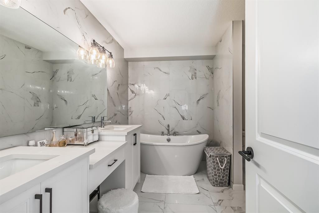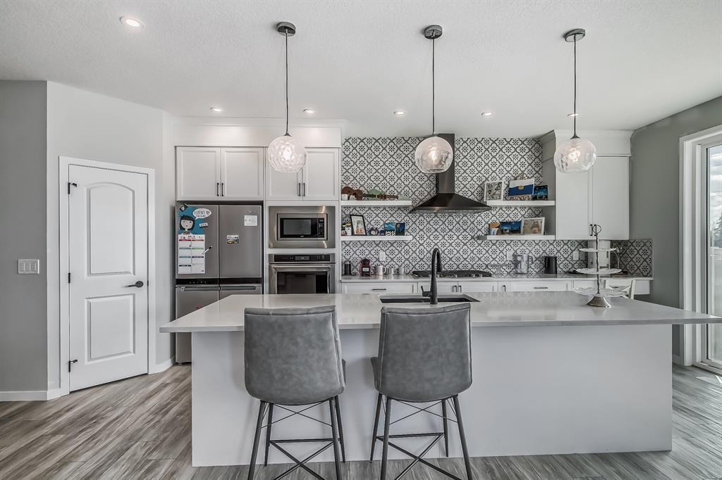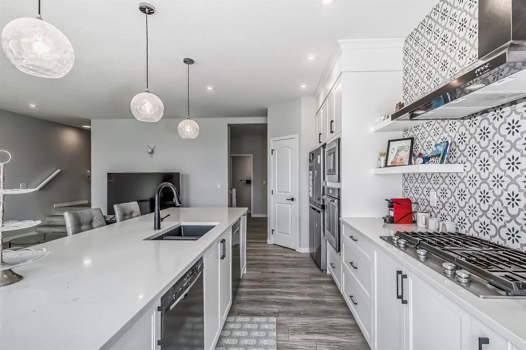 Built in 2022 |OVER 2000 SQFT |NEW HOME WARRANTY | Basement fully developed|South face Yard| Amazing and functional family home built by Cedarglen Homes in West Springs, As you enter the home you will be greeted beautiful luxury vinyl plank flooring! Views across the spacious main floor with tons of nature sunshine from the south facing yard, living room with large windows, The open-concept kitchen, living room, and island continue the home’s spacious atmosphere a fully upgraded kitchen that features cabinetry, a corner pantry, an oversized central island w/ designer pendant lights, and a gas cooktop set against an eye-catching full-height tile backsplash and 2ea dish washers. The upper floor consists of an oversized bright bonus room with french door, could be your office, game room or home theatre . A beautiful primary suite with a lovely 5-pc ensuite, another 2 decent size secondary bedrooms, a modern 4-pc guest bathroom, and fully equipped laundry room. A fully finished basement add a bed room , a 4-piece bathroom and recreation room for your family to spread out. Do not miss a Charging pile in the double car garage. You can easily to access West Spring schools , French International school, St Joan of Arc school. It’s easy to access new west ring road (part of the Stony trail) downtown or Banff & Canmore . Do not forget the new home Warranty as well!!! Please book you private showings!!! (id:22211)