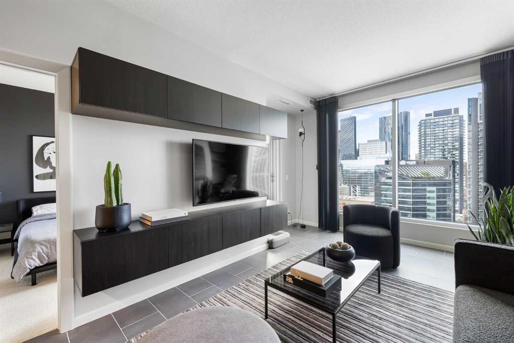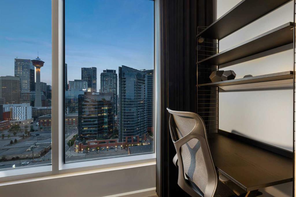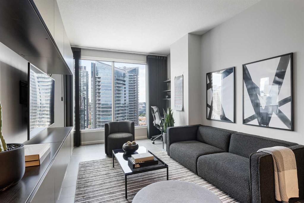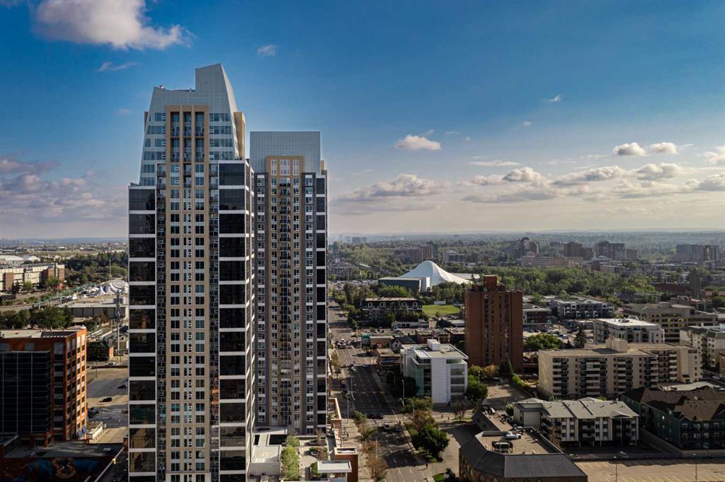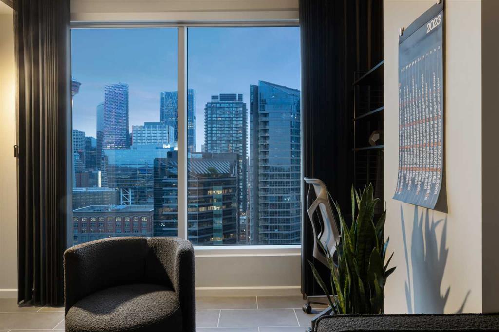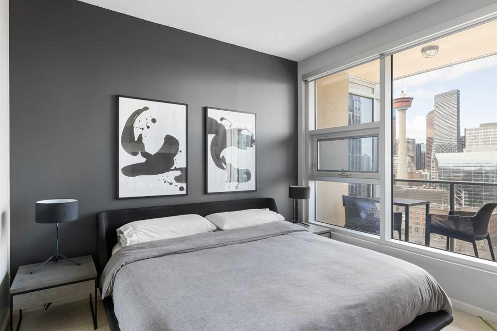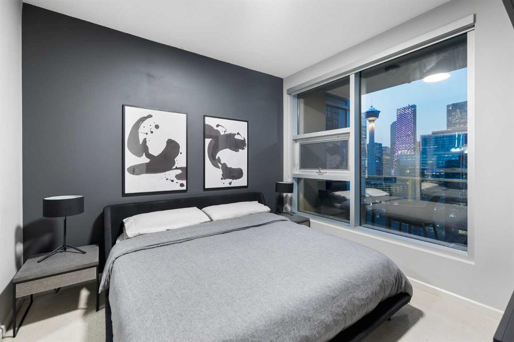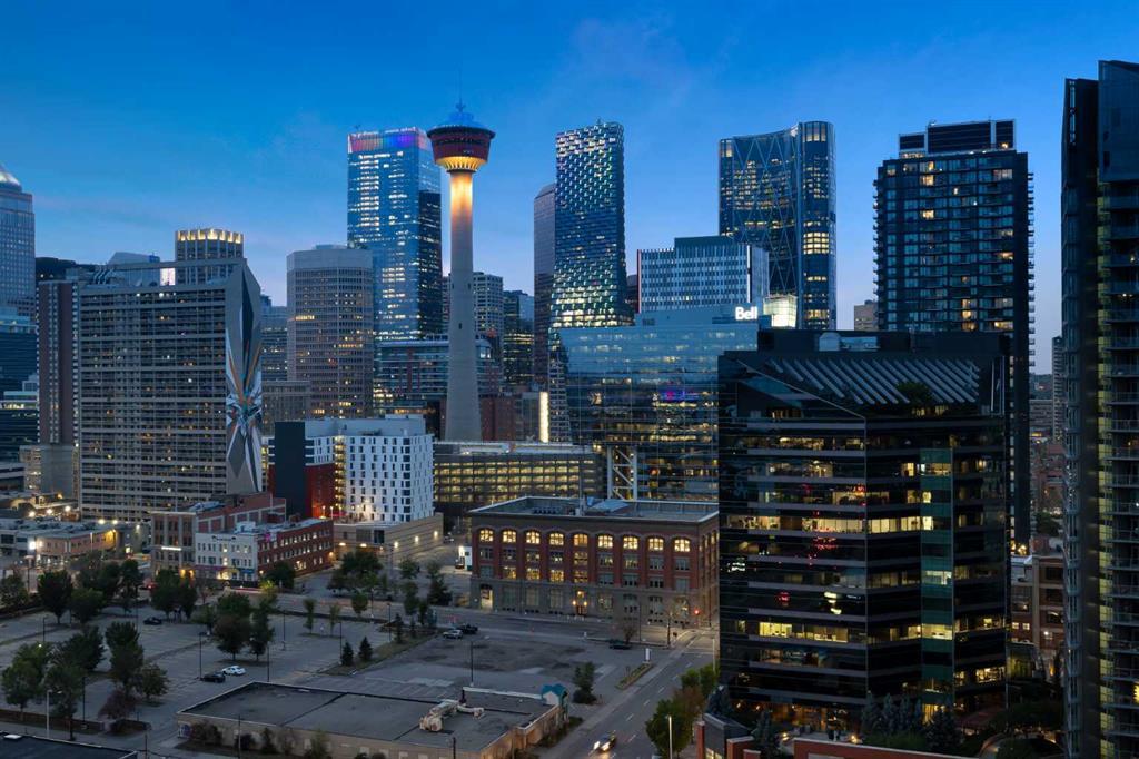 Experience urban living at its finest in the prestigious Nuera building located in the heart of Calgary's vibrant Beltline neighborhood. This meticulously designed 1 bed, 1 bath unit offers more than just a home; it's a lifestyle. Enjoy unobstructed panoramic views of downtown Calgary, including iconic landmarks like the Calgary Tower and the Telus Sky building, right from your private balcony. Step inside and be greeted by the sleek modern aesthetic, highlighted by custom drapery, 9-foot ceilings, and floor-to-ceiling windows that flood the space with natural light. The open-concept layout seamlessly blends style and functionality, creating the perfect space for relaxation and entertainment. Designed for adult living, the Nuera building offers an array of amenities, including a well-equipped gym, a party room for social gatherings, and convenient bike storage. With a titled parking stall and an additional storage unit, practicality is at the forefront. Elevate your lifestyle in this contemporary oasis that captures the essence of urban elegance. Embrace the convenience of living minutes away from the city's finest dining, entertainment, and shopping destinations while enjoying the tranquility of your modern retreat. Don't miss the opportunity to make this Nuera unit your own – where breathtaking views and sophisticated living converge seamlessly. Contact us today for a private showing (id:22211)