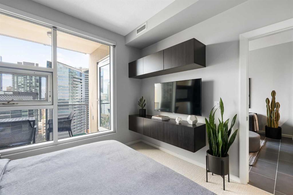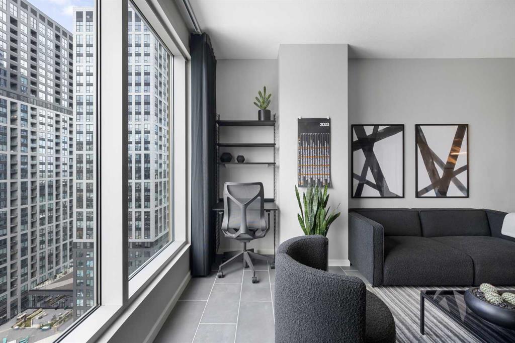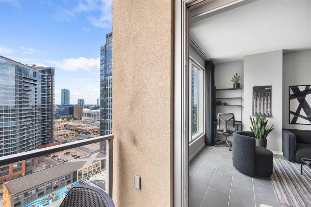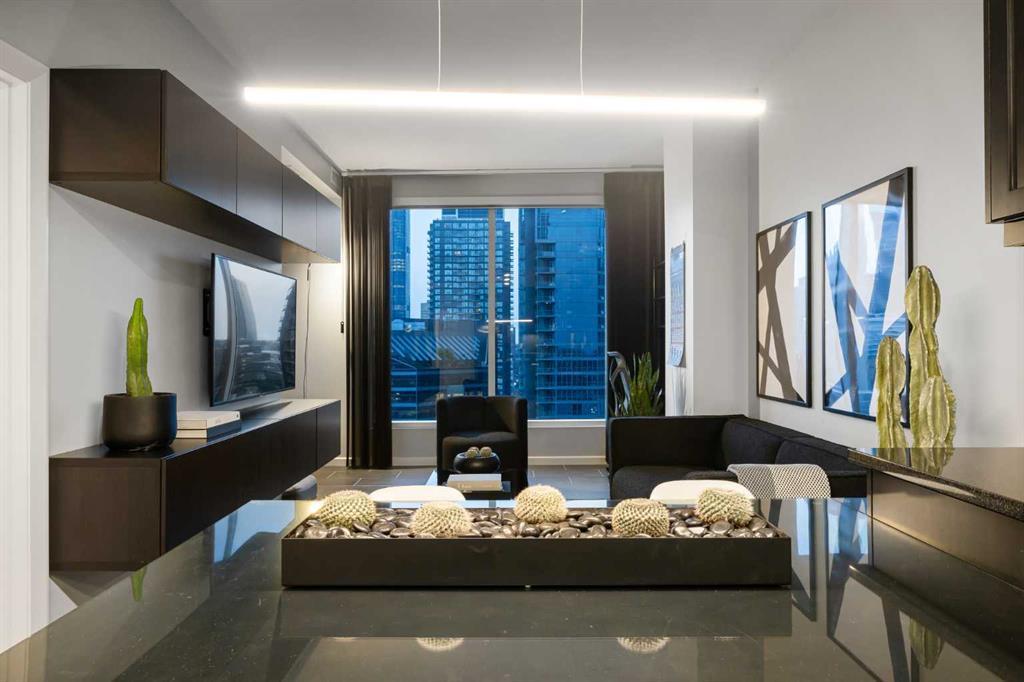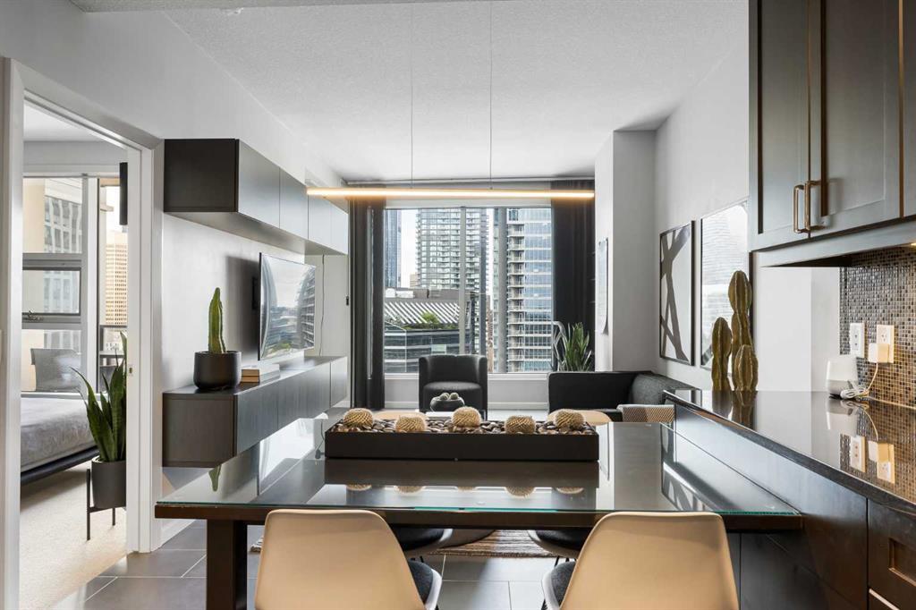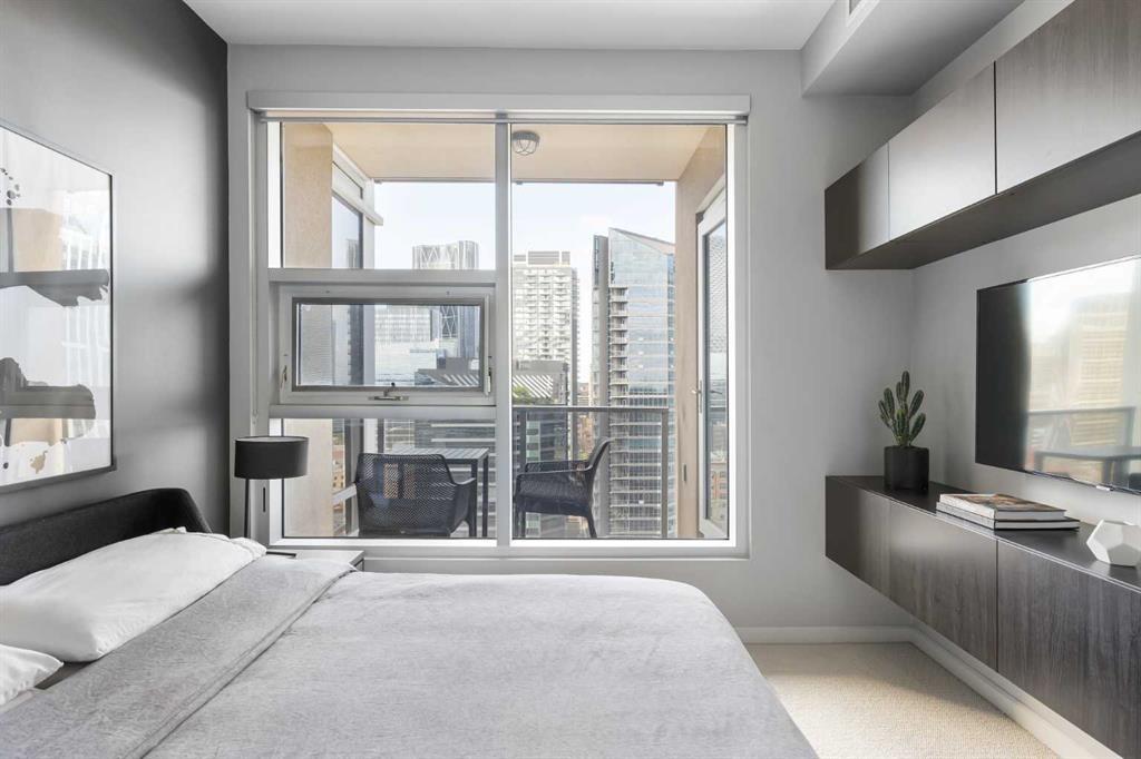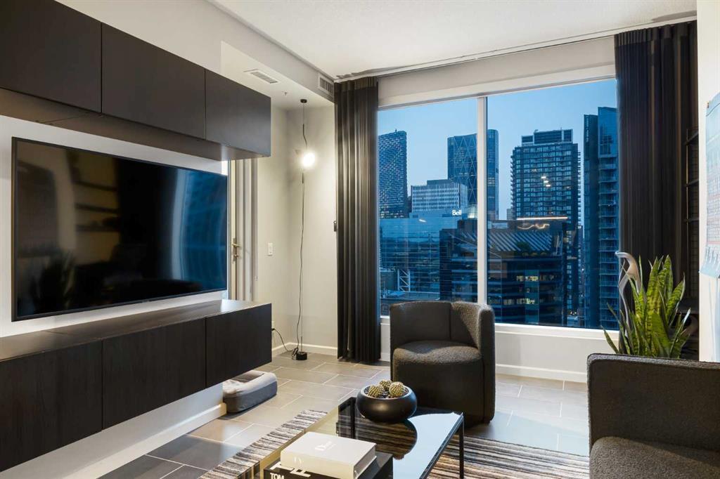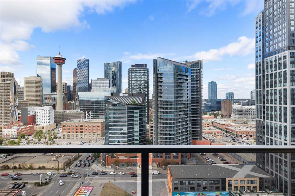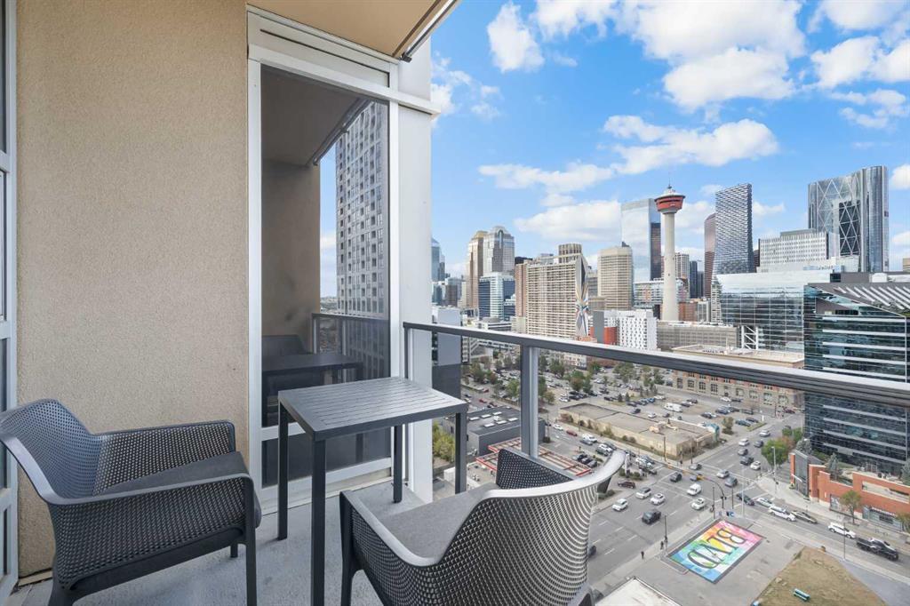 Experience urban living at its finest in the prestigious Nuera building located in the heart of Calgary's vibrant Beltline neighborhood. This meticulously designed 1 bed, 1 bath unit offers more than just a home; it's a lifestyle. Enjoy unobstructed panoramic views of downtown Calgary, including iconic landmarks like the Calgary Tower and the Telus Sky building, right from your private balcony. Step inside and be greeted by the sleek modern aesthetic, highlighted by custom drapery, 9-foot ceilings, and floor-to-ceiling windows that flood the space with natural light. The open-concept layout seamlessly blends style and functionality, creating the perfect space for relaxation and entertainment. Designed for adult living, the Nuera building offers an array of amenities, including a well-equipped gym, a party room for social gatherings, and convenient bike storage. With a titled parking stall and an additional storage unit, practicality is at the forefront. Elevate your lifestyle in this contemporary oasis that captures the essence of urban elegance. Embrace the convenience of living minutes away from the city's finest dining, entertainment, and shopping destinations while enjoying the tranquility of your modern retreat. Don't miss the opportunity to make this Nuera unit your own – where breathtaking views and sophisticated living converge seamlessly. Contact us today for a private showing (id:22211)