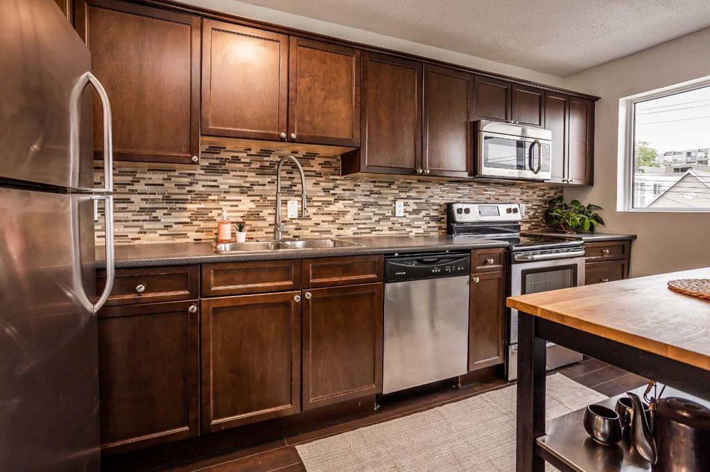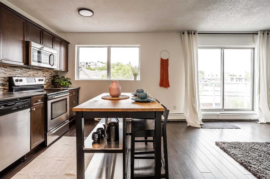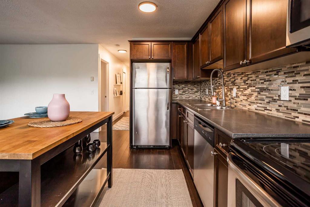 Welcome to Bankview! This one bedroom condominium is the perfect opportunity for investors and first-time home buyers. Live in the vibrant community of Bankview; offering easy access to the shops and restaurants of 17th Avenue, and enjoy the peaceful Buckmaster park only steps from your front door. This unit offers an open concept layout, with large updated kitchen featuring stainless steel appliance package. The large living room provides ample space for a dining table and cozy tv area. The unit also has a west facing patio for soaking up the sun. Other amenities include free laundry, rooftop patio featuring stunning downtown views, and an assigned parking stall. (id:22211)