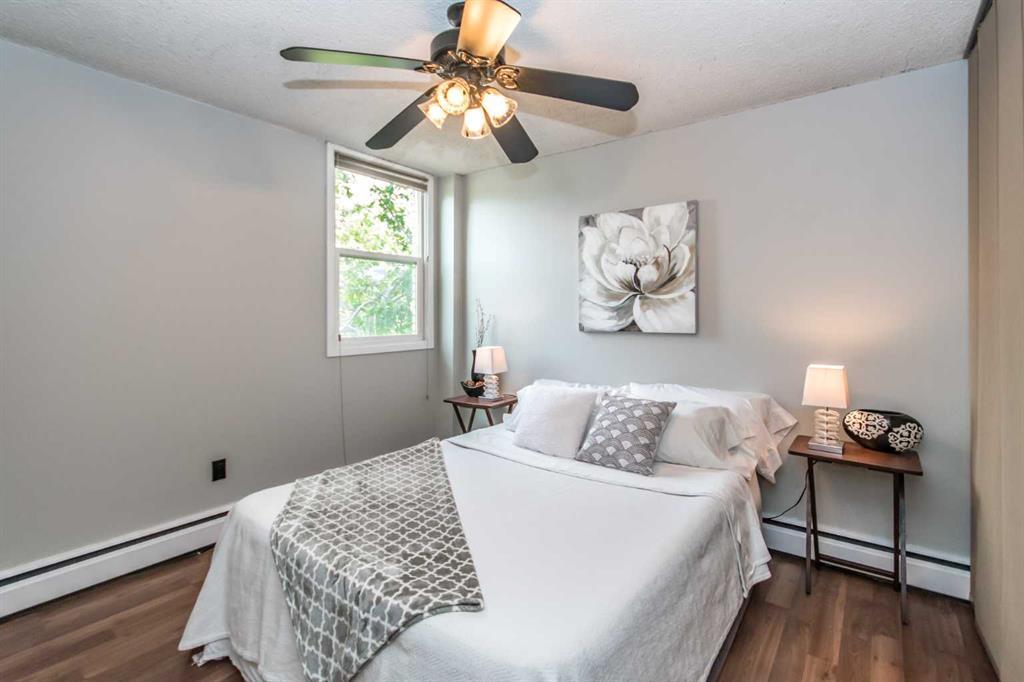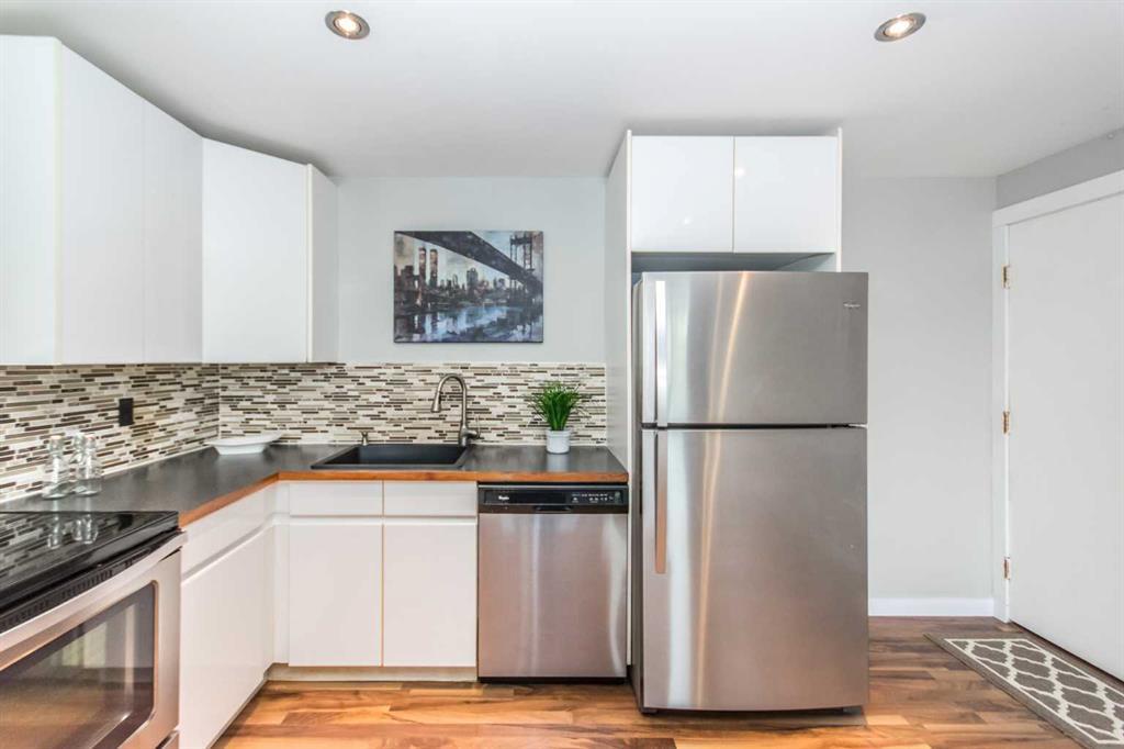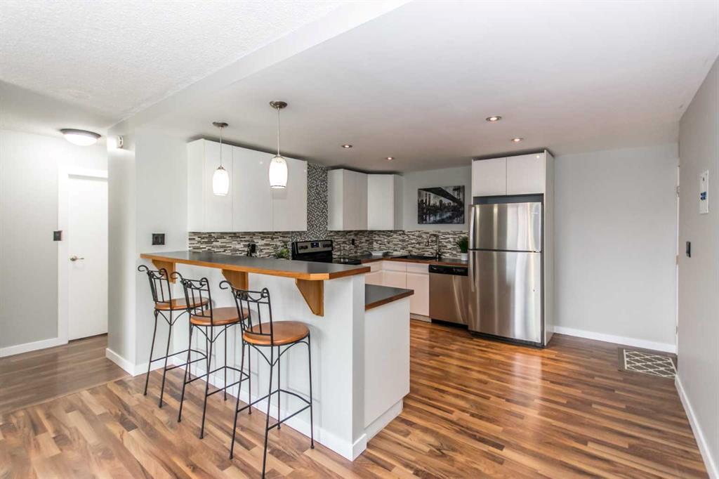 Welcome to this beautiful top floor 2 bedroom apartment in the desirable Bankview community in Calgary. This suite features new bright & neutral paint, laminate flooring throughout, a big kitchen with stainless steel appliances, tile backsplash, white cabinets, plenty of counter space and a breakfast bar with pendant lighting. The spacious living room opens up to a large covered balcony where you can enjoy the East morning & afternoon sun. The bedrooms are bright and cozy, with ample closet space. The bathroom is nicely equipped with tile floor & tile tub / shower, with granite countertop vanity. This apartment comes with an assigned storage space and an assigned parking stall. The complex also provides on-site laundry facility & bike storage. You will love owning in this well maintained building that offers an unbeatable location, close to trendy 17th Ave, downtown, public transit, shopping, dining and more. Perfect for 1st time buyers or investors. Pet friendly under 25 lbs. Don't miss this opportunity to own this amazing home! (id:22211)