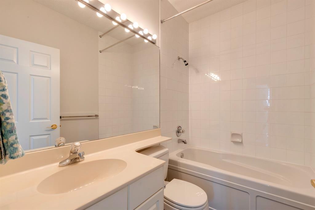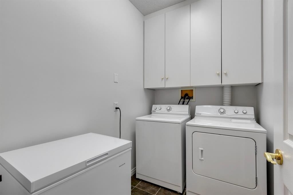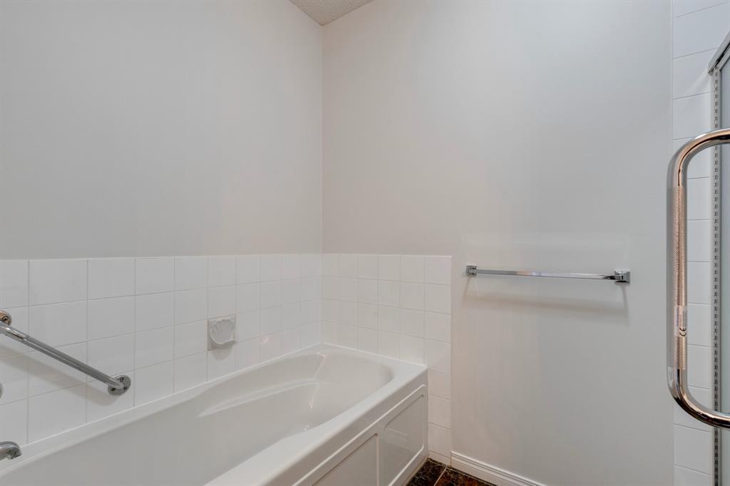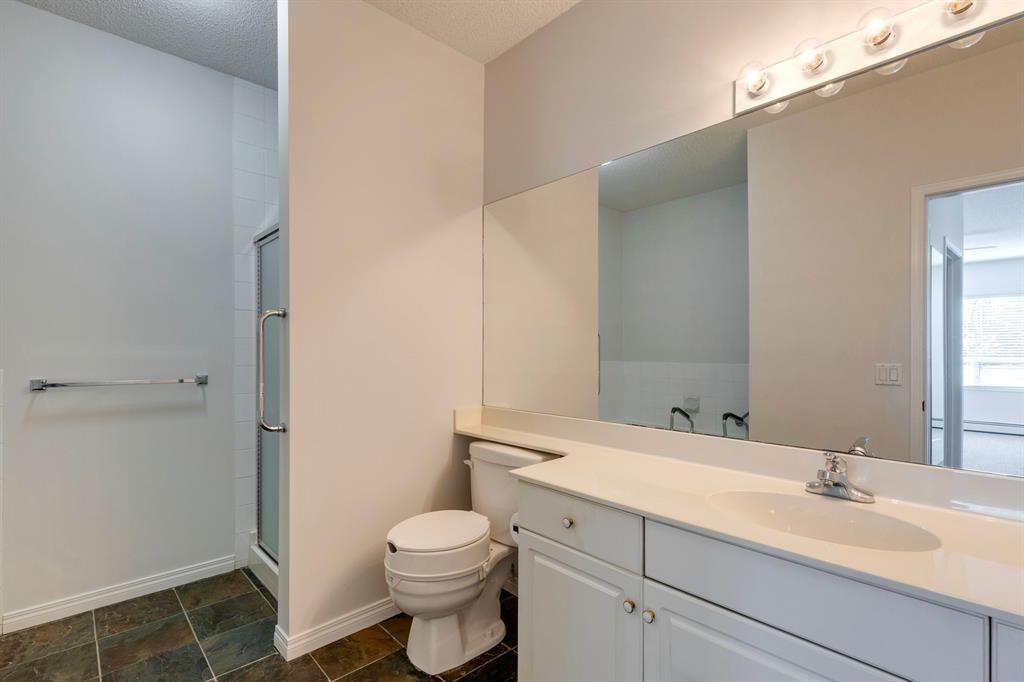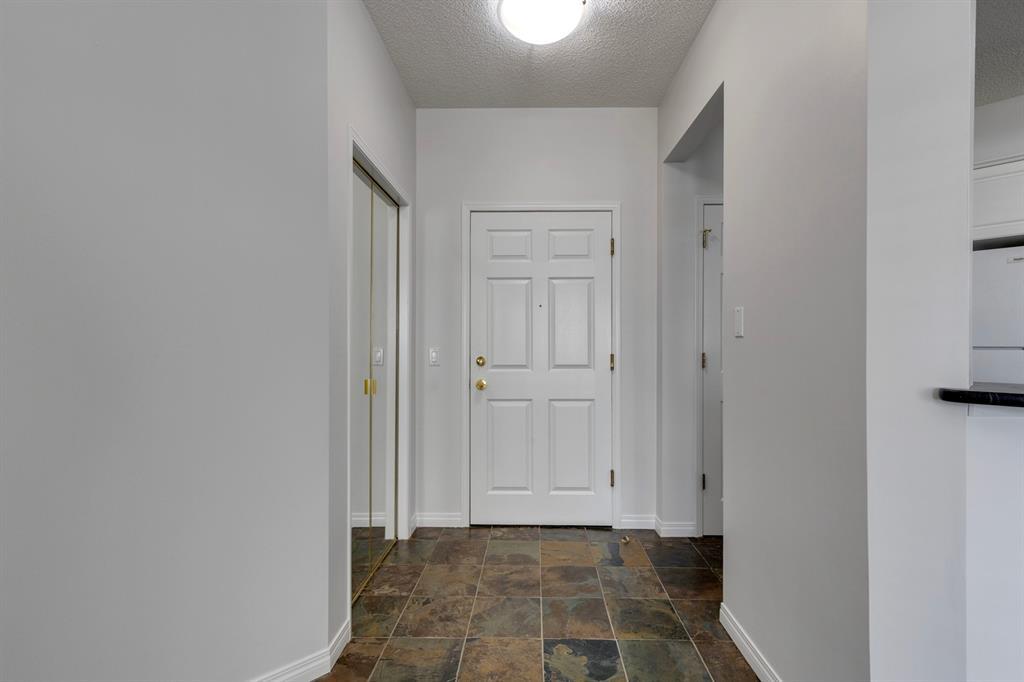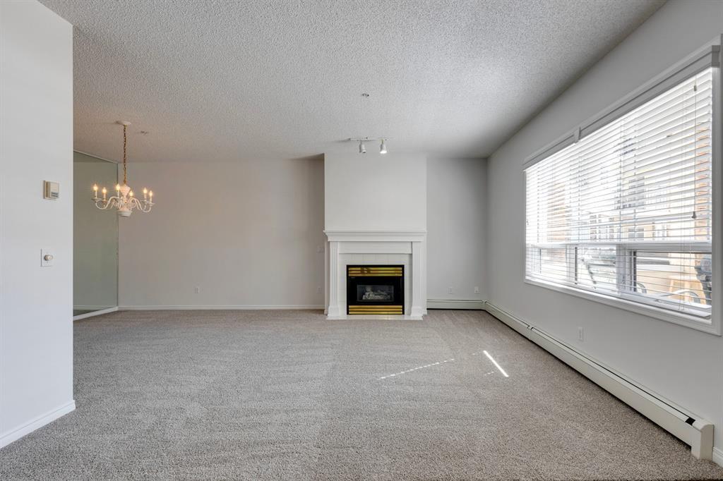 Now it's your turn to find out what all the excitement is about. There are many excellent reasons why 4 homes in The Courtyards of West Park have sold in the past couple of months! Located in the serene, prestigious enclave of Palliser, this main floor apartment, with private patio adjacent to the namesake central courtyard, is one of the largest (at 1227 sq ft) and best designs in the complex. The 2 generously sized bedrooms overlook the lushly landscaped courtyard, and feature plenty of cheerful sunlight, The primary bedroom enjoys a large walk-in closet and a 4-piece ensuite featuring a walk-in shower and large bathtub. The main bath is conveniently accessible to both the second bedroom as well as the public living spaces. The spacious laundry room with full-size side-by-side washer and dryer is tucked away out of sight but readily available as needed. The open-concept living area facilitates easy, relaxed entertaining with upgraded finishes and wide-open sight lines. A gas fireplace brings a cozy warmth to the nearly 300 sq ft living room, and note the huge windows in the living and dining rooms - making the spaces seem even larger. Even when you are the one doing the cooking, you won't be missing the festivities, since the kitchen is open to both rooms - perfect for actually getting to visit with your family and/or friends. Do take note of the finishes - slate tile floors and stone countertops in the kitchen, slate tile in the dining room, foyer and hallway, with plush carpet in the living room and bedrooms. The titled parking space is #116 - easily accessed close to the garage door, and as an end unit, only one vehicle is adjacent. The assigned storage locker (#33) is also on the parkade level. Building facilities include a Common Social Room complete with kitchen and courtyard, and a Rentable Guest Suite. NOTE: Hallway is currently scheduled to be refurbished. The Courtyards of West Park is within walking distance to South Glenmore Park and the shops at G lenmore Landing. (id:22211)