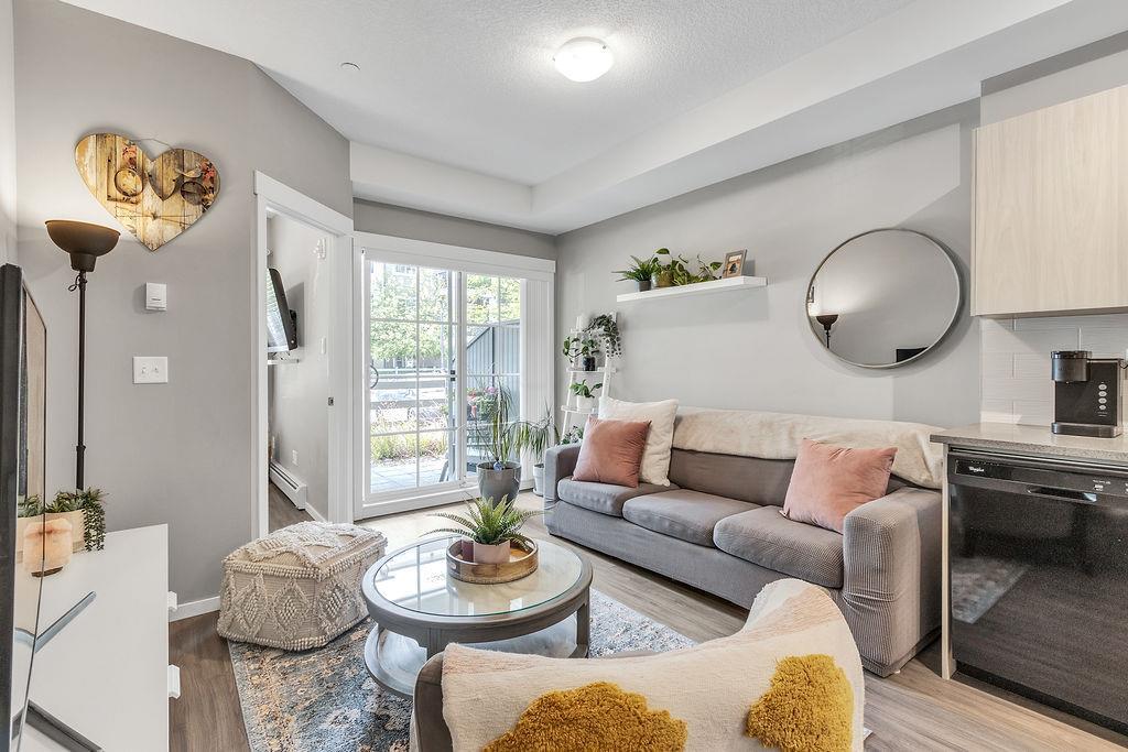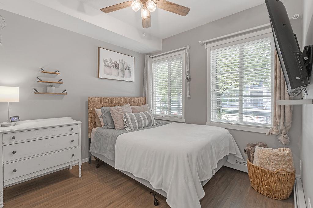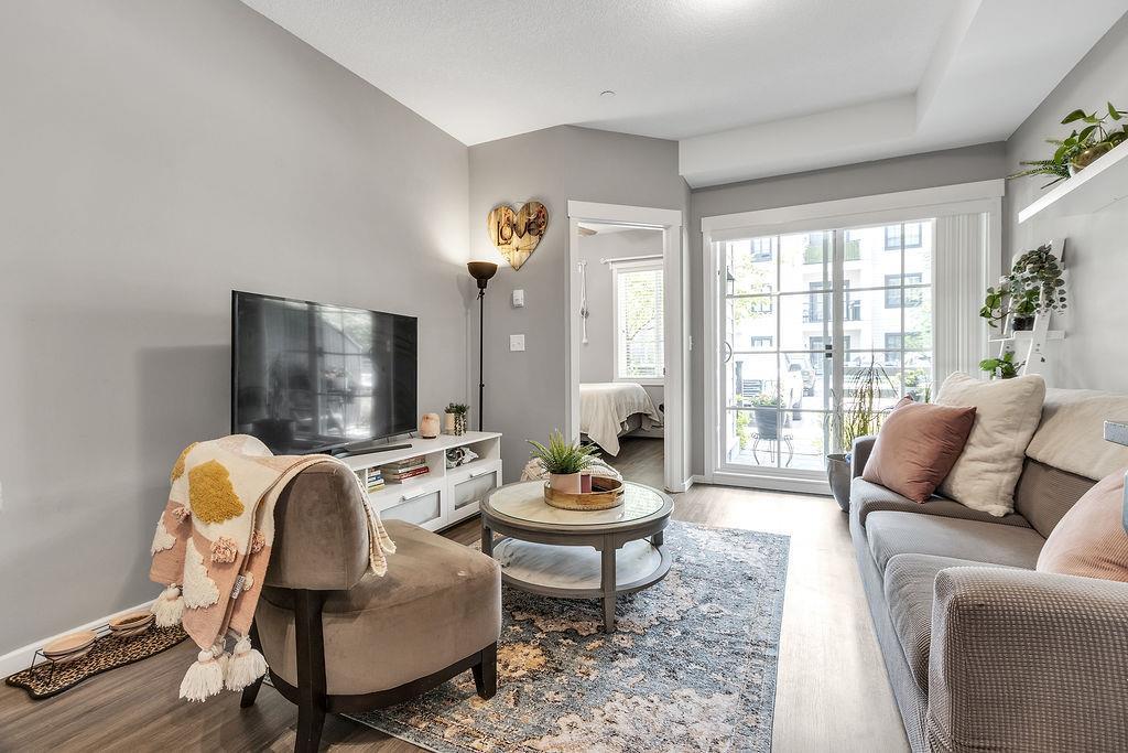 Ultra convenient, upgraded, GROUND FLOOR unit in immaculate condition! Original owner since 2017, pride ofownership is evident. New vinyl plank throughout. Great layout with 1 bedroom plus den, 2 full bathrooms, and anice private patio with a gas hookup. Den could function as a second bedroom in a pinch. Low cost and cheapcondo fees make this loaded little apartment perfect for downsizers, first time buyers, or investors! (id:22211)
