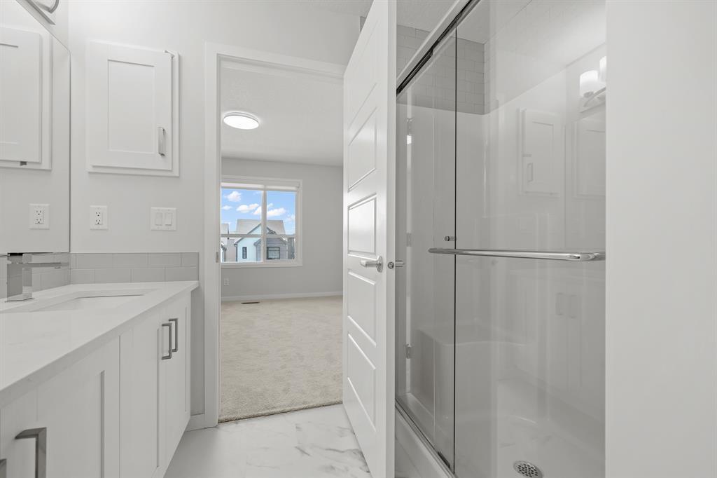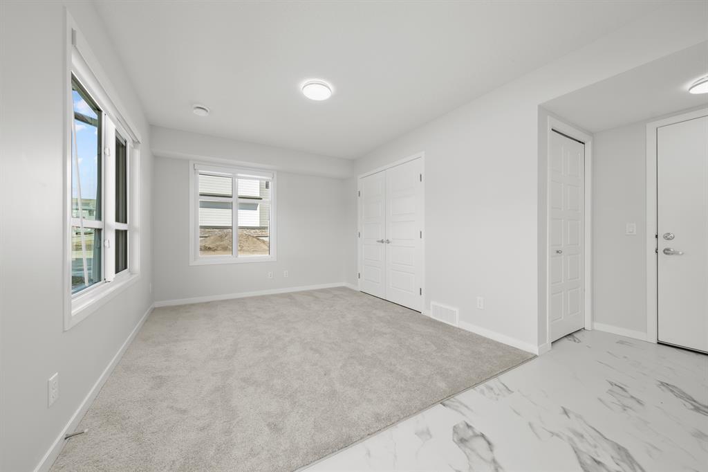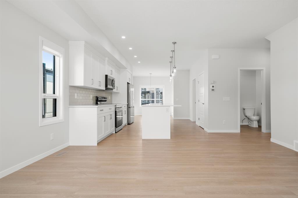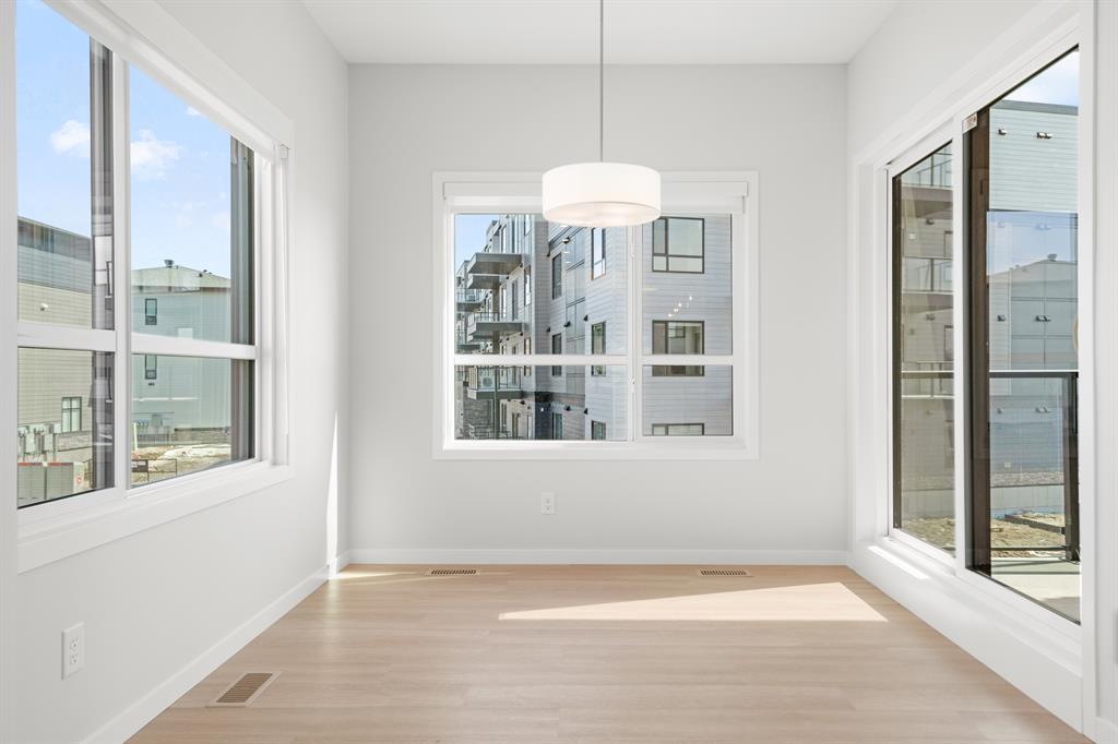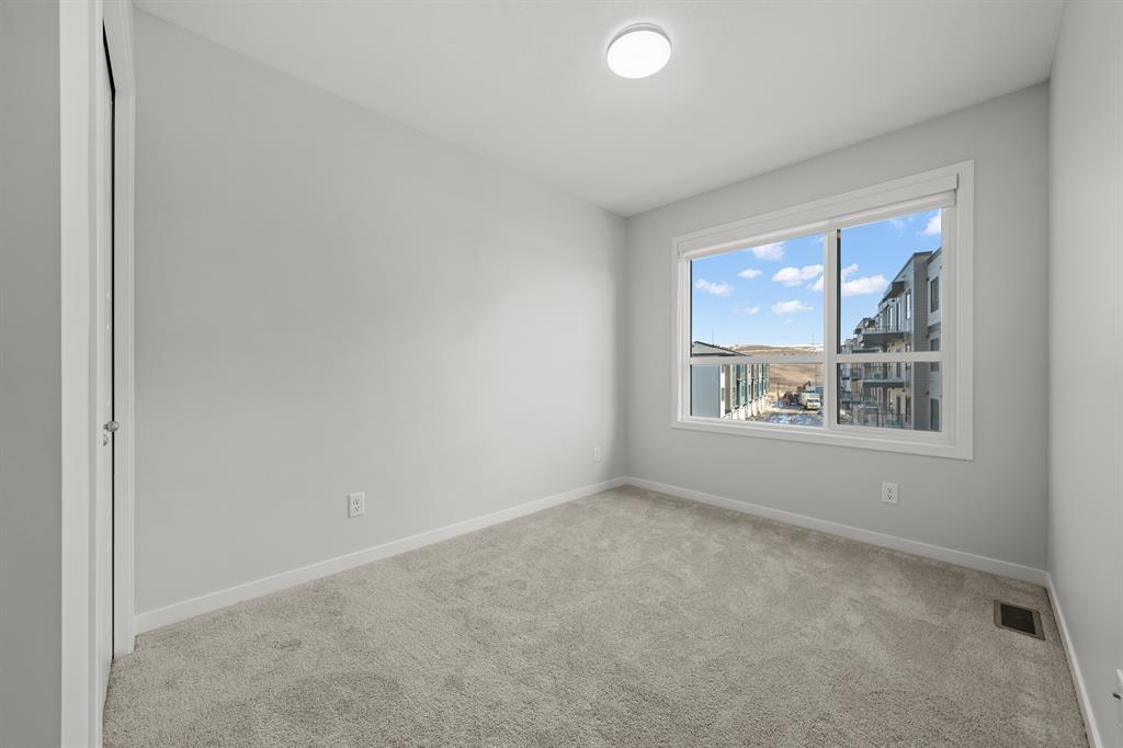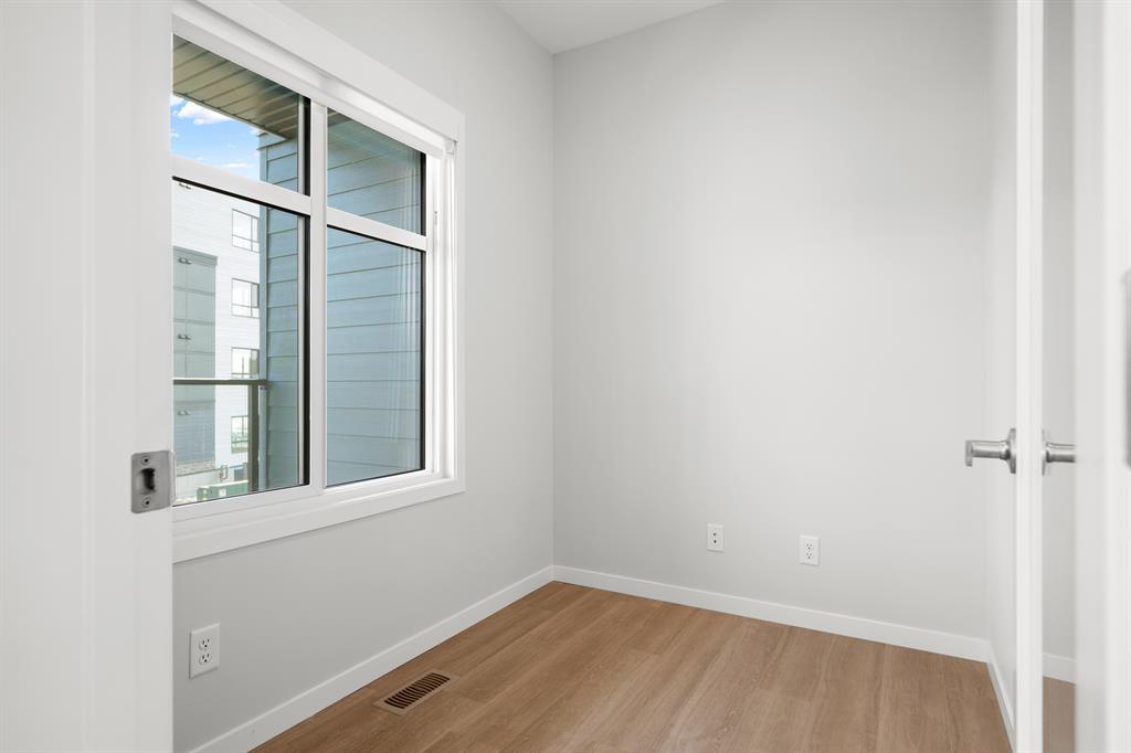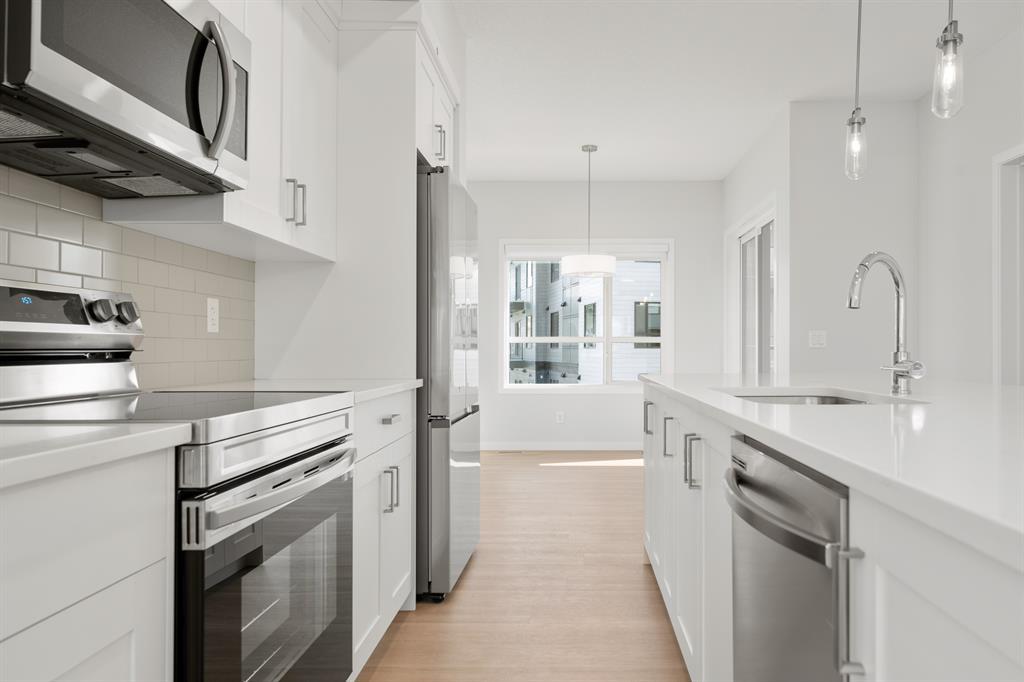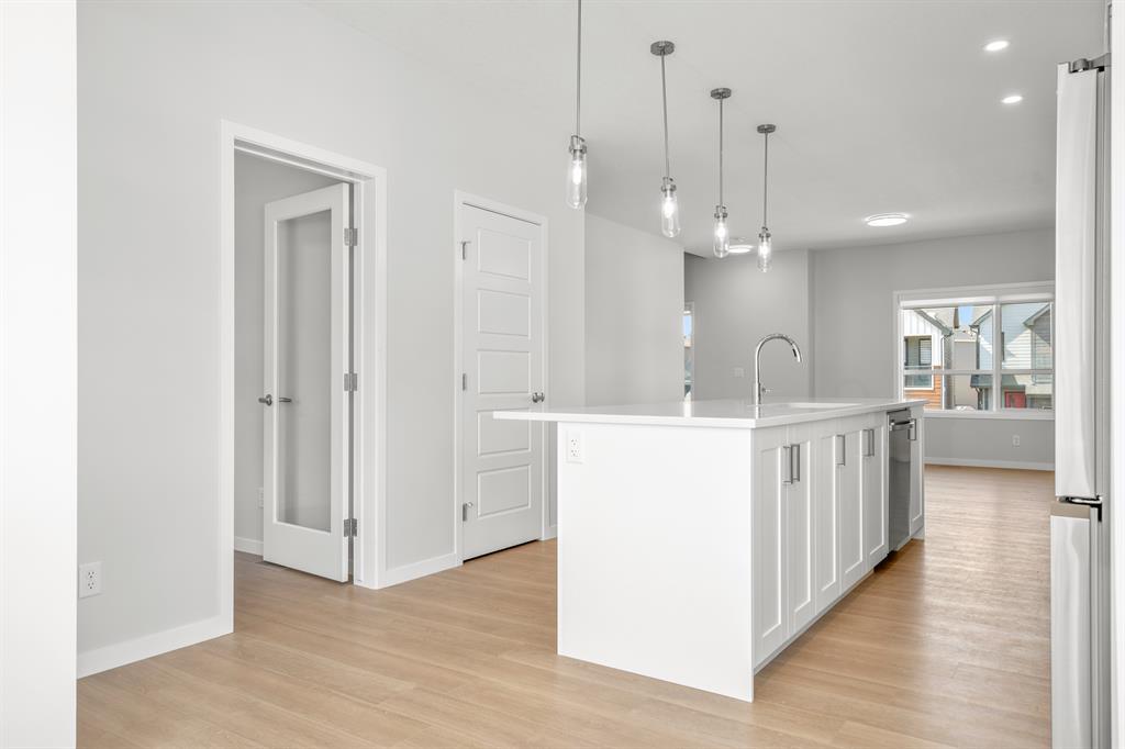 Within a charming complex nestled next to the scenic pond sits this gorgeous 3 BEDROOM TOWNHOUSE built by industry leader and “BUILDER OF CHOICE” WINNER CEDARGLEN LIVING! Parking will never be an issue thanks to the OVERSIZED, INSULATED DOUBLE ATTACHED GARAGE, driveway, visitor parking stalls plus additional street parking. Pull right into the garage safely out of the elements and proceed to the entry level complete with a great flex area perfect ideal as a second office, playroom or hobby space. Oversized windows stream in NATURAL LIGHT throughout the main floor highlighting the LUXURY PLANK VINYL FLOORS. The living room invites relaxation with CLEAR SIGHTLINES promoting unobstructed conversations. Culinary creativity is inspired in the CHEF’S KITCHEN featuring STAINLESS STEEL APPLIANCES, FULL-HEIGHT, CRISP WHITE CABINETS, A LARGE PANTRY, TIMELESS SUBWAY TILE BACKSPLASH and a BREAKFAST BAR ISLAND for loads of prep space and extra storage. The dining room has plenty of room for entertaining or host summer barbeques on the EXPANSIVE GLASS RAILED BALCONY with gas line. A den overlooking the balcony is an ideal home office. The main floor is completed by a handy powder room. Retreat at the end of the day to the calming primary bedroom on the upper level with a HUGE WALK-IN CLOSET and an indulgent ENSUITE boasting DUAL SINKS, QUARTZ COUNTERTOPS and an oversized shower. Both additional bedrooms are spacious and bright, sharing the stylish 4-piece bathroom. Laundry is also conveniently located on this level Additional upgrades include HOT WATER ON DEMAND, HEAT RECOVERY VENTILATOR, A/C ROUGH-IN, FIBRE OPTIC HIGH-SPEED INTERNET READY and an electrical panel in the garage for a FUTURE ELECTRICAL VEHICLE CHARGER. This fully landscaped complex is PET-FRIENDLY (on board approval) with extensive pathways that lead to the COURTYARD and a SCENIC WET POND. Outdoor enthusiasts will love the close proximity to the many river pathways that wind around Fish Creek Park and that this ver y active community boasts a private clubhouse with sports courts, spray park, skating rink and more. Mere minutes from additional restaurant and shopping options in neighbouring Seton as well as the world’s largest YMCA. Beautiful, brand new, move-in ready and an unsurpassable location awaits! (id:22211)