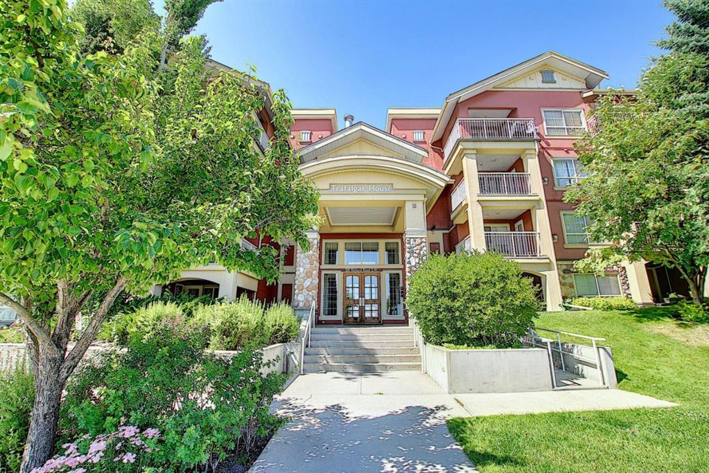 *** OPEN HOUSE THIS WEEKEND! AUG 16, 2020, SUNDAY @ 2 PM - 4 PM *** Welcome home to Trafalgar House! This spacious condo offers 2 bedrooms, 2 full baths & a cozy den as well as a living room with corner fireplace & dining area which is open to the kitchen finished with plenty of cupboard/counter space. Both bedrooms have ample closet space & the master bedroom also includes a private 4 piece ensuite. A sizable roof covered balcony @ gas hook-up affords more living space in warmer months. Further features include a new in-suite laundry, new dishwasher, newer laminate flooring throughout, 2 side by side titled heated parking underground stalls & an assigned storage locker. Building amenities include fitness facilities, bike storage, an interior park, car wash bay & party room. Pets are allowed subject to board approval. Super convenient location, steps to MRU & next to shopping plaza with coffee shop, pizza place etc. & close to North Glenmore Park, vibrant Marda Loop, schools, shopping, public transit & an easy commute to the downtown core. (id:22211)