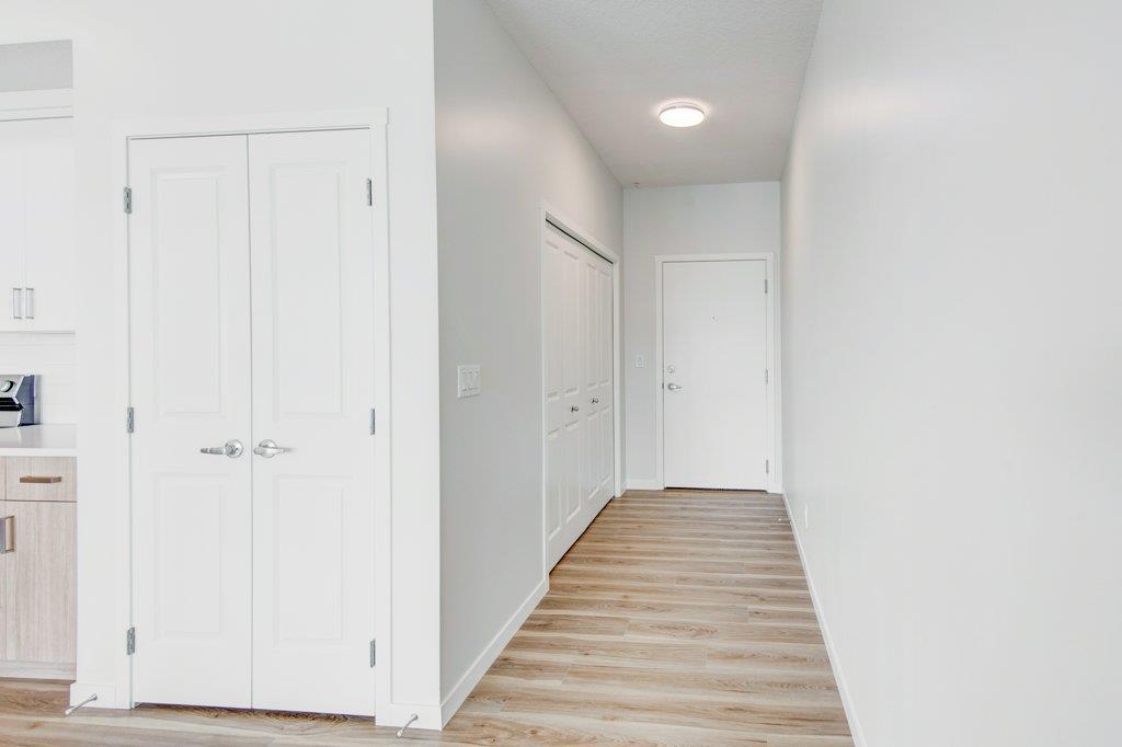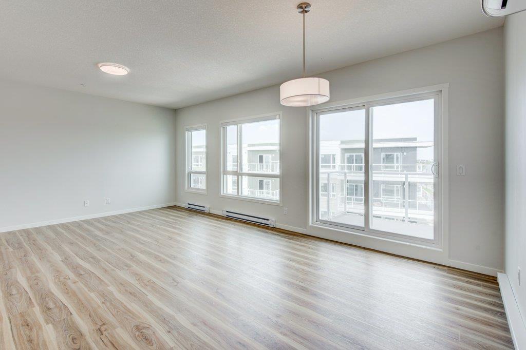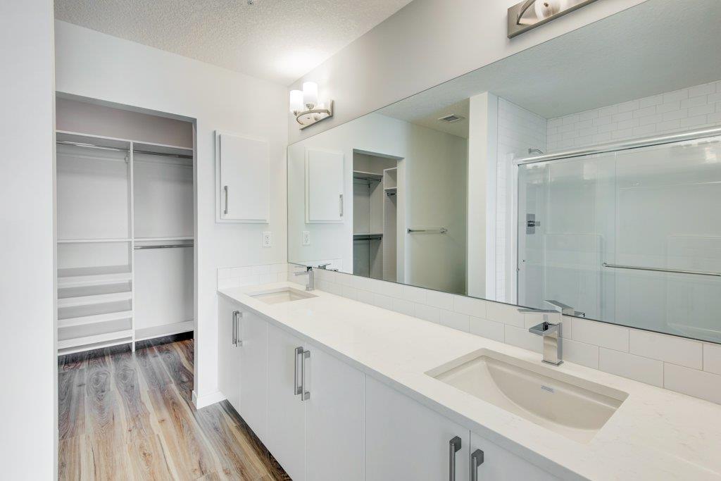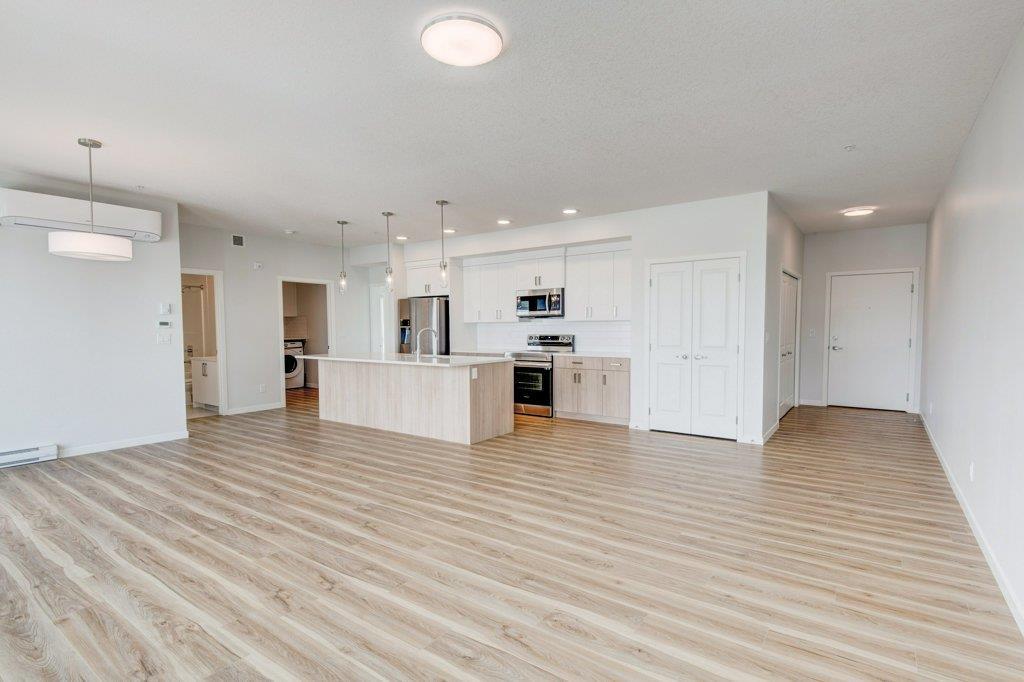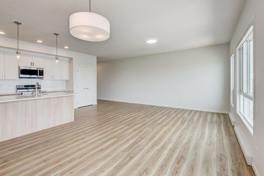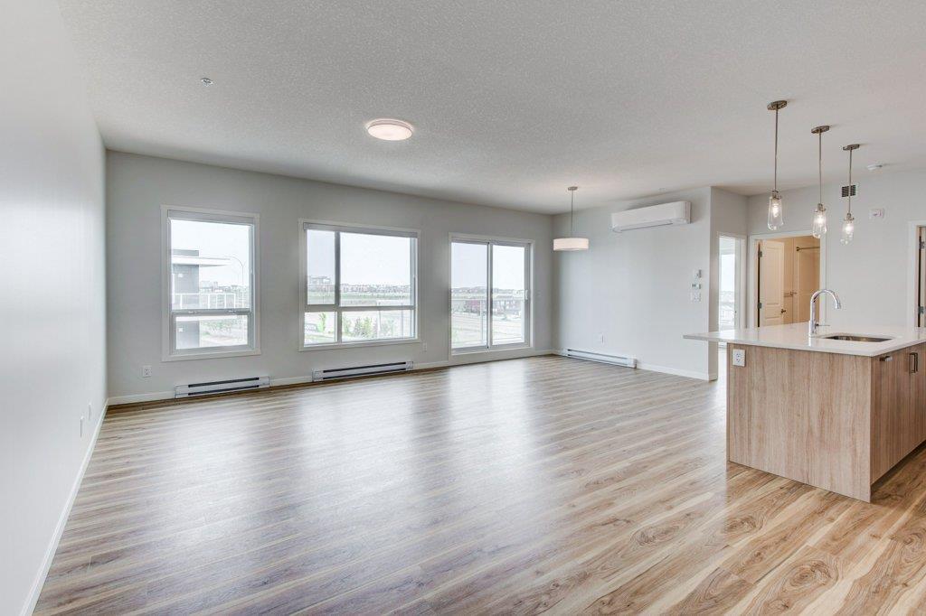 SETON SUMMIT, one of Calgary's most sought-after developments BUILT BY “BUILDER OF CHOICE” WINNER CEDARGLEN LIVING, 4 YEARS RUNNING! You’ll feel right at home in this spacious TOP FLOOR CORNER PENTHOUSE 1,052.70 RMS sq.ft. (1112 sq.ft. builder size) 2 bed, 2 bath home with open plan, 9' ceilings, knock down ceilings LVP & LVT flooring throughout the unit, and numerous upgrades (L3 PLAN). Amazing NE CORNER UNIT with wrap-around balcony and only 1 common wall. The kitchen is spectacular with two tone full height cabinets, recycle center to island, quartz counters, subway tile backsplash, undermount sink, upgraded refrigerator, and S/S appliances. The island is extensive which transitions into the spacious living area and large dining room, perfect for entertaining. The spacious primary bedroom has a large window (triple pane windows), sizeable walk-in closet (with upgraded built-ins) and plenty of space. The ensuite showcases dual vanities with a stand-up shower and upgraded full height tiles above. The additional bedroom is perfect for kids, guests, or an office. Nearby is the laundry/storage room (washer & dryer included), fully upgraded with stone counter top, tile backslash and added upper cabinets. A 4pc bath with quartz counters, full height tiles above the tub and undermount sink is also located down the hall. Highlights include: A/C (1.5 ton unit), Hardie board siding, electric baseboard heating, BBQ gas line to balcony, FRESH AIR SYSTEM (ERV) included in every unit and much more. There are many bespoke amenities outside your front door, so park the car and put on your walking shoes. The LARGEST YMCA IN THE WORLD and the SETON HOA is just around the corner. SOUTH HOSPITAL, shopping, restaurants and cafes are all just a short stroll away. Underground titled parking completes this beautiful home. Storage lockers available for purchase (limited). PET FRIENDLY COMPLEX, UNIT IS READY FOR IMMEDIATE POSSESSION, VIRTUAL TOUR AVAILABLE - MOVE ON IN TODAY! (id:22211)