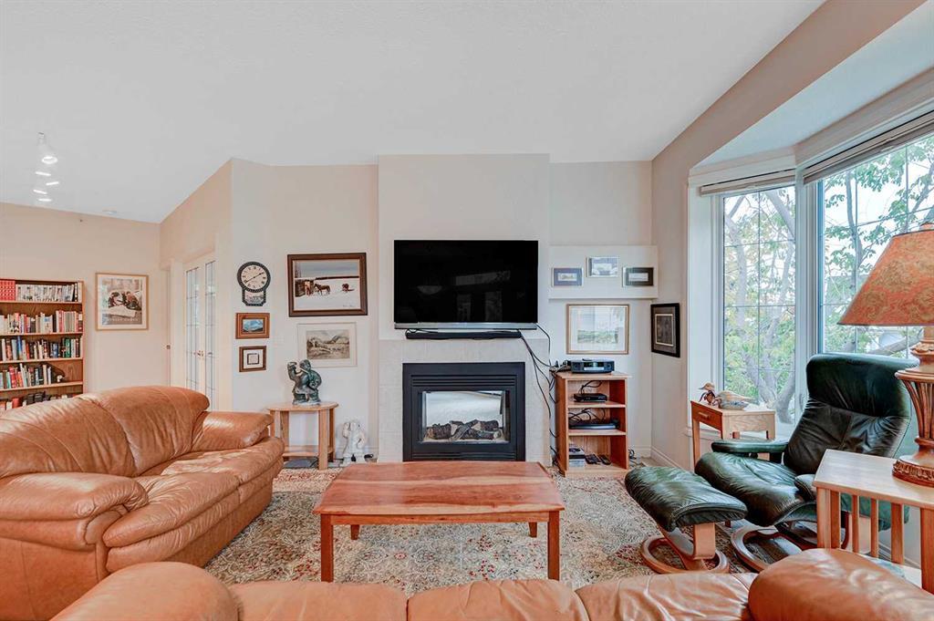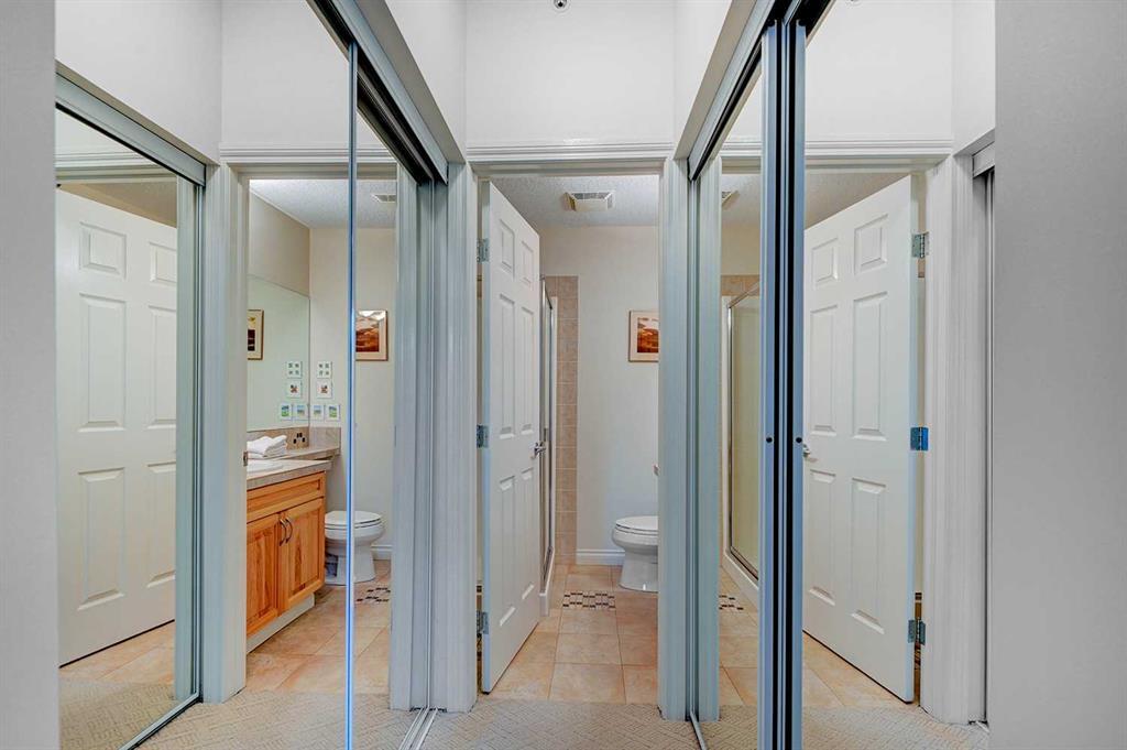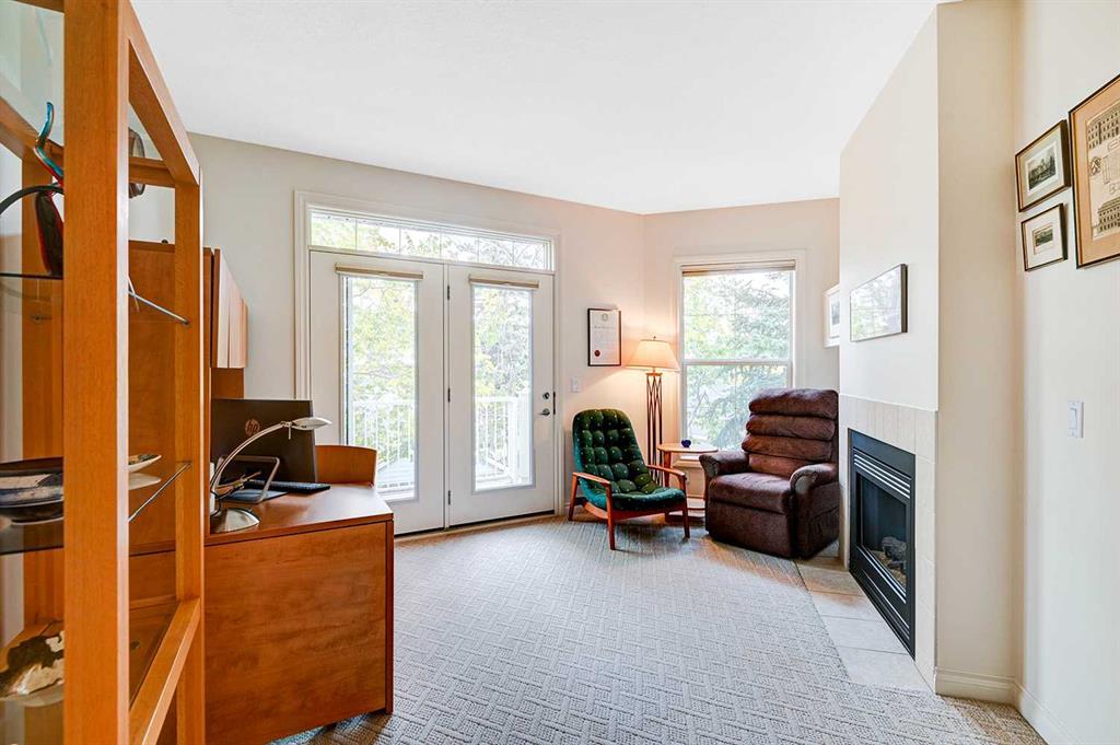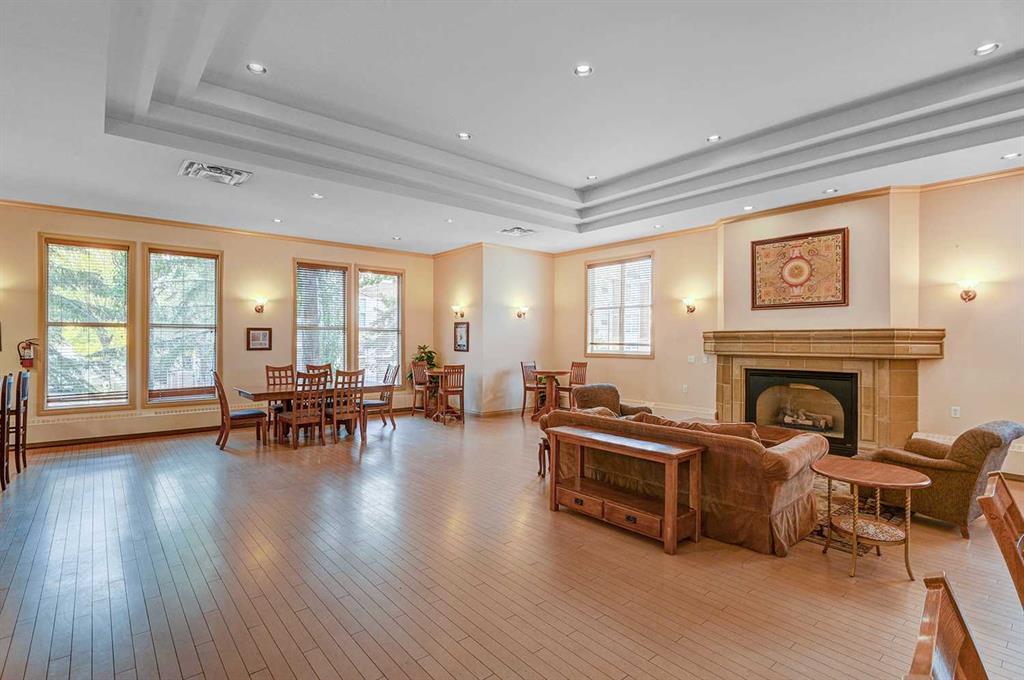 Location and lifestyle are unparalleled in this top-floor, adult living (18+) apartment in the sought after residence of the Courtyards of Garrison Woods. An exceptional floor plan at 1,552 sq. ft. is a perfect option for someone looking to downsize and enjoy easy, functional living. Two bedrooms both with ensuites, plus an additional powder room and a well situated den/home office allows for optimal privacy. The open concept kitchen features plenty of counter space and the expansive breakfast bar is ideal for socializing and entertaining. The sun filled living area with gracious 9 ft. ceilings showcases the doubled sided fireplace shared with the den, and a proper area for your formal dining. Your outdoor living is extended with the two balcony's and a large laundry room adds to your convenience and extra storage. Two assigned parking stalls close to the elevator, and a storage locker which further enhances the functionality. The recreation center has a pool, gym, and features a massive party room, equipped with a kitchen to host your larger functions all onsite. Only walking minutes away from all the well known shopping, restaurants and professional offices in the Marda Loop area. (id:22211)