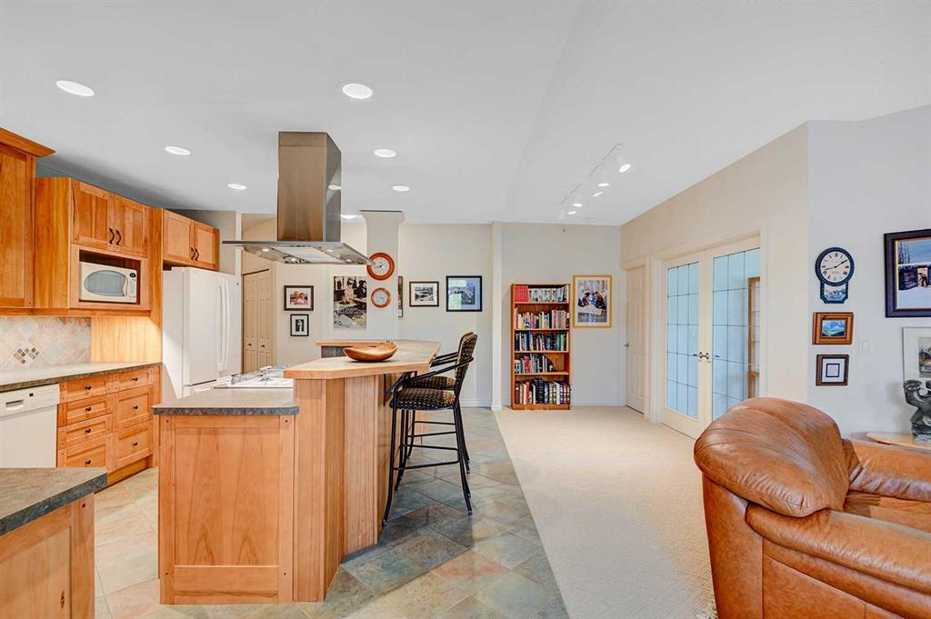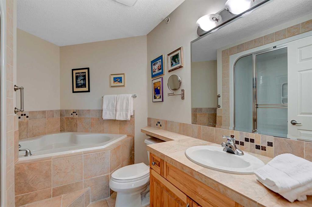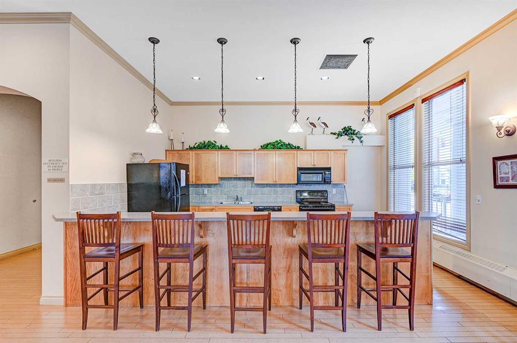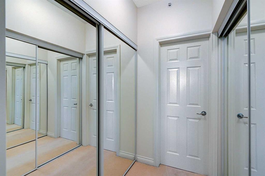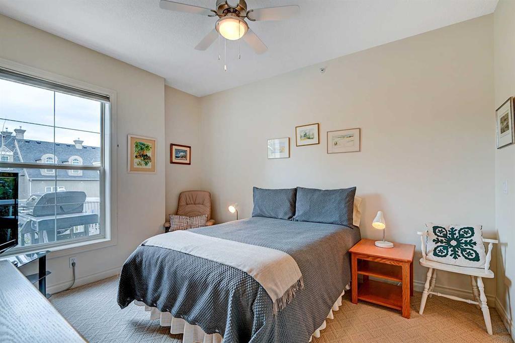 Location and lifestyle are unparalleled in this top-floor, adult living (18+) apartment in the sought after residence of the Courtyards of Garrison Woods. An exceptional floor plan at 1,552 sq. ft. is a perfect option for someone looking to downsize and enjoy easy, functional living. Two bedrooms both with ensuites, plus an additional powder room and a well situated den/home office allows for optimal privacy. The open concept kitchen features plenty of counter space and the expansive breakfast bar is ideal for socializing and entertaining. The sun filled living area with gracious 9 ft. ceilings showcases the doubled sided fireplace shared with the den, and a proper area for your formal dining. Your outdoor living is extended with the two balcony's and a large laundry room adds to your convenience and extra storage. Two assigned parking stalls close to the elevator, and a storage locker which further enhances the functionality. The recreation center has a pool, gym, and features a massive party room, equipped with a kitchen to host your larger functions all onsite. Only walking minutes away from all the well known shopping, restaurants and professional offices in the Marda Loop area. (id:22211)