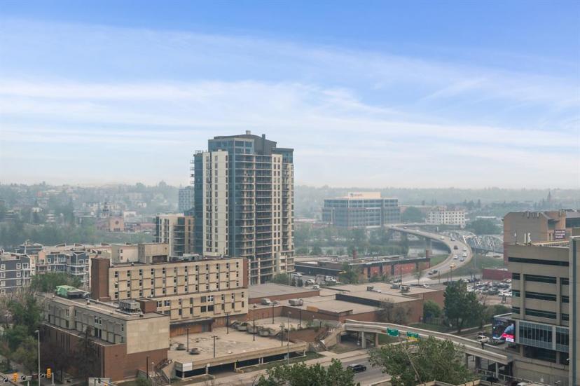 Welcome to Rocky Mountain Court in the heart of Downtown Calgary. This one bedroom, one bathroom, NE end unit condo has been kept in pristine condition with spectacular river and bridge views. This 16th floor unit has a bright and open floorplan and an abundance of light coming in from the large windows facing the balcony. The kitchen boasts ample cabinet space and a large breakfast eating bar. The kitchen is open to a good sized dining and living area with a door leading out the the large, full length balcony that boasts beautiful views of the Bow River and bridge. Large main bedroom and a 4 piece main bathroom. The den just across from the bedroom is perfect for an office space or extra storage. The unit has one assigned parking stall in a secure parkade. The complex is very secure with an on-site manager and security personnel. The building has laundry facilities on every level, fitness center with a sauna, a basketball court, and access to a beautiful rooftop patio. Steps from the Central Library, restaurants, shopping, and transportation. Ideal for the single professional, investor, student, or couple. Furniture is available and ideal for a furnished rental. Great location, exceptional value! (id:22211)
