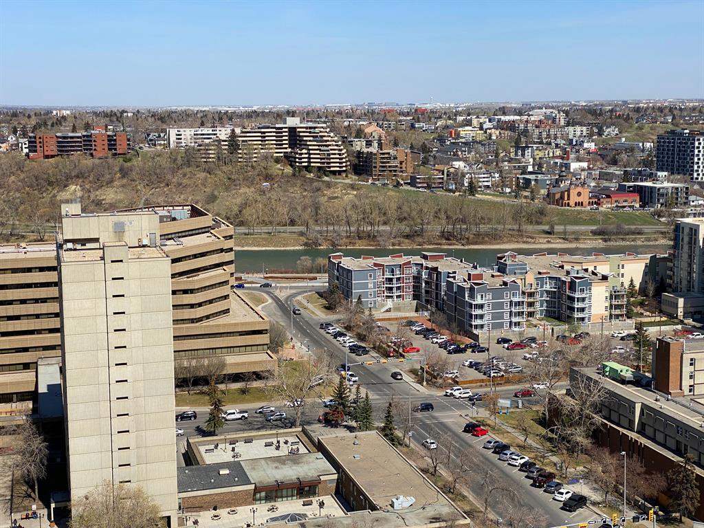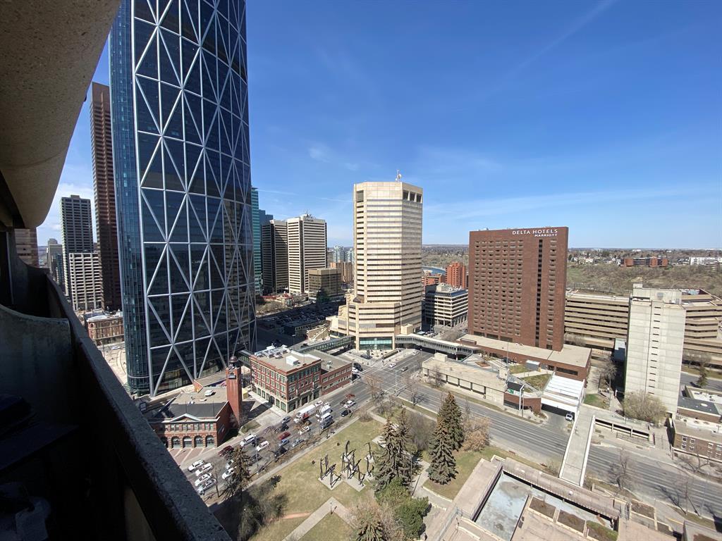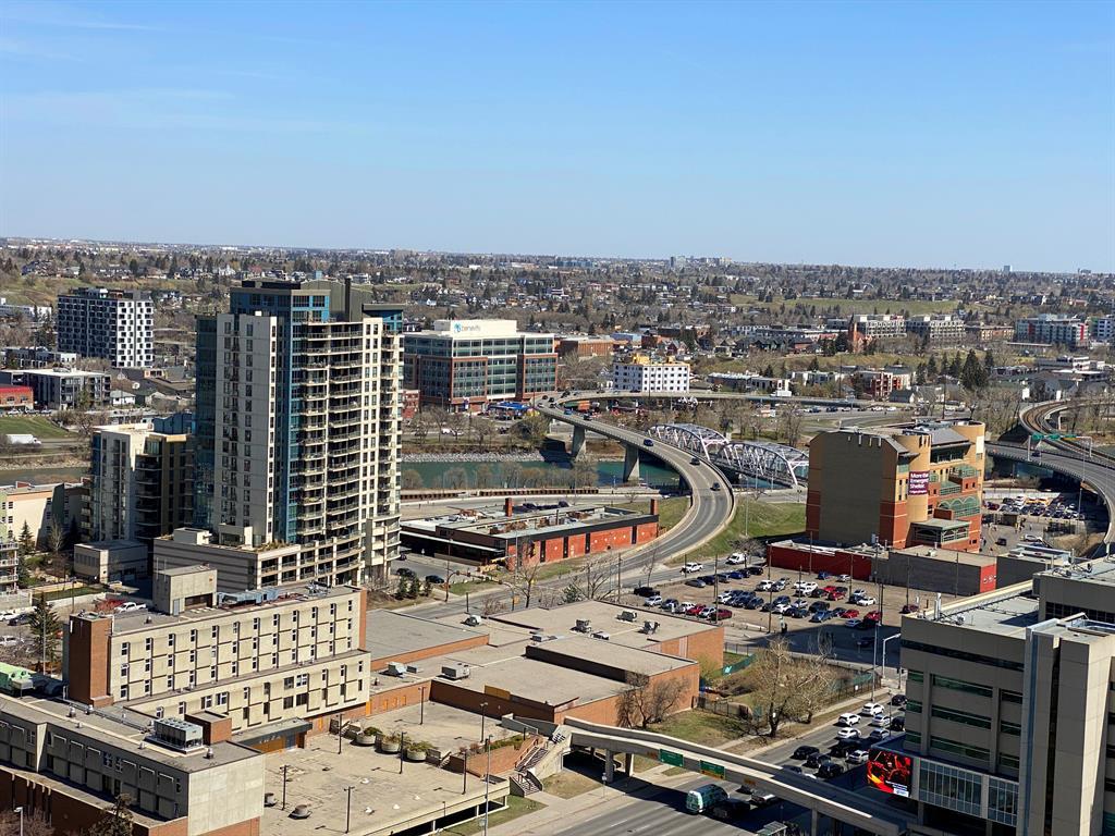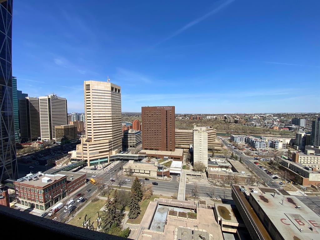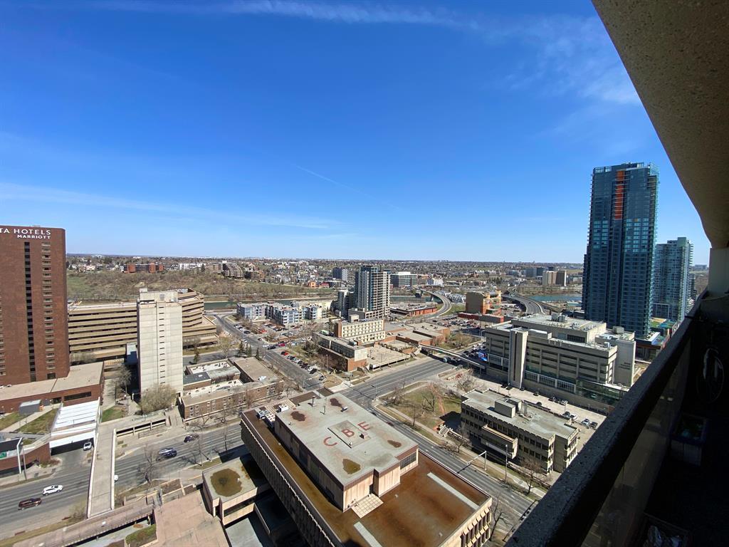 ***INVESTOR ALERT*** On the 27th floor facing the river, this 1 bedroom unit has tons of space for everything you need to live downtown. Walking in you are greeted by the massive living room which leads to the 27'x8' balcony. The bedroom has lots of room for your king-size bed. There is storage in the suite but the closet area could easily be used as an office or den area just the same. The unit is leased until January 2024 and the tenant will stay. Turn key income can be yours with this updated unit at Rocky Mountain Court! (id:22211)